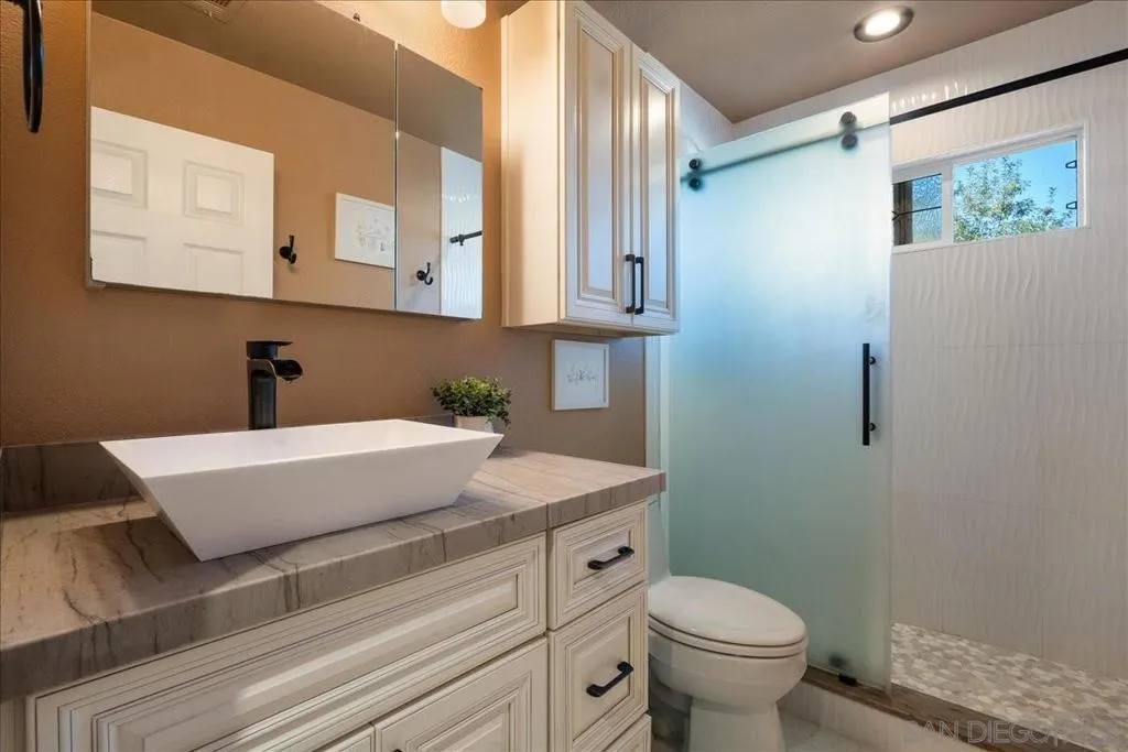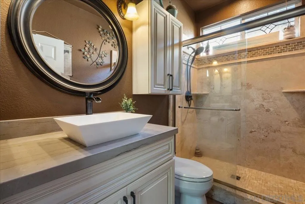 Welcome to 5471 Foxtail Loop a beautifully upgraded 5 bedroom, 3 bathroom home located in the highly desirable gated community of Sunny Creek in Carlsbad. This move in ready residence features a full bedroom and bathroom on the main level, ideal for an office, guests or multigenerational living. This home is one of the only properties in the community with a 5th bedroom. Recent Appraisal done March 2026 shows property with a value of $1,760,000. The home has been thoughtfully updated including remodeled kitchen and baths, new cabinetry throughout the home, a new roof, new Heat Pump HVAC system and Quiet Cool whole home fan, a new tankless water heater, owned Tesla solar and battery backup (13+ Kw panels, 3 Power Walls), a Tesla vehicle charger, smart lighting, and a smart thermostat system. Interior highlights include tile flooring on the main level, wood flooring upstairs, custom drapery in the main living area, live edge redwood mantle and a unique hidden bookshelf storage feature. 2 car garage plus bump out and a wide driveway for ample parking. Additional upgrades include fresh interior paint, new angle stops, and new fans in all rooms. Step outside to a charming courtyard and backyard with mature grapevines and a thriving garden for relaxing or entertaining. Situated in a family friendly neighborhood in the highly regarded Carlsbad School District with local parks blocks away. Conveniently located near shopping, dining, local bakery, brewery, European market and juice bar. Less than 3 miles from the beach. This home truly offers the best of Carlsbad coastal living