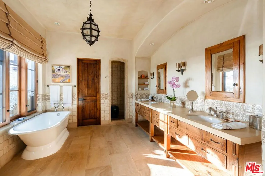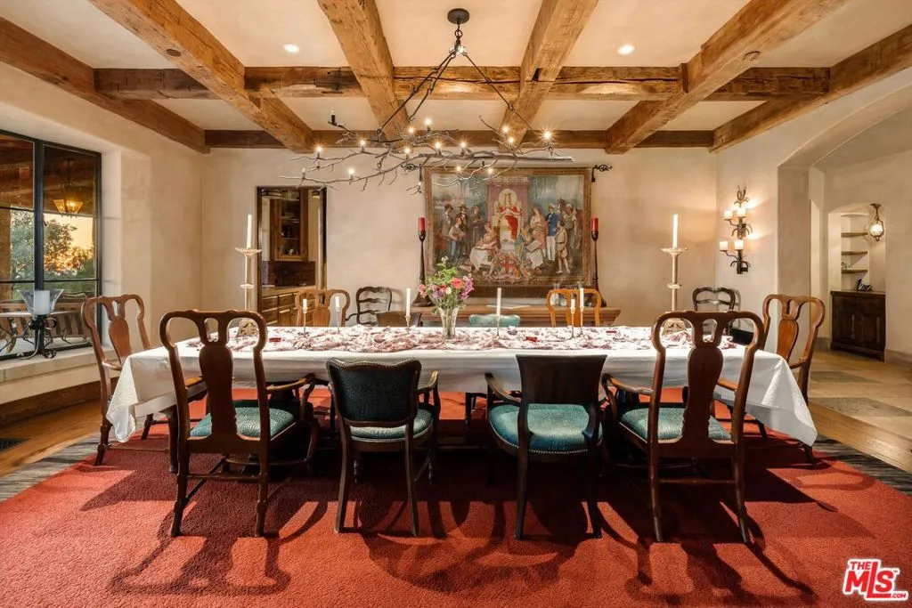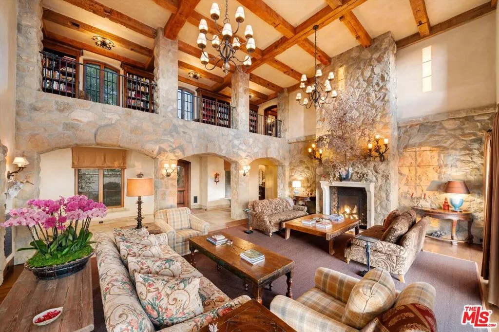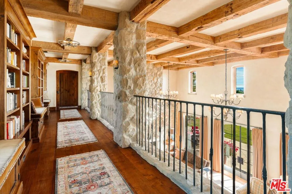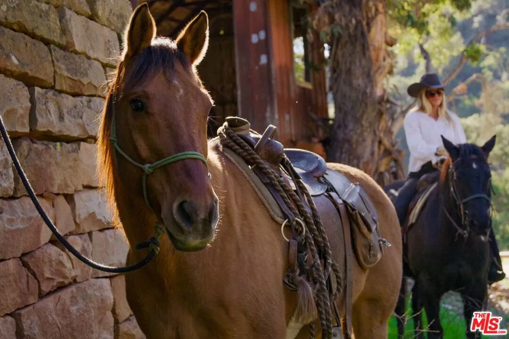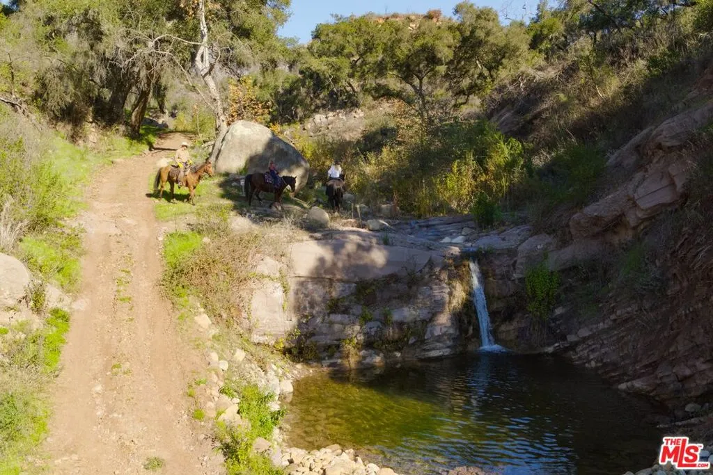 Within the gates of the historic, 3,000-acre Rancho Monte Alegre, JTR Ranch is a rare 10-acre legacy property offering privacy, scale, and extraordinary access to wilderness -- just minutes from Montecito and the beach. Spanning approximately 8010 square feet, the residence captures sweeping ocean and mountain views from nearly every room. Designed with a reverence for European craftsmanship by renowned Santa Barbara architect Don Nulty, the home features 200-year-old hand-hewn coffered ceilings, Belgian wide-plank French oak floors, and multiple French limestone fireplaces. A dramatic two-story stone fireplace anchors the grand living room, where walls of glass frame the coastline beyond. The formal dining room seats fourteen with ease, while the chef's kitchen -- appointed with a six-burner range, four ovens, dual dishwashers, butler's pantry, and seated wet bar -- was designed for both elevated entertaining and everyday living. The floor plan balances grandeur with comfort: a warm family room with fireplace, expansive media center, breakfast/game nook, walk-out lower level with wine cellar and billiards space, mudroom with drip-dry station, and multiple powder rooms. A Romeo and Juliet balcony overlooks the grounds, and upstairs a gallery library and two generous offices create refined work-from-home spaces. With all furnishings included, this home comes ready for you to make it your own. Four private suites -- three king and one queen--along with a custom bunk room designed to sleep ten, provide exceptional accommodations. The primary suite is a retreat unto itself, complete with soaking tub, oversized wardrobe, and a discreet secondary staircase offering both privacy and peace of mind. Outdoors, the estate lives like a private resort. Pool and spa, bocce court, horseshoe pit, firepit, olive grove, fully-enclosed vegetable gardens, and meandering gravel paths create an atmosphere of relaxed sophistication. Entertain beneath the reclaimed barnwood loggia with heat lamps and limestone fireplace, or host al fresco dinners and smoker BBQs across multiple terraces. A detached guest retreat of approximately 1152 square feet sleeps four and includes a loft, sitting area, powder bath, and outdoor shower. Footings have also been poured for an 800-sf cabana west of the pool. What further distinguishes this offering is its private access to the Santa Monica creek wilderness with year-round water flow on Rancho Monte Alegre -- complete with swimming holes, waterfalls, and pristine riparian landscape, all backed by Los Padres National Forest, encompassing nearly two million acres of protected wilderness. For equestrian buyers, JTR Ranch is ideally suited for horses and trail riding, with usable acreage and direct access to miles of natural terrain. Few properties on the South Coast offer such seamless connection to both refined living and vast, untamed landscape. Despite its remarkable privacy, JTR Ranch is exceptionally convenient. Located just moments from the US 101 with easy on-and-off access, the estate is only minutes to Montecito, Coast Village Road, and the beach -- while remaining only a 90-minute drive from Los Angeles. This rare combination of seclusion and accessibility makes it ideally positioned for both full-time residence and weekend retreat. Built in 2010, JTR Ranch represents a singular opportunity within one of Santa Barbara's most storied enclaves -- where European elegance, equestrian lifestyle, and protected wilderness converge along the American Riviera.