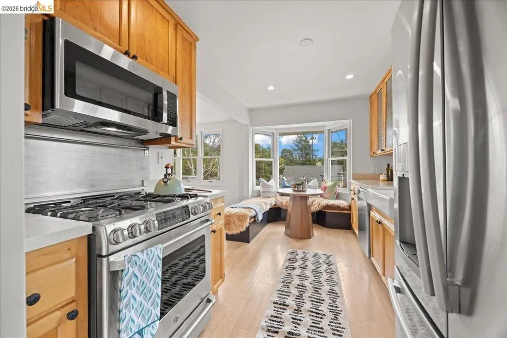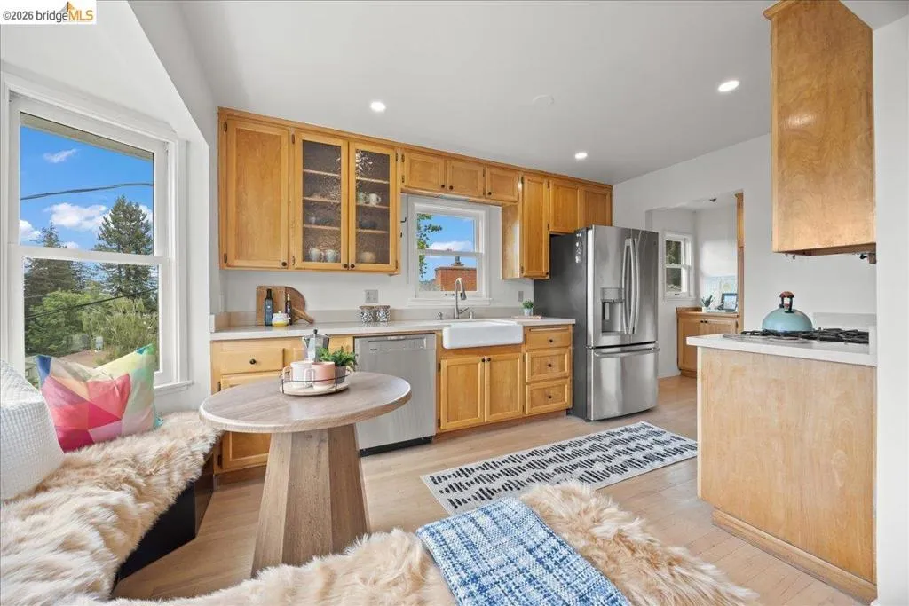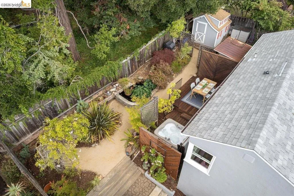 Tucked away in a prime Redwood Heights location, this first-time-on-the-market-in 40+ years home is a true retreat with pride of ownership throughout. Surrounded by a tranquil, zen-like setting, the expansive yard offers multiple decks, peaceful nooks, a large hot tub, koi pond, and even a pizza oven—perfect for relaxing or entertaining under the trees. Inside, great natural light pours through beautiful Marvin windows, highlighting hardwood floors, spacious rooms, and thoughtful updates throughout. The flexible two-story layout features 2 bedrooms and 1 bath on each level, with a separate entrance offering excellent potential for extended family, guests, or added versatility. Spacious open floorplan eat-in kitchen with sunny breakfast nook and huge pantry for exceptional storage. A detached 2-car garage with bonus loft adds even more functionality. With large living spaces, timeless charm, and a private outdoor sanctuary, this is a rare opportunity to own a special Redwood Heights property that has been lovingly cared for for decades. Top rated local schools. Near restaurants, coffee shops, groceries, gym, hardware shore, amenities, and East Bay Regional Parks. Sequoia Diner, Farmer Joes, Ghost Town Brewery, Phnom Penh, Planet Fitness ++ Convenient to Highway 13 and 580 freeways.