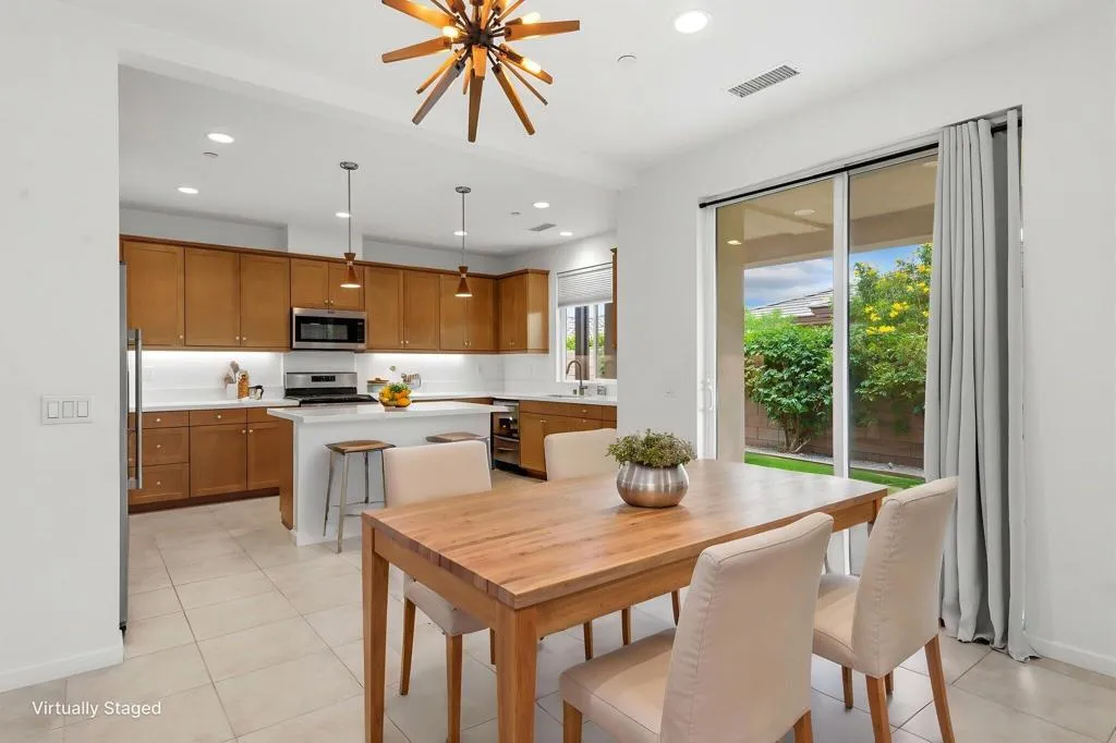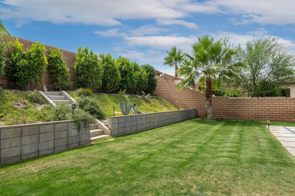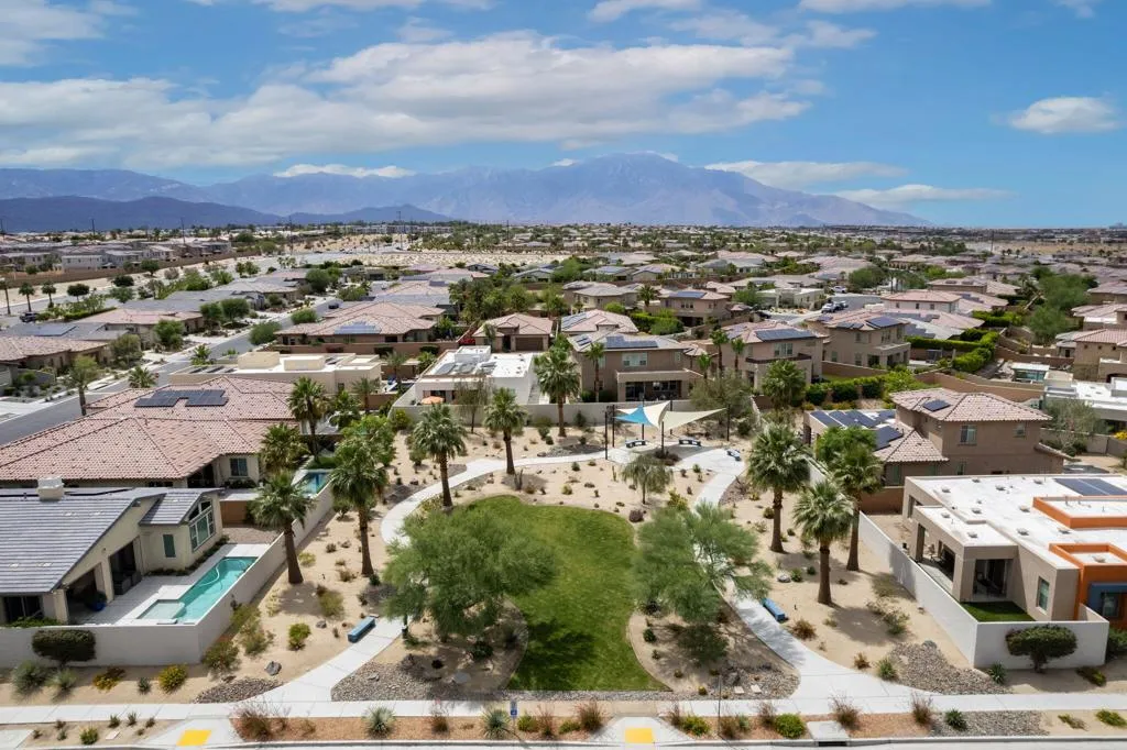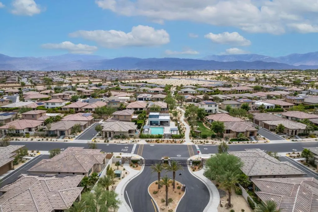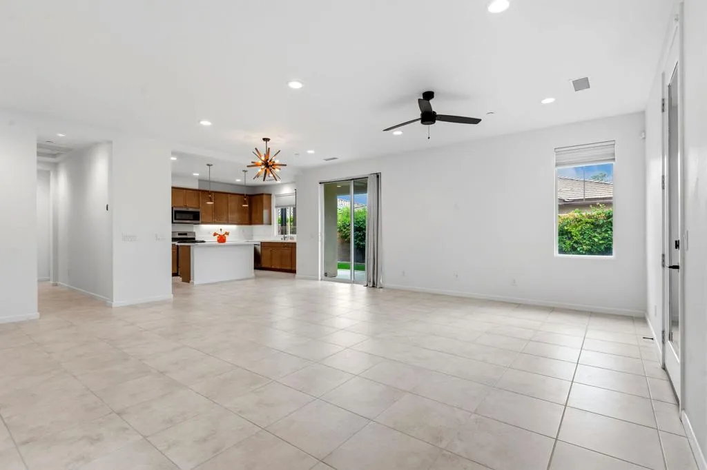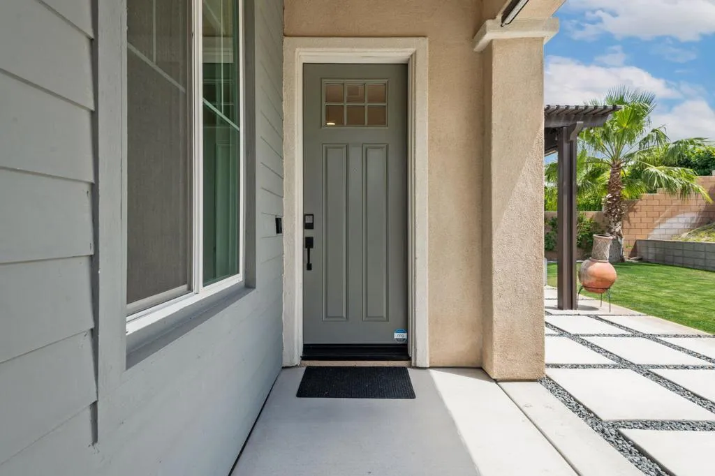 Renovated in 2022, this thoughtfully designed 3-bedroom, 2-bath custom home is located in the gated Genesis community on a larger lot with room for a pool. The home showcases owner upgrades, including an extended courtyard wall that enhances privacy and outdoor living, along with 9' ceilings, 18x18 tile flooring, custom lighting, fixtures, and cellular blinds.The open-concept layout is filled with natural light, with sliding doors from the dining area and a French door from the Great Room creating a seamless indoor-outdoor connection.The backyard is landscaped with Bermuda turf, palm trees, and desert plantings, offering three seating areas including two pergolas and a covered patio off the kitchen--ideal for relaxing or entertaining.The primary suite features private patio access, a walk-in closet, dual vanities, and a custom-tiled shower. Both bathrooms include floor-to-ceiling tiled showers and upgraded finishes.Smart home features include Ring alarm with front door camera, smart lock, Eufy outdoor cameras, ecobee thermostat, and garage door app.Additional highlights include an upgraded laundry room, added garage storage, EV charger conduit, and access to dog parks, fitness center, and pool/spa. Low HOA includes internet, cable, and exterior landscaping.