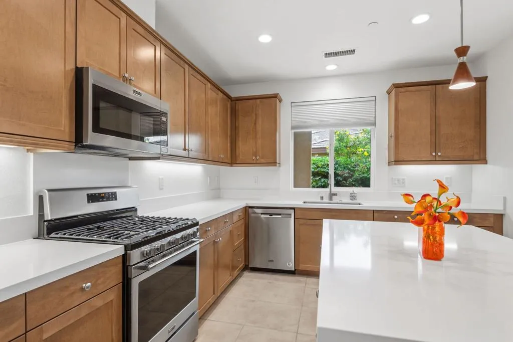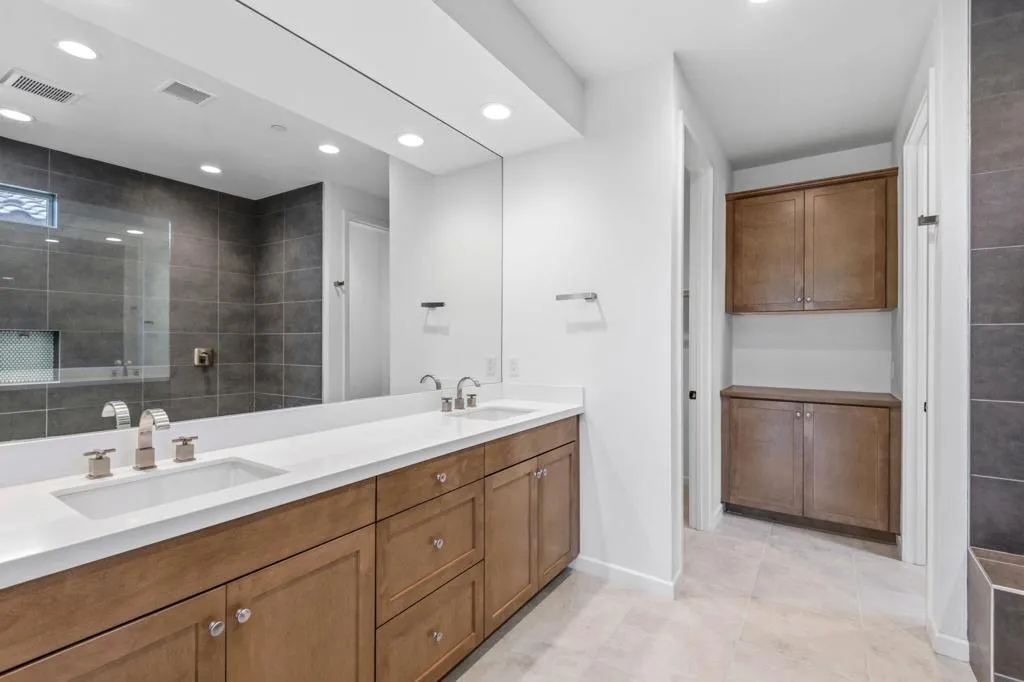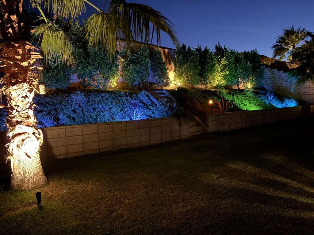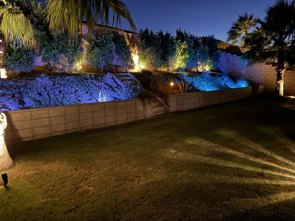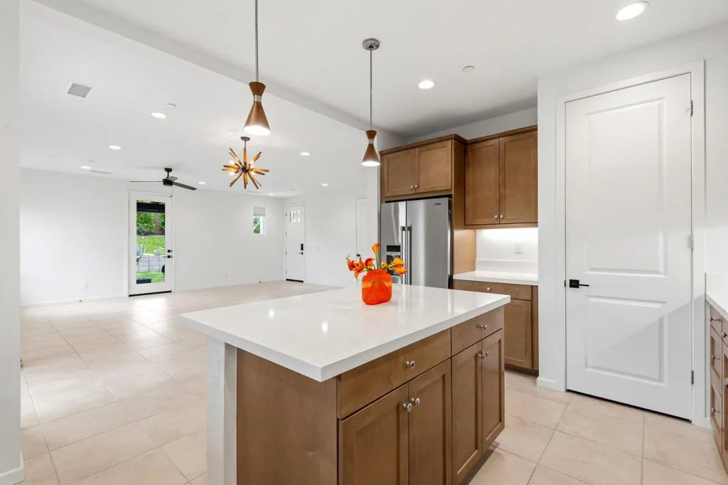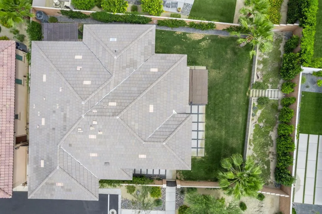 Renovated in 2022, this thoughtfully designed 3-bedroom, 2-bath custom home is located in the gated Genesis community on a larger lot with room for a pool. The home showcases owner upgrades, including an extended courtyard wall that enhances privacy and outdoor living, along with 9' ceilings, 18x18 tile flooring, custom lighting, fixtures, and cellular blinds.The open-concept layout is filled with natural light, with sliding doors from the dining area and a French door from the Great Room creating a seamless indoor-outdoor connection.The backyard is landscaped with Bermuda turf, palm trees, and desert plantings, offering three seating areas including two pergolas and a covered patio off the kitchen--ideal for relaxing or entertaining.The primary suite features private patio access, a walk-in closet, dual vanities, and a custom-tiled shower. Both bathrooms include floor-to-ceiling tiled showers and upgraded finishes.Smart home features include Ring alarm with front door camera, smart lock, Eufy outdoor cameras, ecobee thermostat, and garage door app.Additional highlights include an upgraded laundry room, added garage storage, EV charger conduit, and access to dog parks, fitness center, and pool/spa. Low HOA includes internet, cable, and exterior landscaping.