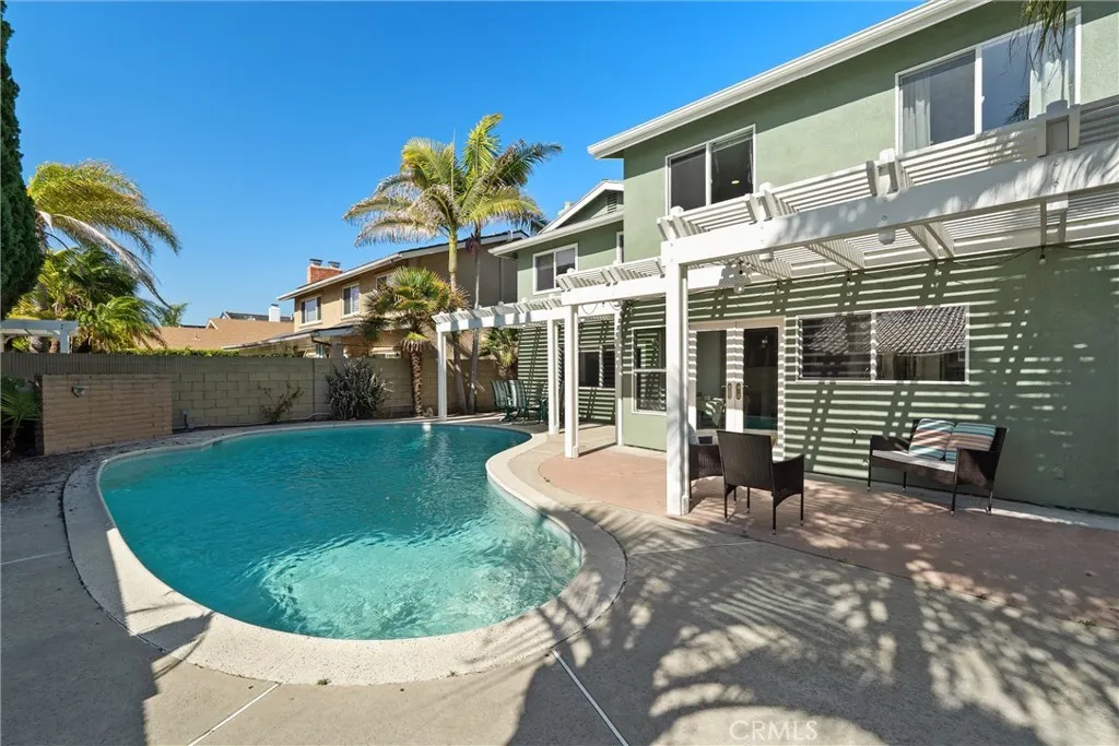 Beautifully upgraded pool home located in the highly desirable College Park East neighborhood of Seal Beach, offering a thoughtfully expanded and versatile floorplan, spacious living areas, and exceptional indoor-outdoor living. This unique home has been significantly enhanced, featuring an expanded primary suite with ample space for a sitting area or home office. The second floor has also been enlarged to include an additional bedroom along with a generous den, office, or family room, accommodating a variety of lifestyle needs. The remodeled and expanded kitchen is a true centerpiece, showcasing a large center island, stainless steel appliances, abundant counter space, and excellent storage. It opens seamlessly to the family room and overlooks the backyard, creating an ideal layout for entertaining and daily use. Vaulted ceilings elevate the living space, adding volume, natural light, and an airy feel that enhances the overall sense of openness. Upgraded flooring runs throughout the home, adding warmth and style, while the formal living and dining rooms provide elegant spaces for gatherings. Step outside to the backyard, where a pool is perfectly positioned just off the kitchen and family room—enhancing the sought-after California indoor-outdoor lifestyle. Solar panels add energy efficiency. Located on a quiet, tree-lined street in one of Seal Beach’s most desirable communities, this home offers convenient access to parks, shopping, dining, the beach, and award-winning schools.