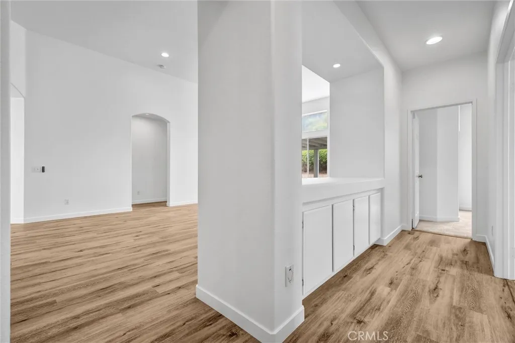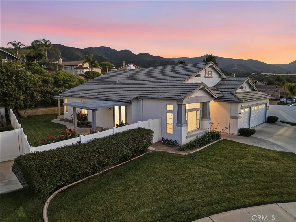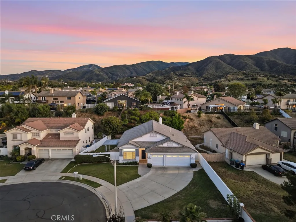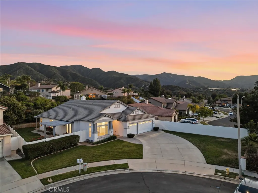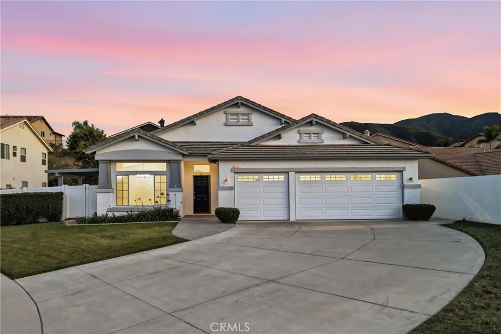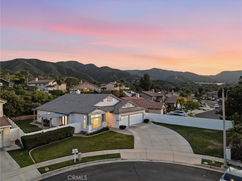 Located in a tree-lined, scenic neighborhood, this beautifully remodeled single-story home sits on a private cul-de-sac with views of the surrounding hills and standout curb appeal. The freshly manicured lawn, wide driveway, stamped concrete entry walkway, and 3-car garage give it a clean, welcoming feel, with additional space for possible RV parking on the expansive 11,326 sq ft lot. Inside, the home opens up to a bright, airy floor plan with high ceilings, archways, and 2,317 sq ft of living space, offering 4 bedrooms and 2 bathrooms. The formal living and dining rooms feature French doors that lead out to the side patio, creating an easy indoor-outdoor flow. The kitchen has been refreshed with painted cabinets, new hardware, tile counters, a breakfast bar, and new stainless steel appliances. The kitchen opens to the family room, which serves as the true focal point of the home with high ceilings, floor-to-ceiling windows, and serene views of the lush backyard. This inviting space also features a fireplace with updated tile and wood mantle, built-ins with accent lighting, and surround sound, creating a comfortable yet elevated setting that’s ideal for both everyday living and entertaining. The primary suite is privately situated on the left side of the home and offers a walk-in closet, new carpet, and direct access to the backyard, while the remodeled primary bath features a shaker-style vanity, quartz counters, dual sinks, new fixtures, a soaking tub, and a walk-in shower. The additional bedrooms are located on the opposite wing of the home on the right side, offering separation and flexibility, and are generously sized with new carpet, while the hall bath has also been updated with double sinks and modern finishes. Throughout the home you’ll find new paint, luxury vinyl plank flooring with upgraded baseboards, recessed lighting, updated lighting fixtures and ceiling fans, surround sound wiring, central vacuum, water softener, and a newer AC unit. Step outside and enjoy a beautifully designed outdoor space that feels like your own private retreat, with a lush, serene backyard surrounded by mature trees and landscaping, complete with stamped concrete patios and walkways, two wood patio covers for shaded gatherings, and a spacious grass area perfect for relaxing or entertaining. Located within the Corona-Norco Unified School District, including Santiago High School, and close to parks, shopping, and commuter access.