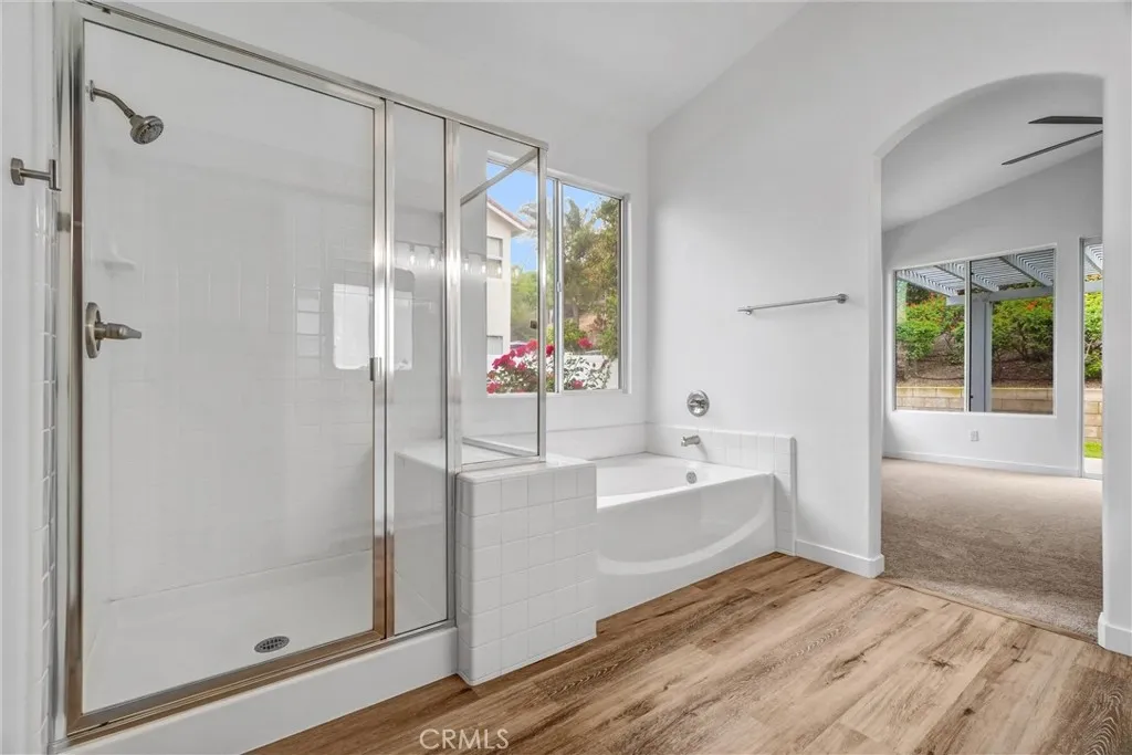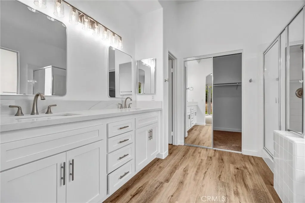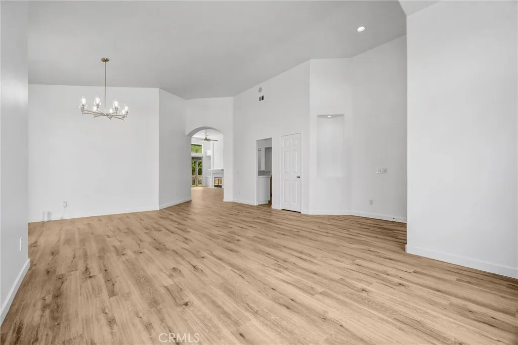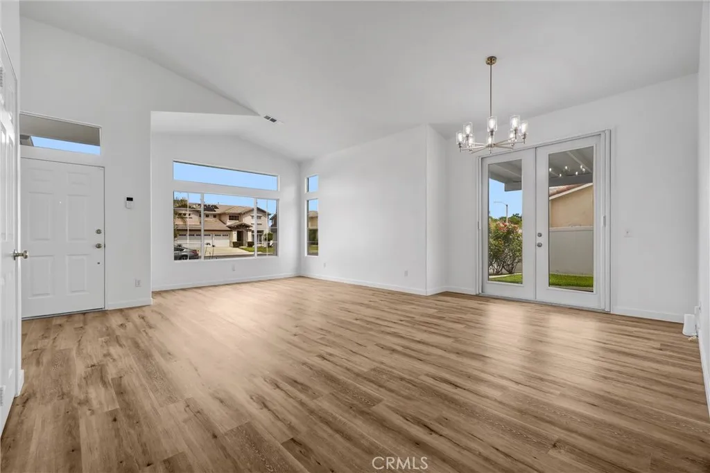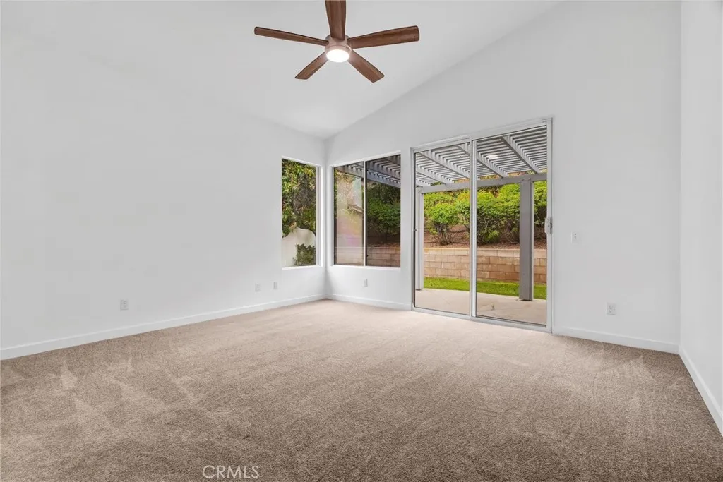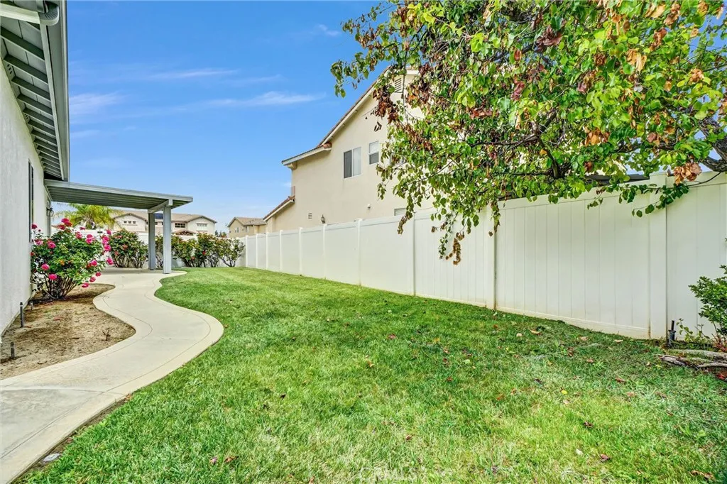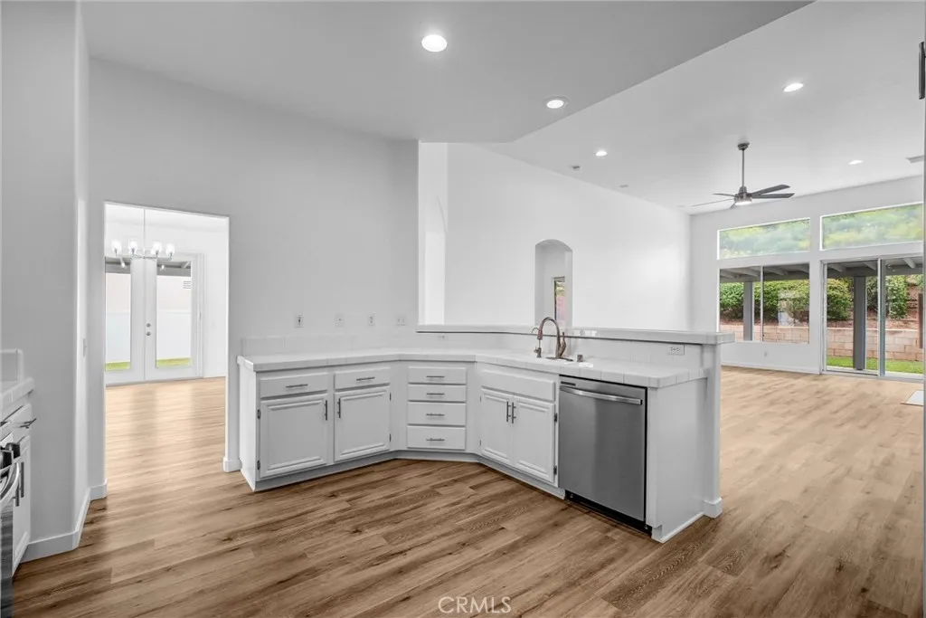 Located in a tree-lined, scenic neighborhood, this beautifully remodeled single-story home sits on a private cul-de-sac with views of the surrounding hills and standout curb appeal. The freshly manicured lawn, wide driveway, stamped concrete entry walkway, and 3-car garage give it a clean, welcoming feel, with additional space for possible RV parking on the expansive 11,326 sq ft lot. Inside, the home opens up to a bright, airy floor plan with high ceilings, archways, and 2,317 sq ft of living space, offering 4 bedrooms and 2 bathrooms. The formal living and dining rooms feature French doors that lead out to the side patio, creating an easy indoor-outdoor flow. The kitchen has been refreshed with painted cabinets, new hardware, tile counters, a breakfast bar, and new stainless steel appliances. The kitchen opens to the family room, which serves as the true focal point of the home with high ceilings, floor-to-ceiling windows, and serene views of the lush backyard. This inviting space also features a fireplace with updated tile and wood mantle, built-ins with accent lighting, and surround sound, creating a comfortable yet elevated setting that’s ideal for both everyday living and entertaining. The primary suite is privately situated on the left side of the home and offers a walk-in closet, new carpet, and direct access to the backyard, while the remodeled primary bath features a shaker-style vanity, quartz counters, dual sinks, new fixtures, a soaking tub, and a walk-in shower. The additional bedrooms are located on the opposite wing of the home on the right side, offering separation and flexibility, and are generously sized with new carpet, while the hall bath has also been updated with double sinks and modern finishes. Throughout the home you’ll find new paint, luxury vinyl plank flooring with upgraded baseboards, recessed lighting, updated lighting fixtures and ceiling fans, surround sound wiring, central vacuum, water softener, and a newer AC unit. Step outside and enjoy a beautifully designed outdoor space that feels like your own private retreat, with a lush, serene backyard surrounded by mature trees and landscaping, complete with stamped concrete patios and walkways, two wood patio covers for shaded gatherings, and a spacious grass area perfect for relaxing or entertaining. Located within the Corona-Norco Unified School District, including Santiago High School, and close to parks, shopping, and commuter access.
