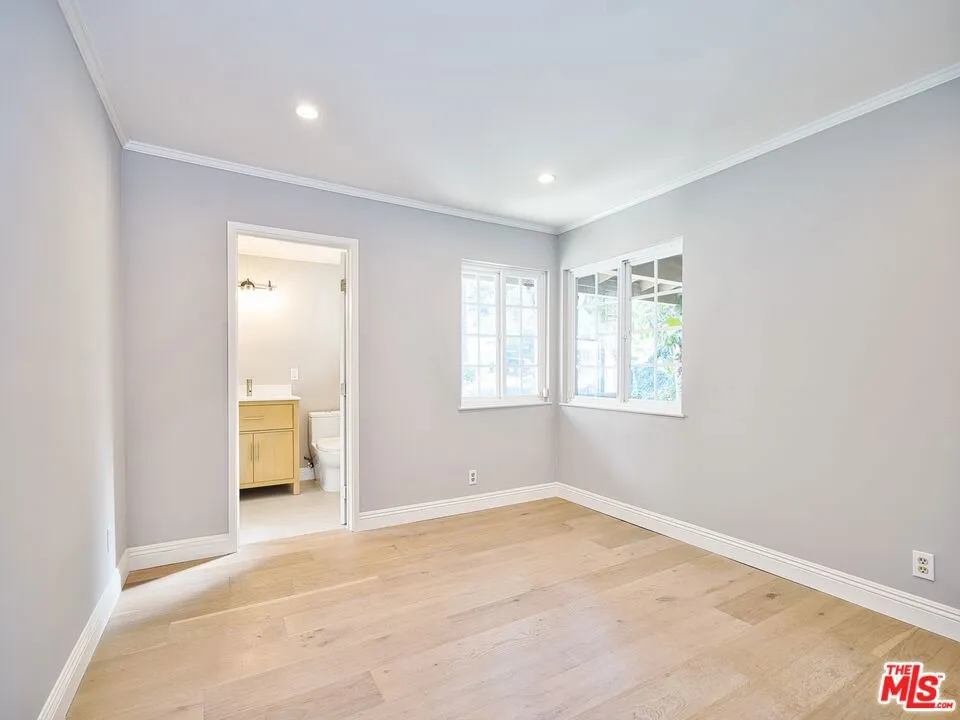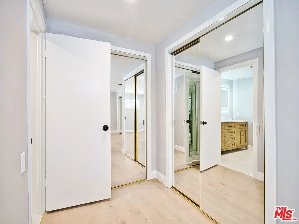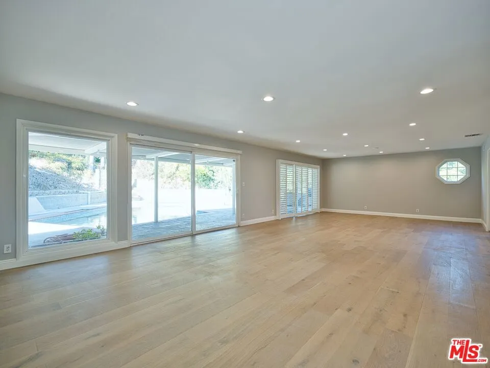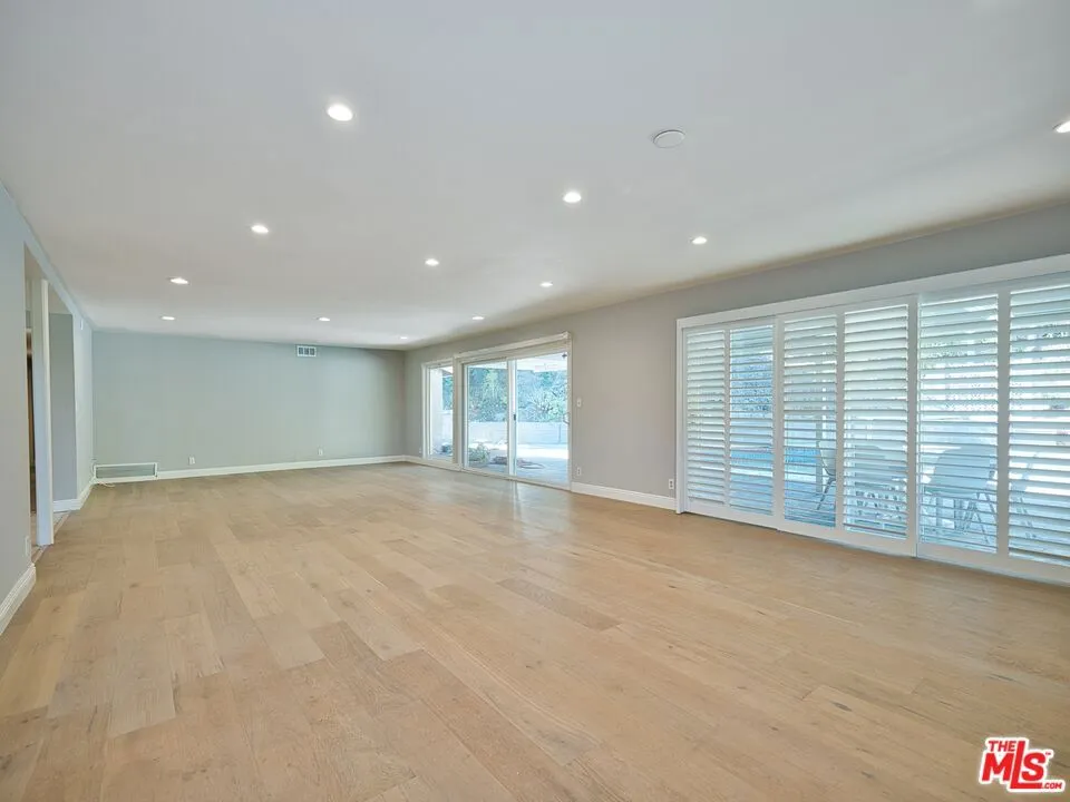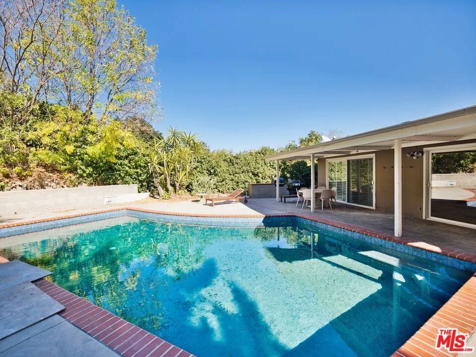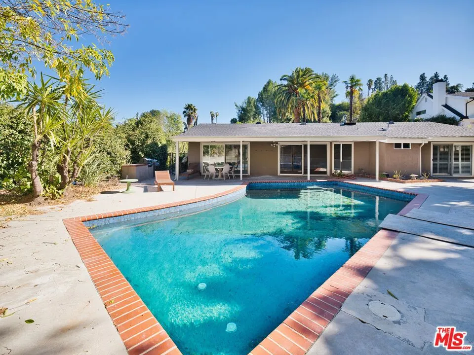 Presenting this beautifully updated single-story California Ranch pool home set above a tree-lined street below towering palms in a desirable neighborhood south of the boulevard. Manicured landscaping and and lush foliage contribute to its charming curb appeal. Enter to find a great room with plantation shutters, sliding doors to the outside, and wide-plank white oak floors. The kitchen is bright and spacious, with ample cabinetry, soothing tile backsplash, and eat-in area. The primary bedroom has floor-to-ceiling windows, dual closets, and remodeled bath with dual-sink vanity, smart mirror, and rainwater shower with ledge and niche. Secondary bedrooms and bathrooms are also finished with on-trend materials, ready for today's modern lifestyle. The laundry room has side-by-side washer/dryer and storage, located off of the kitchen, and there is a two-car garage. In the backyard, swim in the sparkling pool, dine al-fresco under the shaded patio, or lounge poolside. Enjoy nearby hiking trails, parks, and scenic overlooks, with Malibu beaches just a short drive via Topanga Canyon. This move-in-ready home is also close to Taft High School, top-rated K-5 Serrania Avenue Charter, and Pierce College as well as the many eateries and boutiques along Ventura Boulevard, all just moments to Westfield Topanga and Village shopping centers and the 101 Freeway.