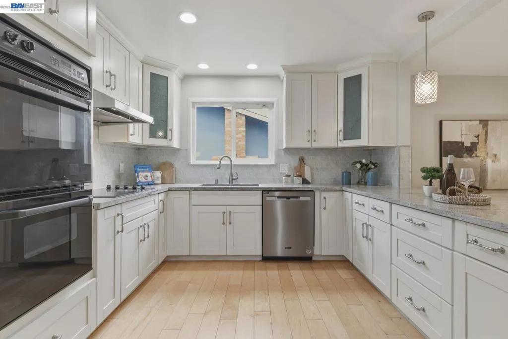 Located in one of the most desirable pockets of Pleasanton, this expanded single-story home offers the kind of space, layout, and location that’s hard to find. Just moments from Harvest Park, the home welcomes you with a spacious, open feel, featuring a large living room, updated kitchen with slab countertops, modern cabinets, and rich hardwood flooring—all thoughtfully laid out with no stairs for effortless everyday living. The beautifully landscaped front and backyard create a private, park-like setting perfect for relaxing evenings or weekend gatherings. A solar system is already in place offering savings on electricity, offering added efficiency. The location is where this home truly separates itself—set in a quiet, established neighborhood with tree-lined streets, nearby parks, and walking trails, yet incredibly connected. You’re approximately 1–2 miles to major grocery stores, around 2 miles to highly rated assigned schools including Harvest Park Elementary, Pleasanton Middle School, and Amador Valley High School, and just about 3 miles to the charm and energy of Downtown Pleasanton with its restaurants, boutiques, and year-round community events. With quick access to Highway 680, this home delivers both a peaceful neighborhood feel and a commuter-friendly location—exactly what buyers are looking for in Pleasanton.