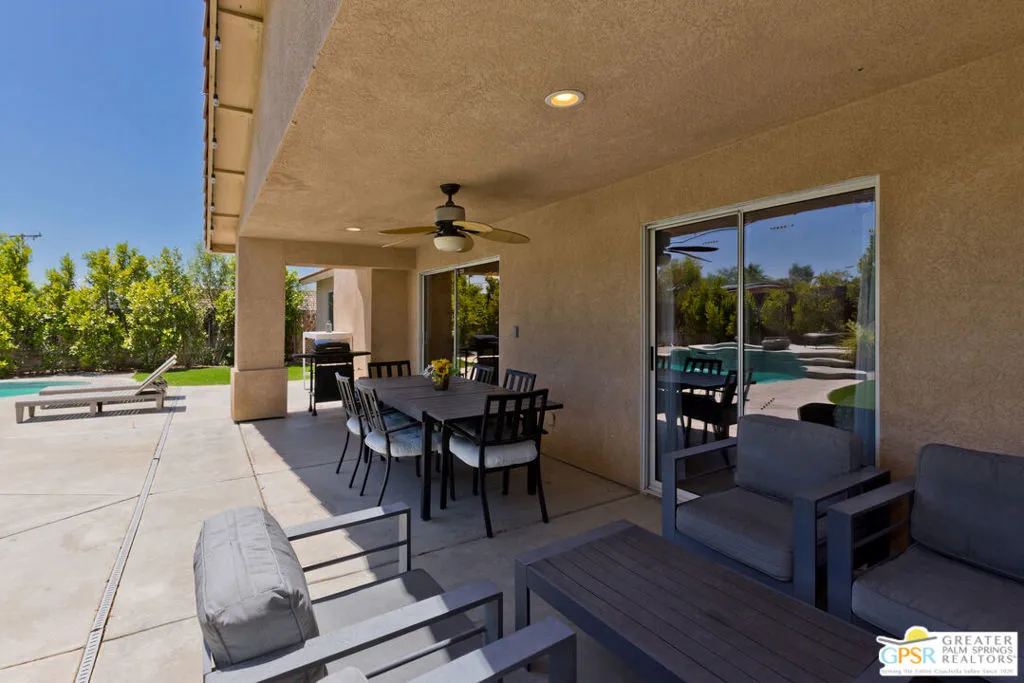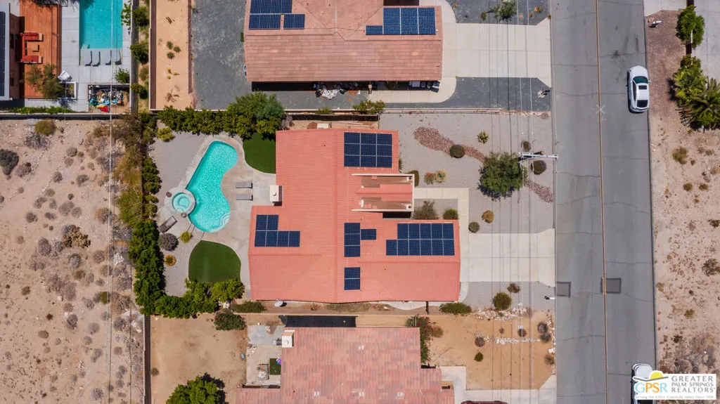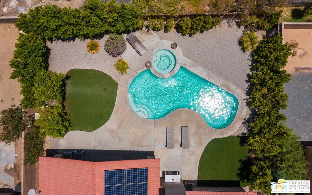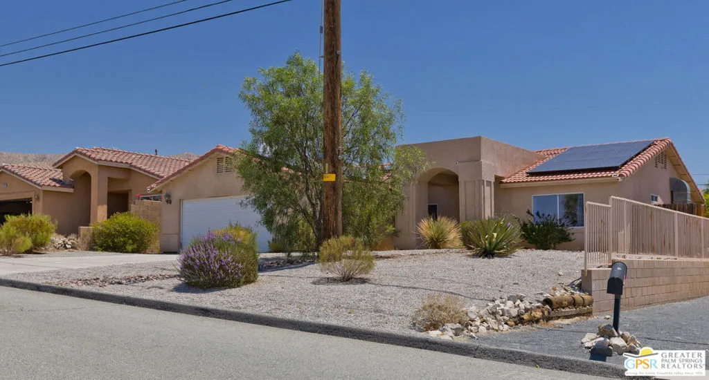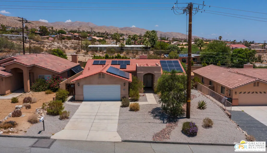 Desert Living Meets Modern Luxury! Discover laid-back desert living in this beautifully updated 3-bedroom, 2-bath retreat nestled in north of Hacienda in Desert Hot Springs. Thoughtfully remodeled and available furnished, this home blends premium finishes, resort-style amenities, and energy efficiency into one incredible value. Step inside to a spacious open floor plan with soaring ceilings, perfect for relaxing or entertaining guests. The chef's kitchen boasts stainless steel appliances, ample prep space, and seamless flow into the dining and living areas making everyday living feel elevated and effortless. Outdoors, unwind in your private backyard oasis featuring a sparkling pool and spa, ideal for soaking up the desert sun year-round. Eco-conscious buyers will appreciate the energy-efficient upgrades, including solar panels and central A/C, offering both comfort and cost savings. An attached 2-car garage provides convenience and additional storage. Whether you're looking for a full-time residence, seasonal escape, or a smart investment, this turnkey home delivers on both luxury and value in one of Desert Hot Springs best locations. Just minutes from downtown Desert Hot Springs, local spa resorts, and a short drive to Palm Springs, this home offers tranquility and accessibility in equal measure.