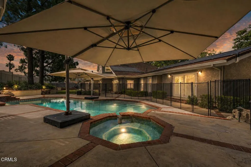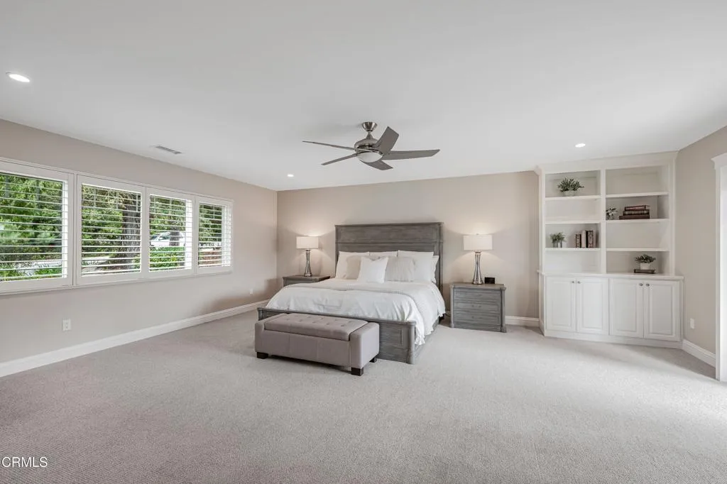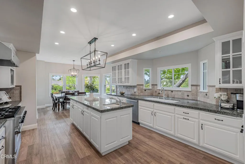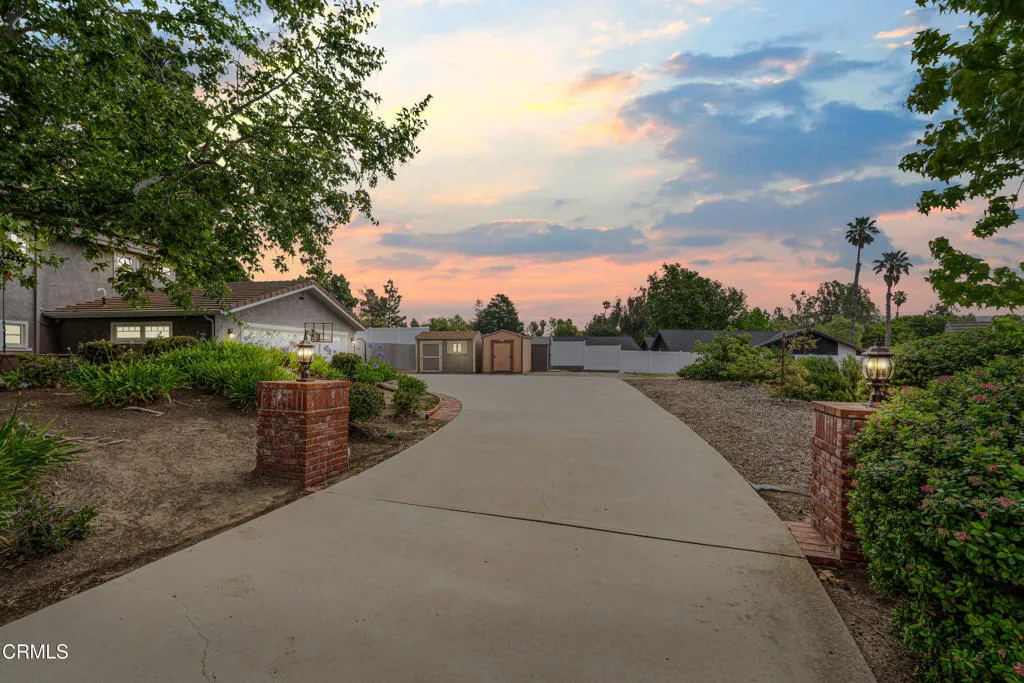 Welcome to one of the most sought-after streets in Somis, where all-flat parcels, underground utilities, and custom-built homes create a rare and highly desirable setting. Located in this scenic and peaceful community, this beautifully maintained and thoughtfully remodeled residence offers an exceptional blend of space, functionality, and lifestyle.Set on a sprawling, fully usable flat lot, the property features a resort-style backyard with a large covered patio, raised garden beds, sparkling pool and spa, playground area, and a tool shed--all surrounded by lush landscaping and mature trees. The property also offers RV parking and an oversized garage, providing ample space for vehicles, storage, and recreational needs.Inside, the home offers a spacious and well-designed layout. The sunken living room showcases soaring vaulted ceilings, a two-sided fireplace, and French doors that open to the backyard. The formal dining room features vaulted ceilings and a bay window and flows seamlessly into the living room, creating an ideal setting for entertaining. The inviting family room offers sliding doors for effortless indoor-outdoor living.The expansive kitchen is ideal for entertaining, complete with a large island, granite countertops, stainless steel appliances, gas range, and an everyday dining area surrounded by windows. Just outside, a charming front-yard swing adds a warm and inviting touch.The home features 5 bedrooms, including two primary suites, ideal for multi-generational living. The main-level primary suite offers direct backyard access, a walk-in closet, and an upgraded ensuite bath. An additional bedroom on the main level is currently used as an office.Upstairs, a second primary suite includes a fireplace, private balcony, and an ensuite bath, along with two additional bedrooms.Additional highlights include fully paid electric solar, a solar thermal pool heater, and durable porcelain tile flooring throughout much of the main level.Zoned for horses and offering ADU potential, this property provides incredible flexibility for future use. With its prime location, expansive usable lot, and versatile layout, this home is a rare opportunity to experience the very best of Somis living.