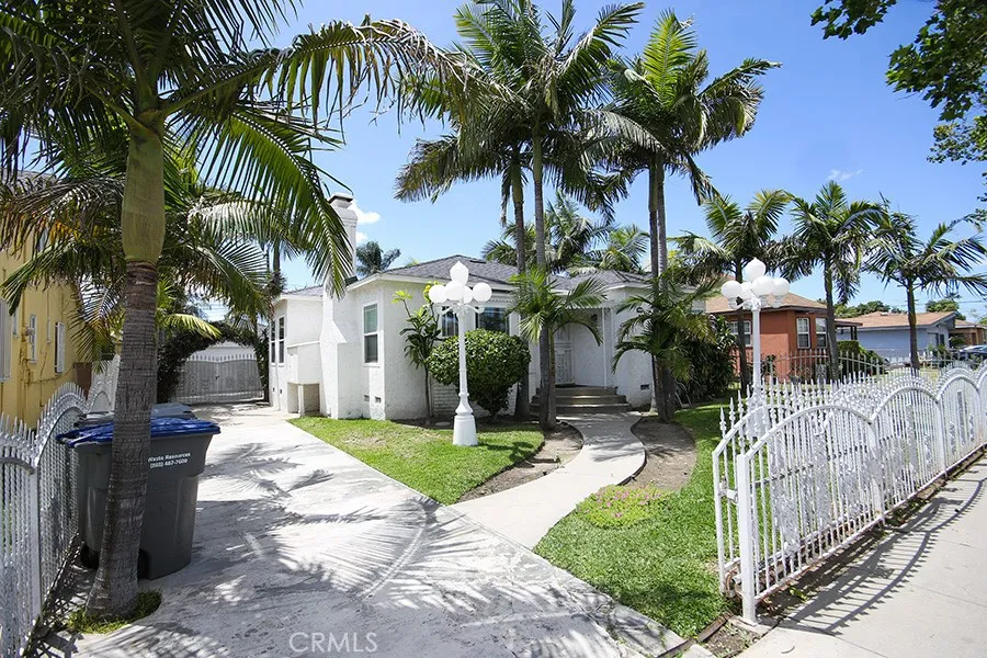 With a beautifully landscaped fenced in front yard lined with mature palm trees, it's love at first sight in Lynwood! The entire street shows pride of ownership and this white picket fence home fits right in! Upon entry, the all-tile flooring keeps the home nice and cool while the large windows keep the living room bright with natural sunlight. The dining room with built-in storage will accommodate a large table ready to host dinner amongst friends, and your work-from-home space is defined with a perfect area for an office nook. You'll love the updated kitchen with brand new refrigerator, gas stove, and microwave. The spacious primary bedroom features hardwood floors and large closet, with a remodeled ensuite bath and oversized step-in shower. Second bedroom faces the front of house, has hardwood floors and a ceiling fan. Second bathroom has also been updated and has shower-over-tub. Washer/dryer hookups inside the home. Wall heat only. Step outside to the manicured yard with lush plant life and privacy, as well as a long driveway leading to the detached 2-car garage and a covered patio space that is made for outdoor dining and entertainment! Landscaping is included in the rent price. Quick access to the 105 Freeway and all the restaurants/retail needs in the neighborhood make this an ideal location in Lynwood. Don't miss out on calling this your next home!
