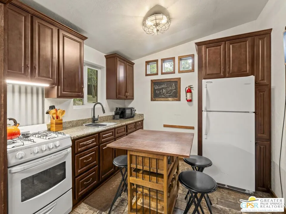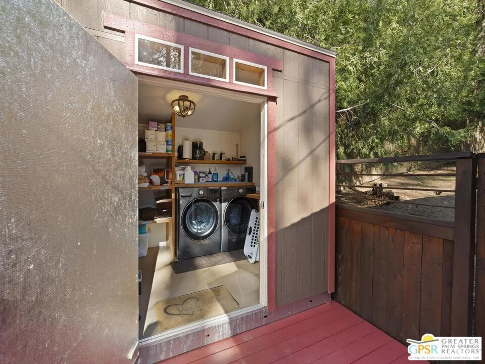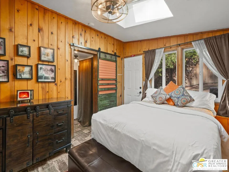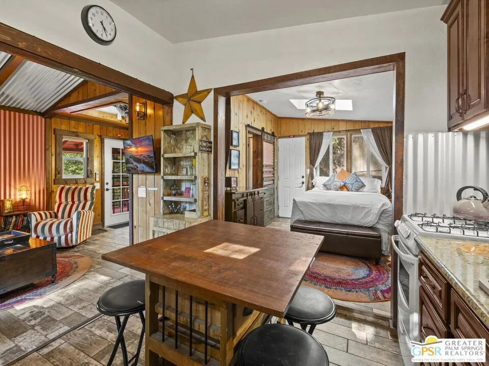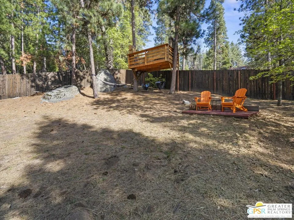 The Little Red: A Storybook Cabin in Idyllwild 1Bd + Loft|1 Bath|486 Sq Ft|.37 Acres|Built 1955| Bunkhouse + Laundry|Whole-House Generator Don't let the square footage fool you. At 486 square feet, this mountain cabin delivers more life per square foot than most homes three times its size and the .37-acre fully fenced lot gives you room to breathe in every direction. The bones are original -- the cabin was built in 1955. The systems are new. A raised roof with fresh insulation installed just five years ago, updated electrical panel, an energy-efficient mini split for heating and cooling, and a wood-burning fireplace insert that turns a January snowstorm into the best night of the weekend. Inside, the main level is complete -- an open plan kitchen, dining, and living room flowing together, a bedroom tucked behind a barn door with a skylight overhead, and a full bath behind a second barn door. A loft sleeping area accessed by a ship's ladder sits above it all.Step outside and the property opens up. The deck is oversized by any measure, with multiple seating zones, a covered porch, room to host a crowd, and it flows out to a fully fenced yard that begs to be explored. A hammock hangs between the pines, a treehouse deck sits elevated in the canopy, and there is more than enough room for dogs to run. This is a property built for people who want to live outside as much as in.Two additional outbuildings round out the compound: a converted bonus sleeping space and a dedicated laundry and washroom shed. A whole-house Generac generator means this property functions beautifully in every season, through every storm.Small by design. Extraordinary by every other measure. The Little Red is ready for whatever you have in mind.