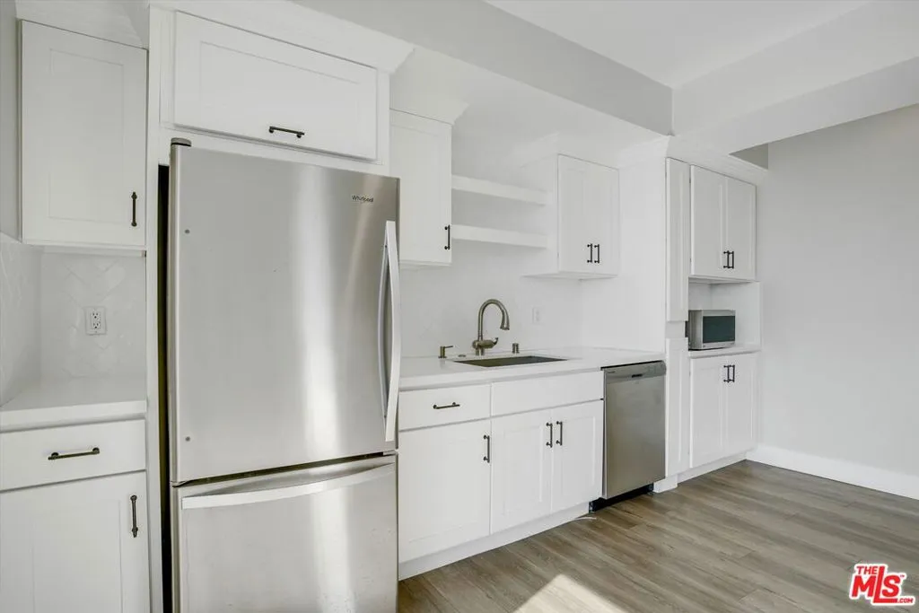Located just a half block off Montana Avenue, this completely remodeled, top floor pet-friendly unit has been updated with only the finest detailing and taste. This spacious 3 - bedroom apartment is full of open spaces, natural sun light and privacy. Highlights include brand new hardwood flooring, stainless steel appliances, custom cabinetry, marble counter tops and premium crown molding. This luxury unit also boasts custom fixtures, recessed lighting, a spacious eating area off the brand new kitchen and new electrical and plumbing. The huge open floor plan has a large living room space and dining room with a generously sized airy balcony, perfect for outdoor eating or entertaining guests. Each of the bedrooms have access to a full, updated bathroom. Third bedroom (currently no closet) can be used as a den or an office with its own separate entrance... perfect for an "at home" office. With brand new high end washer/dryer, Central A/C, ample storage space, elevator access along with two covered gated parking spaces, this one will go quick!
