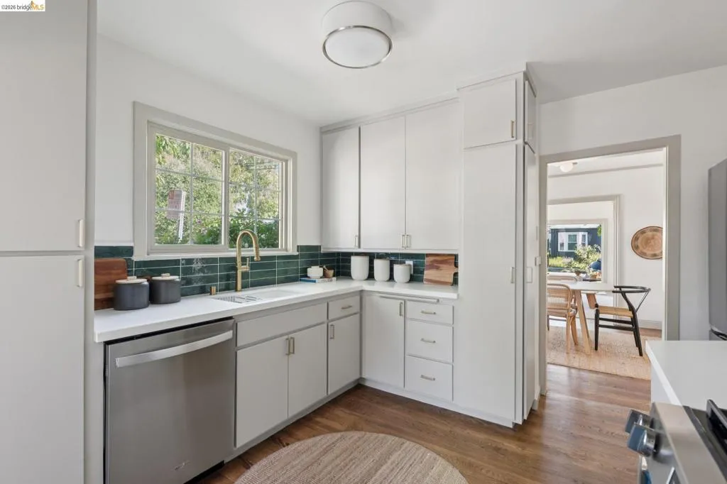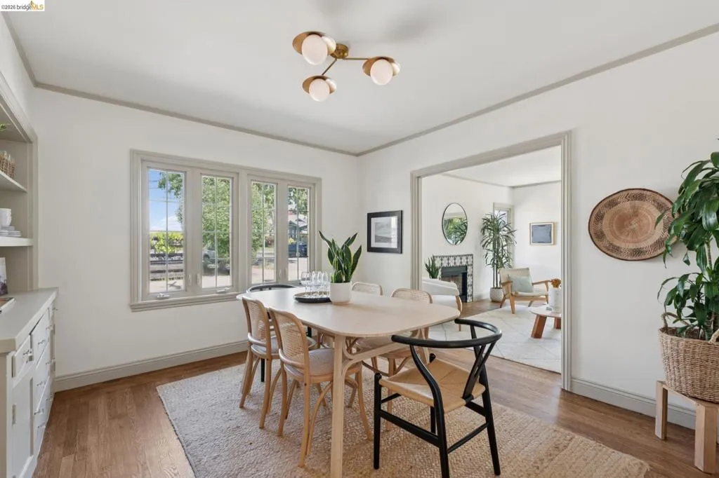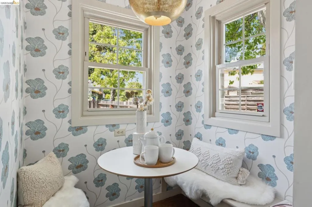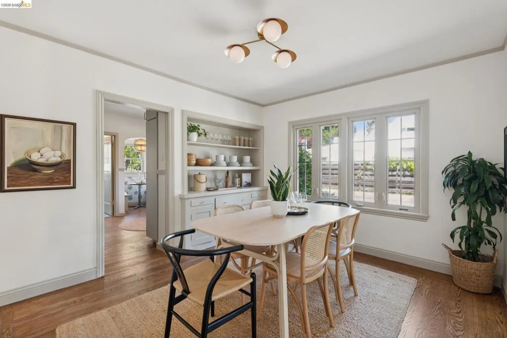 In the heart of Westbrae is a sunny green house, with a flower garden and big south-facing front window. Maybe this is a house you've walked past many times, to Acme Bread for morning coffee and pastries – just two blocks away – or on your way to Monterey Market for fresh produce. Maybe you've driven by, heading to Cedar Rose Park for pickleball, or the half mile to North Berkeley BART. This little house lives large in many hearts, and we hope you'll come visit. We suggest: bathing in the natural light of the living room's big picture window. Deciding which window is best to read next to. Taking note of the creamy chocolate hue of the original hardwood floors. Peering into the dining room's built-ins, both vintage and functional. Picking which bedroom will be yours – sunny and street-facing, or private and cozy towards the backyard? Poking your head into the remodeled bathroom, gleaming in crisp taupe. Mapping out a future dinner party, lit up by a kitchen designed in cheerful blues and greens. This kitchen is lovely, and functional, but most importantly, it's a happy kitchen; for being together, eating together, for sleepy waffles and Sunday coffee in the breakfast nook. And, it flows easily to the backyard, for outdoor dinners and summer sunsets. Now, here's the big picture of 1229 Hopkins: a mile to Solano, a mile to the 4th St shops, 1.4 miles to North Berkeley's Gourmet District. 1229 Hopkins sits in the middle of a perfect Venn diagram, of darling house and lively location. Houses like this are why we all can't get Berkeley out of our hearts. Come and stay a while. | Home energy score of 9