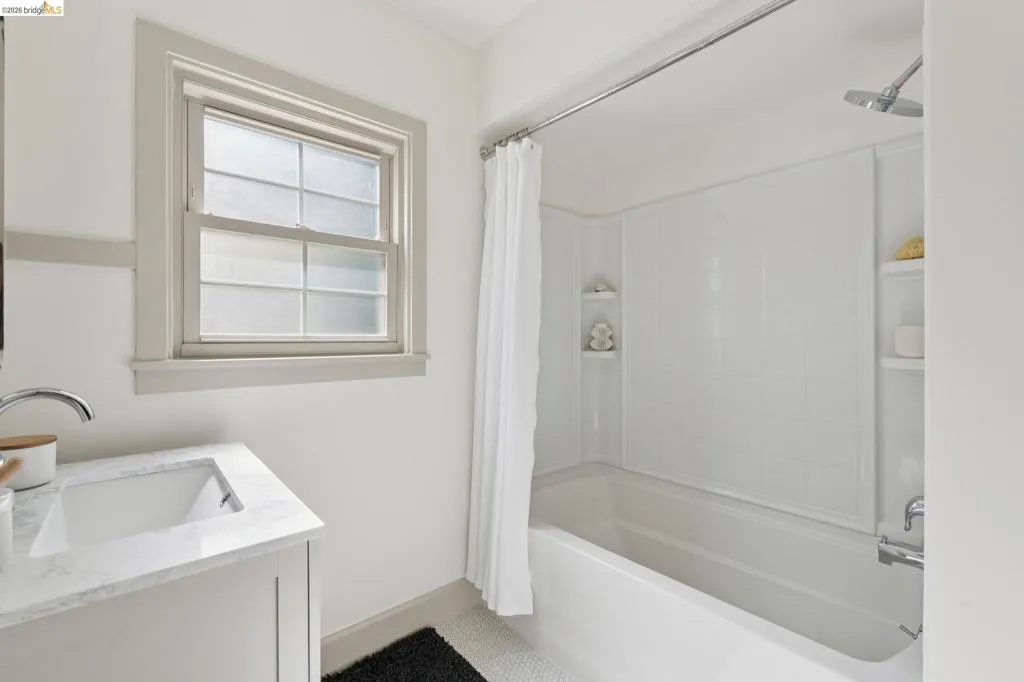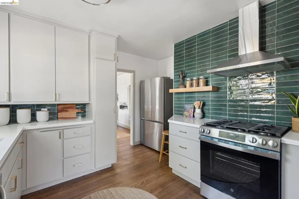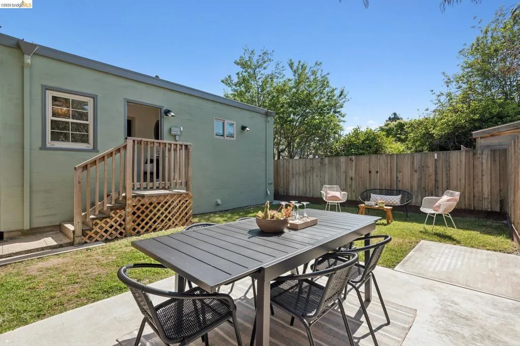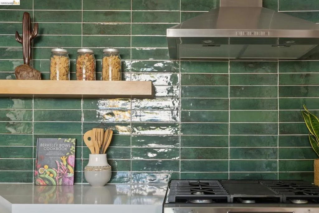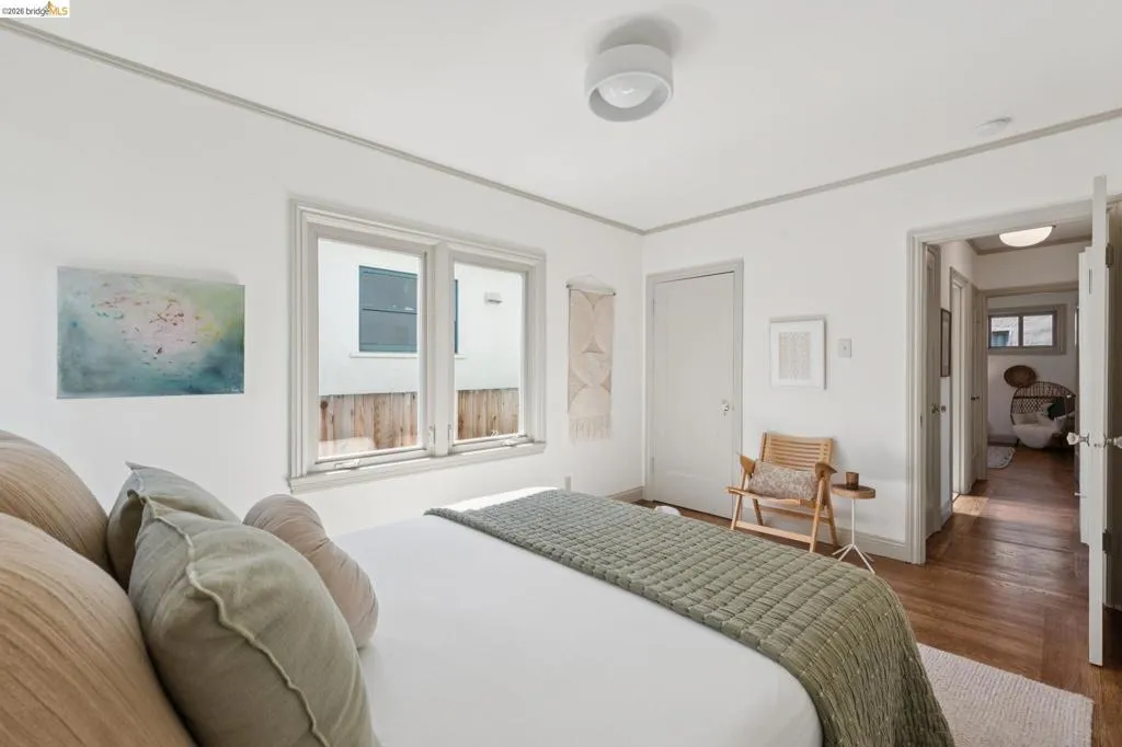 In the heart of Westbrae is a sunny green house, with a flower garden and big south-facing front window. Maybe this is a house you've walked past many times, to Acme Bread for morning coffee and pastries – just two blocks away – or on your way to Monterey Market for fresh produce. Maybe you've driven by, heading to Cedar Rose Park for pickleball, or the half mile to North Berkeley BART. This little house lives large in many hearts, and we hope you'll come visit. We suggest: bathing in the natural light of the living room's big picture window. Deciding which window is best to read next to. Taking note of the creamy chocolate hue of the original hardwood floors. Peering into the dining room's built-ins, both vintage and functional. Picking which bedroom will be yours – sunny and street-facing, or private and cozy towards the backyard? Poking your head into the remodeled bathroom, gleaming in crisp taupe. Mapping out a future dinner party, lit up by a kitchen designed in cheerful blues and greens. This kitchen is lovely, and functional, but most importantly, it's a happy kitchen; for being together, eating together, for sleepy waffles and Sunday coffee in the breakfast nook. And, it flows easily to the backyard, for outdoor dinners and summer sunsets. Now, here's the big picture of 1229 Hopkins: a mile to Solano, a mile to the 4th St shops, 1.4 miles to North Berkeley's Gourmet District. 1229 Hopkins sits in the middle of a perfect Venn diagram, of darling house and lively location. Houses like this are why we all can't get Berkeley out of our hearts. Come and stay a while. | Home energy score of 9