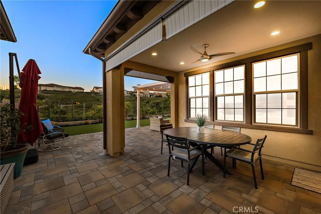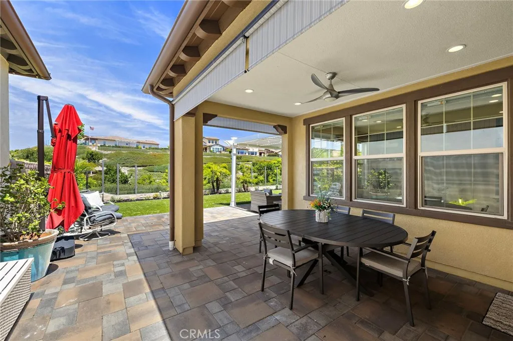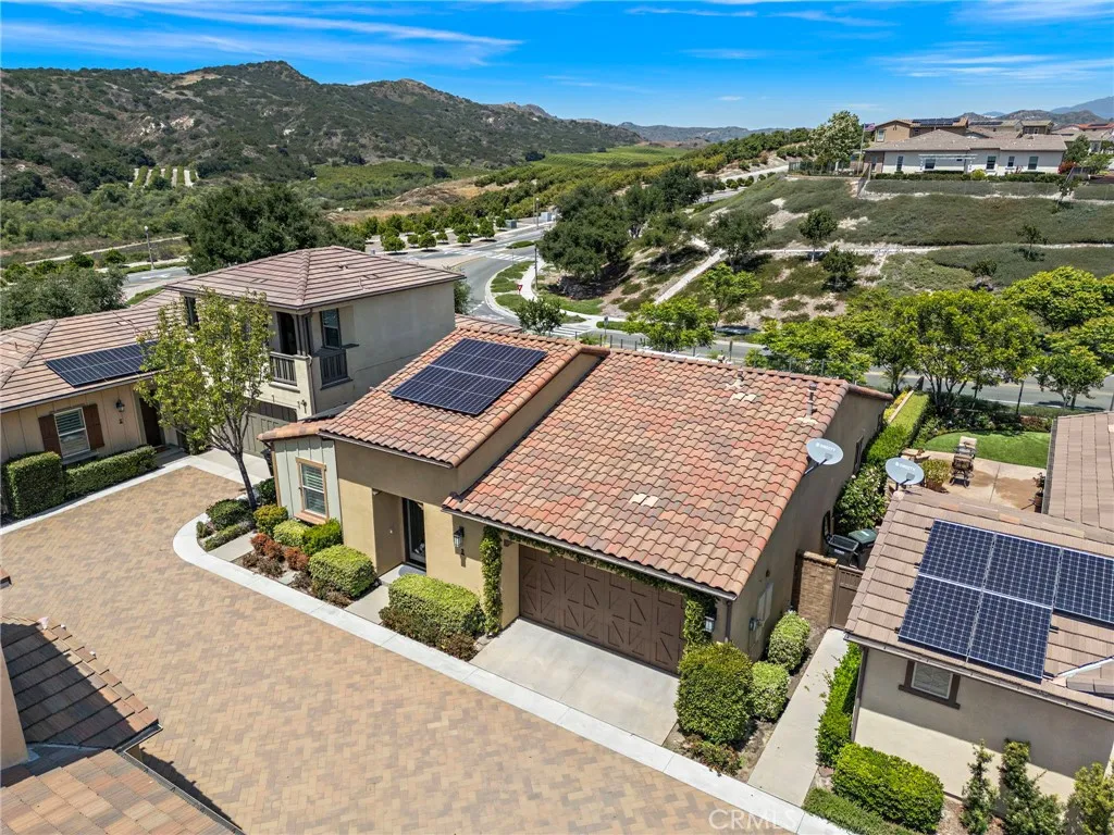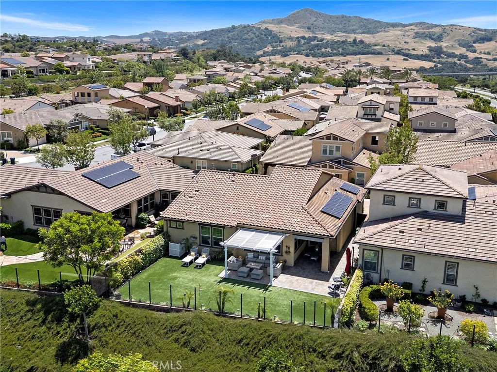 Enjoy elevated 55+ living in this beautifully upgraded two-bedroom, two-bath view home in the desirable Gavilan community of Rancho Mission Viejo. Thoughtfully designed with high-end finishes, real wide plank wood flooring, automatic blinds, and fully paid solar, this turnkey residence offers both comfort and efficiency in a peaceful, serene setting. The stunning kitchen features white shaker-style cabinetry, KitchenAid stainless steel appliances, and a built-in dry bar—perfect for entertaining or everyday convenience. The light-filled interior flows seamlessly into the living and dining spaces, creating an inviting, open-concept layout. Step outside to an entertainer’s backyard, complete with ample space for outdoor dining, relaxing, and taking in the tranquil hillside views. Whether hosting guests or enjoying a quiet evening, the outdoor living space is truly a standout feature. Ideally situated in a quiet neighborhood, you’re just a short walk to The Outlook, one of Gavilan’s premier amenities. Residents enjoy exclusive access to resort-style living with multiple clubhouses including The Hacienda, The Getaway, The Outlook, and The BBQ Barn. Amenities include a state-of-the-art fitness center, saltwater pool and spa, cabanas, bocce ball courts, yoga studio, fire pits, and outdoor gathering spaces. Even better, when family visits, you’ll have access to Rancho Mission Viejo’s award-winning amenities designed for all ages. All of this, just five miles from the beautiful beaches of South Orange County. Welcome to 3 Cerrero Court—where lifestyle, comfort, and location come together.