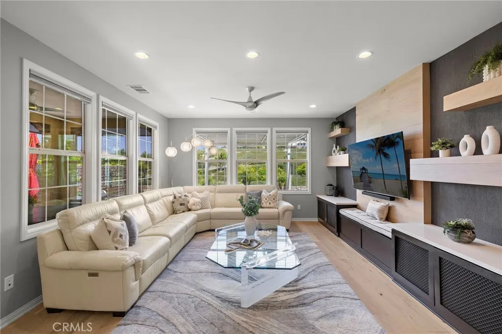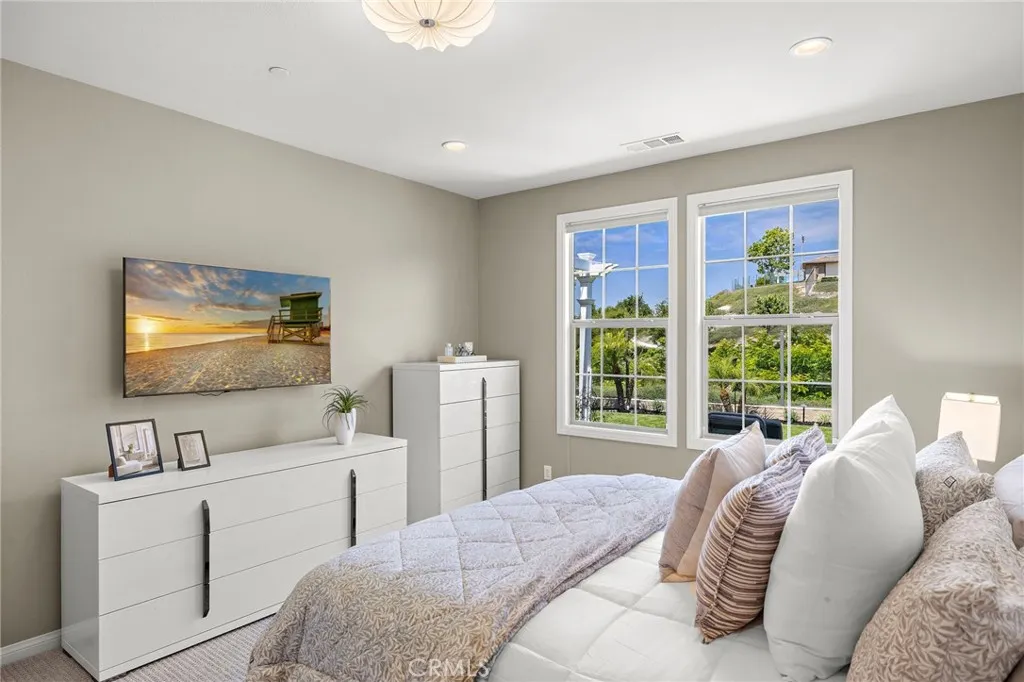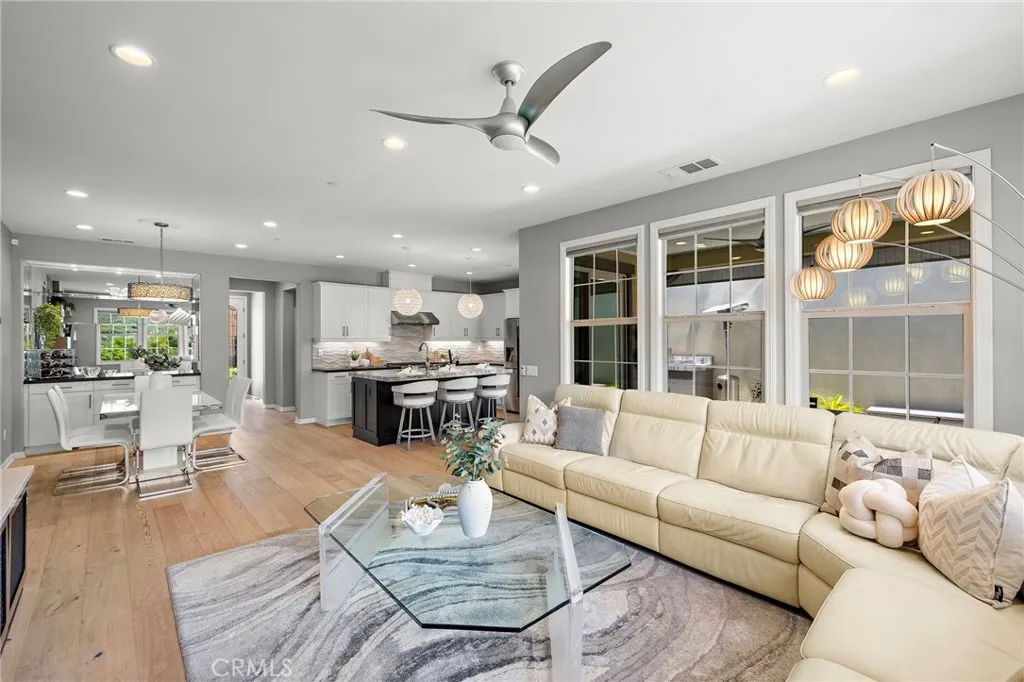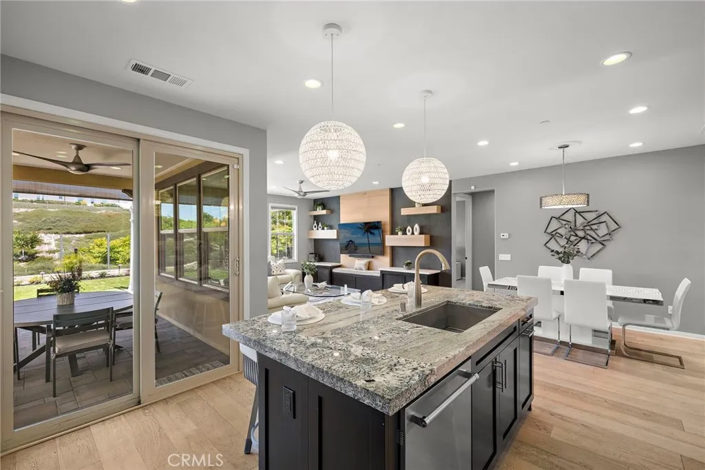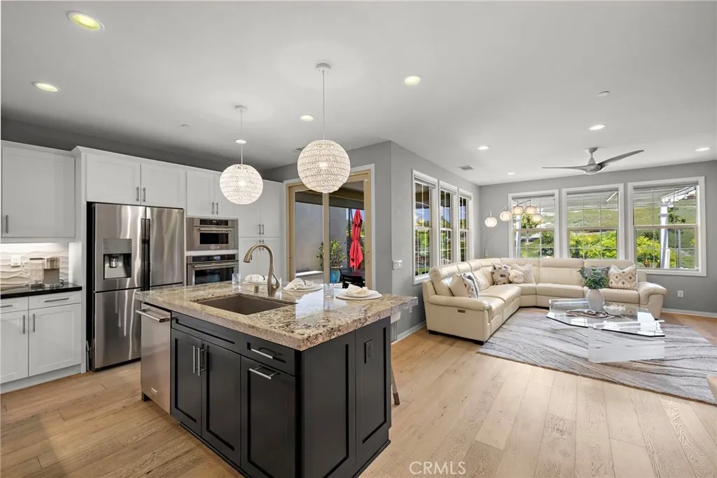 Enjoy elevated 55+ living in this beautifully upgraded two-bedroom, two-bath view home in the desirable Gavilan community of Rancho Mission Viejo. Thoughtfully designed with high-end finishes, real wide plank wood flooring, automatic blinds, and fully paid solar, this turnkey residence offers both comfort and efficiency in a peaceful, serene setting. The stunning kitchen features white shaker-style cabinetry, KitchenAid stainless steel appliances, and a built-in dry bar—perfect for entertaining or everyday convenience. The light-filled interior flows seamlessly into the living and dining spaces, creating an inviting, open-concept layout. Step outside to an entertainer’s backyard, complete with ample space for outdoor dining, relaxing, and taking in the tranquil hillside views. Whether hosting guests or enjoying a quiet evening, the outdoor living space is truly a standout feature. Ideally situated in a quiet neighborhood, you’re just a short walk to The Outlook, one of Gavilan’s premier amenities. Residents enjoy exclusive access to resort-style living with multiple clubhouses including The Hacienda, The Getaway, The Outlook, and The BBQ Barn. Amenities include a state-of-the-art fitness center, saltwater pool and spa, cabanas, bocce ball courts, yoga studio, fire pits, and outdoor gathering spaces. Even better, when family visits, you’ll have access to Rancho Mission Viejo’s award-winning amenities designed for all ages. All of this, just five miles from the beautiful beaches of South Orange County. Welcome to 3 Cerrero Court—where lifestyle, comfort, and location come together.