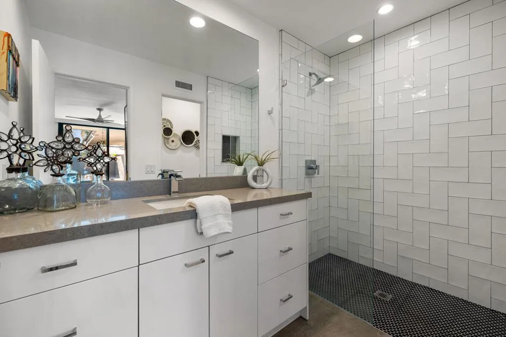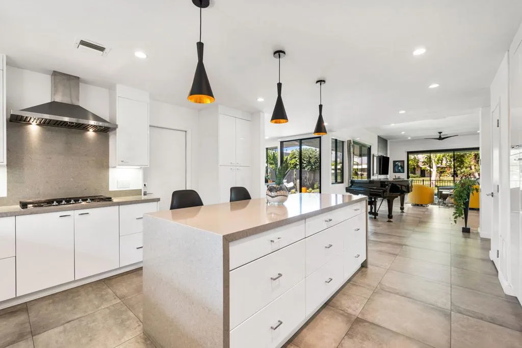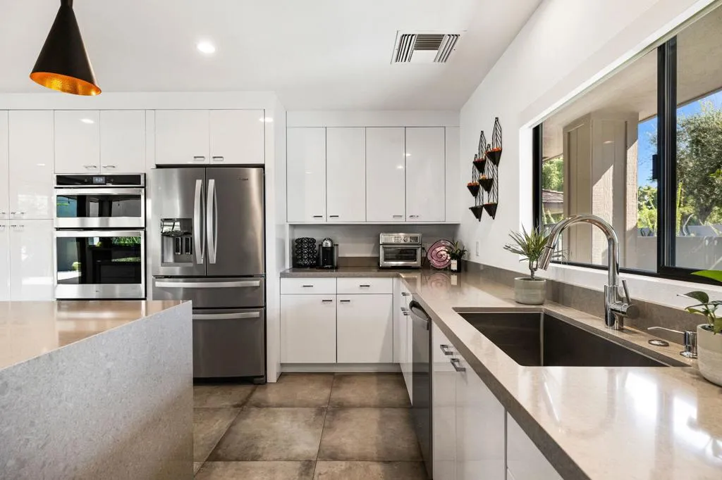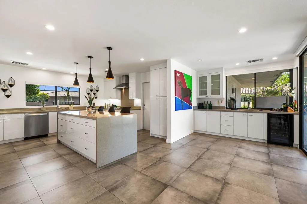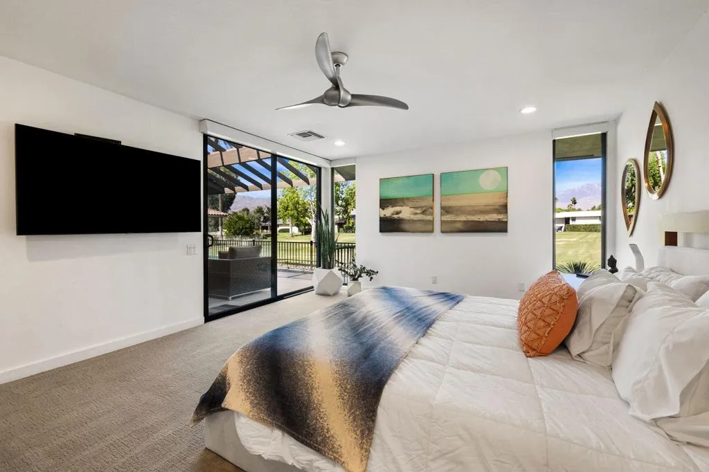 WOW! Home is being offered mostly furnished! Experience the epitome of modern desert living in this stunningly remodeled home! With breathtaking views of the Western mountains and lush greenbelt, every moment feels like a getaway. Step inside to discover a sleek, contemporary kitchen boasting quartz countertops, stainless steel appliances, and chic cabinetry. The spacious open concept layout is ideal for entertaining, while the crisp white walls and tile flooring provide a canvas for your personal art collection. Retreat to one of three bedrooms, each exuding the same contemporary elegance found throughout the home. Outside, a fabulous outdoor living space awaits, perfect for soaking in the desert sun or enjoying al fresco dining. Plus, with access to a community pool and amenities like golf, tennis, and fitness facilities, The Springs in Rancho Mirage offers the ultimate in resort-style living. Call today to schedule your own private showing.