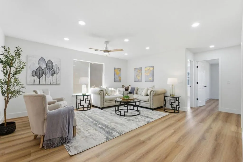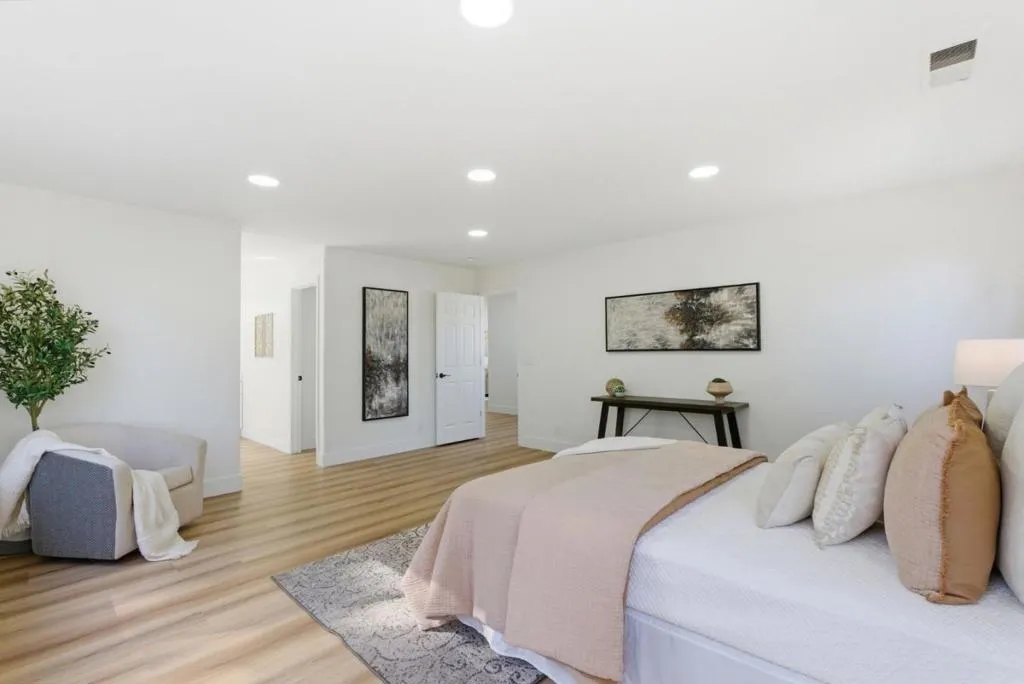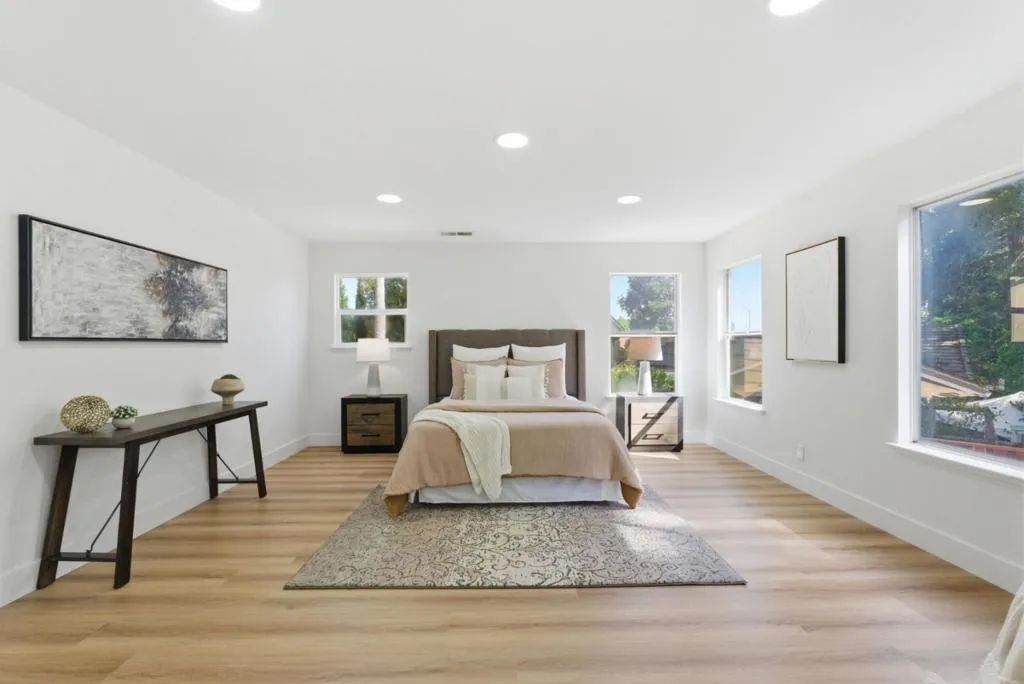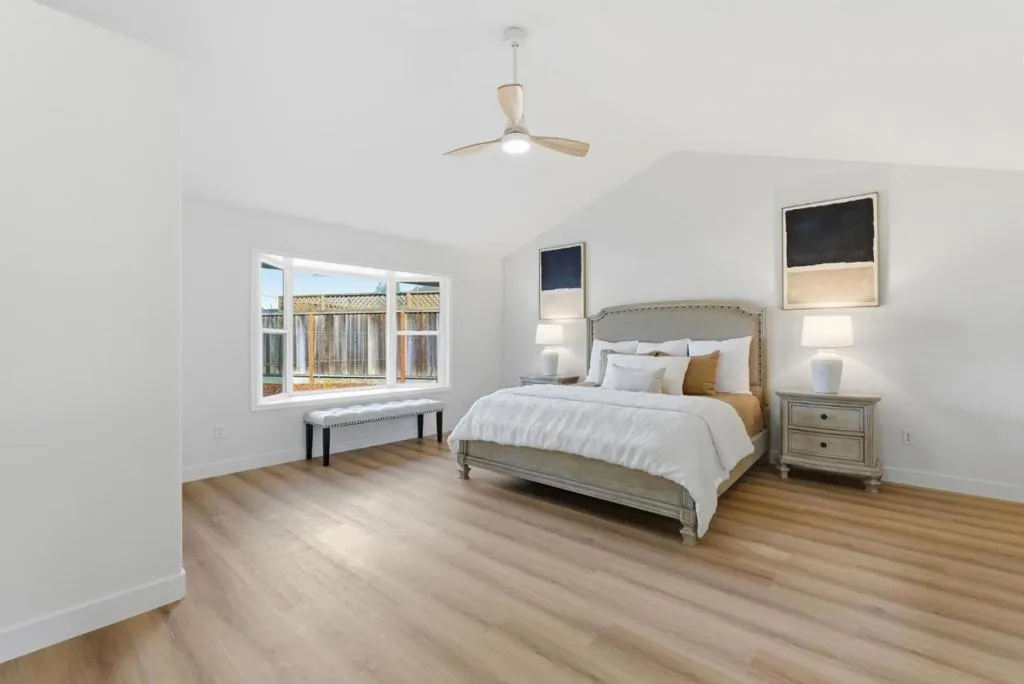 If you're looking for a truly spacious turn-key home with modern finishes, a flexible floorplan, and HUGE bedrooms you found it. Welcome to 9290 Briarberry Ln, a thoughtfully updated 5-bedroom home in Gilroy's popular Sunrise Park neighborhood. Improvements completed in 2026 include interior paint, flooring and baseboards throughout, ceiling fans, light fixtures and a sliding door, all coming together to create a comfortable vibe that you'll want to come home to. The kitchen features quartz counters with a new stove, an island, and an open layout to the dining room. Sprawling backyard with mature trees providing shade and privacy. Primary bathroom remodeled this year including tile shower, vanity with quartz counter, mirror and light fixture. Upstairs you'll find the primary bedroom and three additional bedrooms, as well as a large family room. Downstairs, the spacious fifth bedroom has a cathedral ceiling and could be used as a bedroom, an office, a gym or other flex space. Central heat & AC, and indoor laundry. Conveniently located in an established neighborhood near parks, and in attendance area for Luigi Aprea Elementary and Christopher High (buyer to verify). Close to Gilroy Gardens, local wineries, shopping, dining, and Gilroy Outlets. Seller financing available.