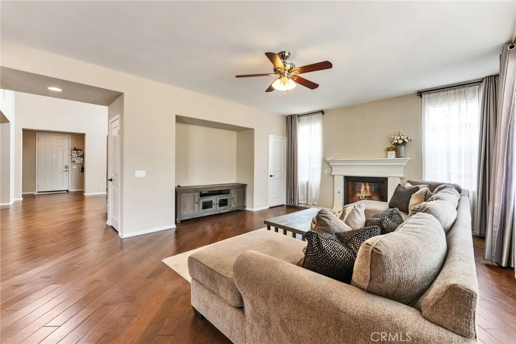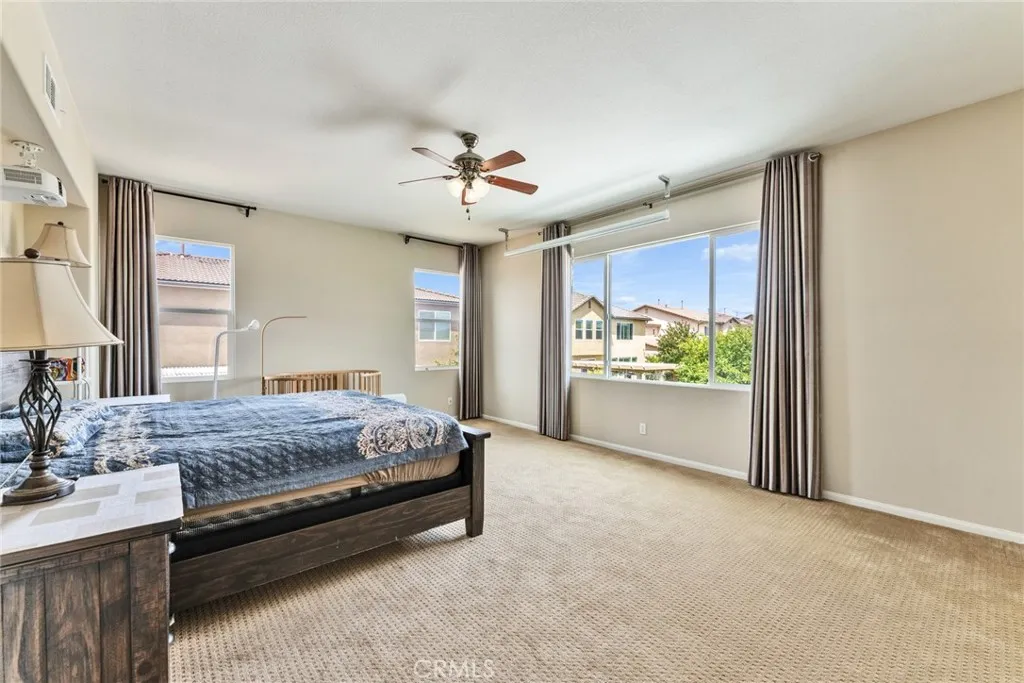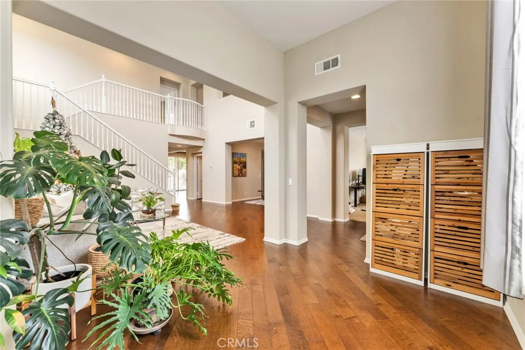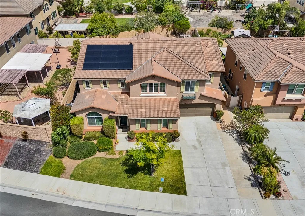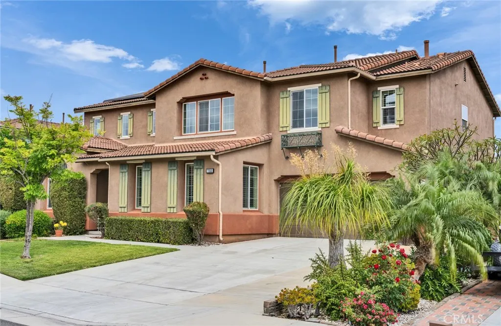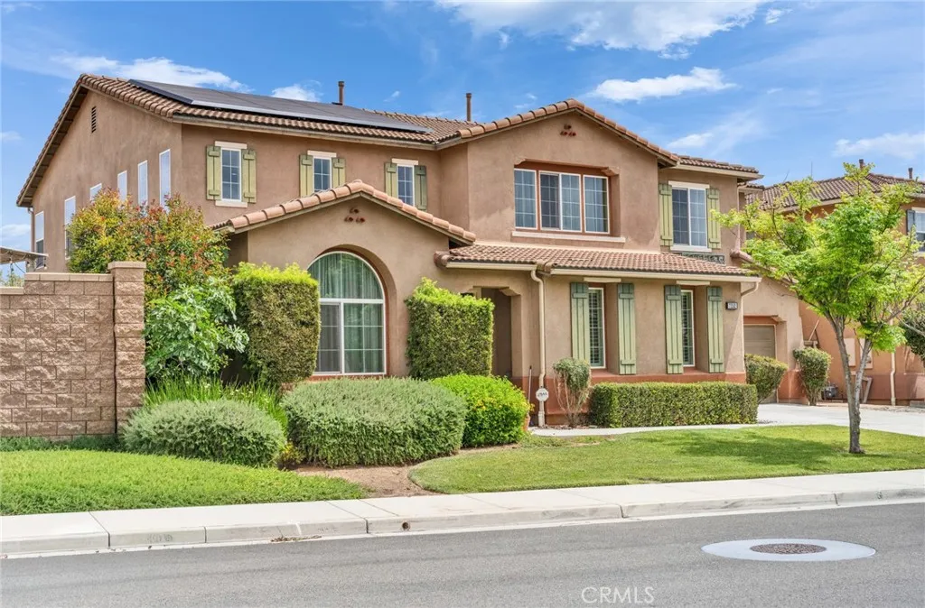 Located in a highly desirable community with NO HOA, this home offers a private backyard with no homes directly behind. The property features 4 bedrooms, 3.5 bathrooms, a main-floor office (easily convertible to a 5th bedroom), and an upstairs loft, providing flexible living space on a large lot. The formal living room showcases soaring ceilings, creating an open and airy atmosphere. The spacious open-concept kitchen includes a large center island and abundant cabinetry. The kitchen and bathrooms have been tastefully upgraded, and the first floor is finished with hardwood flooring throughout. Major system updates include central A/C, water pressure regulator, water heater, and all faucets (2025). The home is equipped with an energy-efficient 14-panel Tesla solar system and an EV charger in the garage. The front and backyard are designed for easy maintenance and feature an aluminum patio cover and a variety of fruit trees, including grapevines, grapefruit, fig, plum, apple, apricot, and orange. Conveniently located within walking distance to Albertsons, Starbucks, and Chase, and approximately 15 minutes to 99 Ranch Market and Costco, with easy access to the I-60 and I-15 freeways. Located in a top-rated school area including Ronald Reagan Elementary, Ramirez Intermediate, and Roosevelt High School. Don’t miss it and schedule a showing.