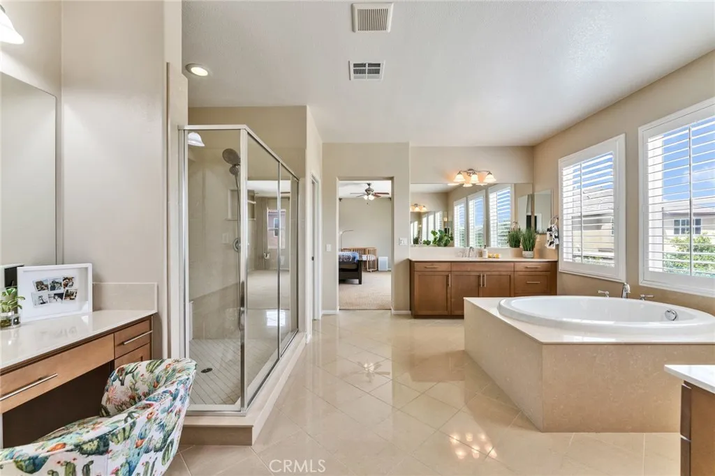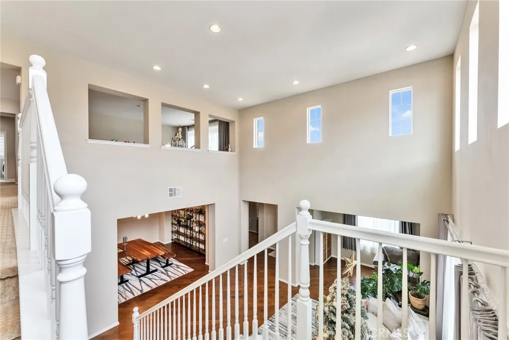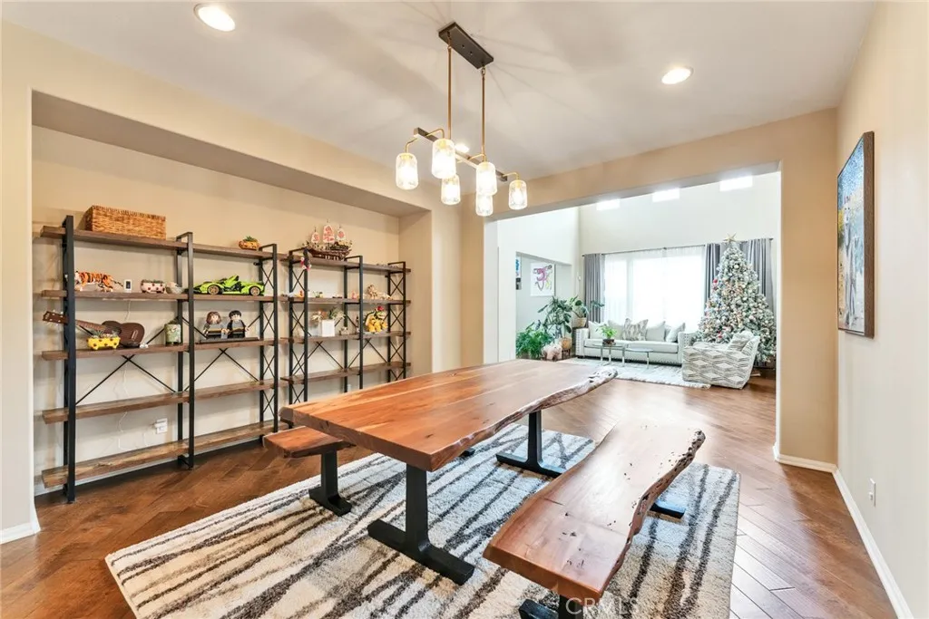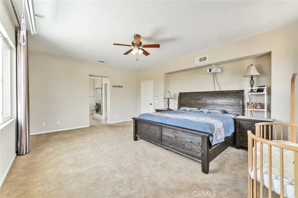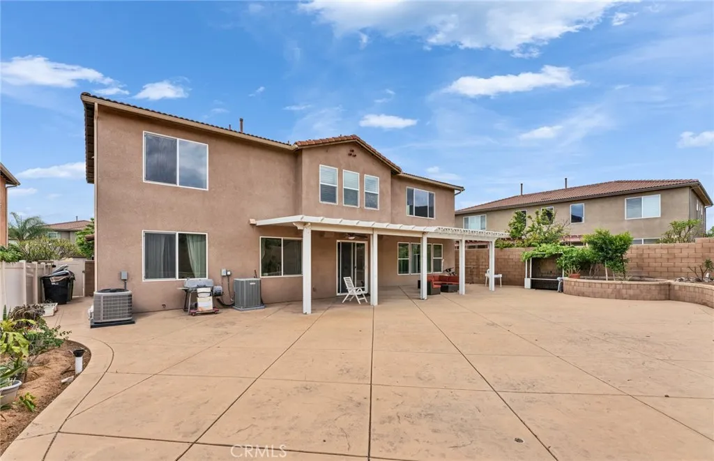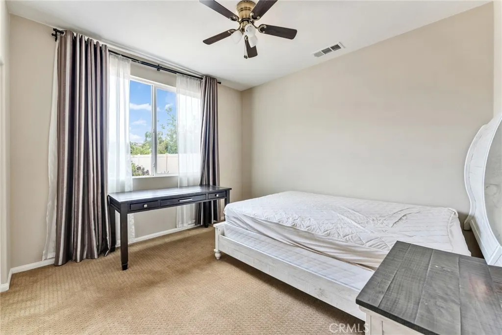 Located in a highly desirable community with NO HOA, this home offers a private backyard with no homes directly behind. The property features 4 bedrooms, 3.5 bathrooms, a main-floor office (easily convertible to a 5th bedroom), and an upstairs loft, providing flexible living space on a large lot. The formal living room showcases soaring ceilings, creating an open and airy atmosphere. The spacious open-concept kitchen includes a large center island and abundant cabinetry. The kitchen and bathrooms have been tastefully upgraded, and the first floor is finished with hardwood flooring throughout. Major system updates include central A/C, water pressure regulator, water heater, and all faucets (2025). The home is equipped with an energy-efficient 14-panel Tesla solar system and an EV charger in the garage. The front and backyard are designed for easy maintenance and feature an aluminum patio cover and a variety of fruit trees, including grapevines, grapefruit, fig, plum, apple, apricot, and orange. Conveniently located within walking distance to Albertsons, Starbucks, and Chase, and approximately 15 minutes to 99 Ranch Market and Costco, with easy access to the I-60 and I-15 freeways. Located in a top-rated school area including Ronald Reagan Elementary, Ramirez Intermediate, and Roosevelt High School. Don’t miss it and schedule a showing.