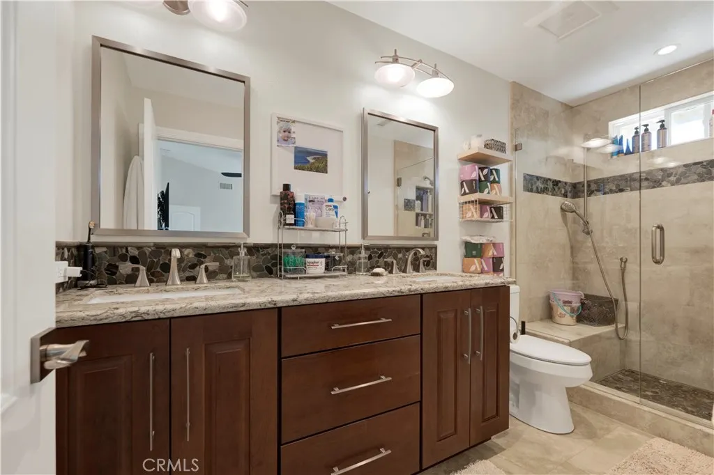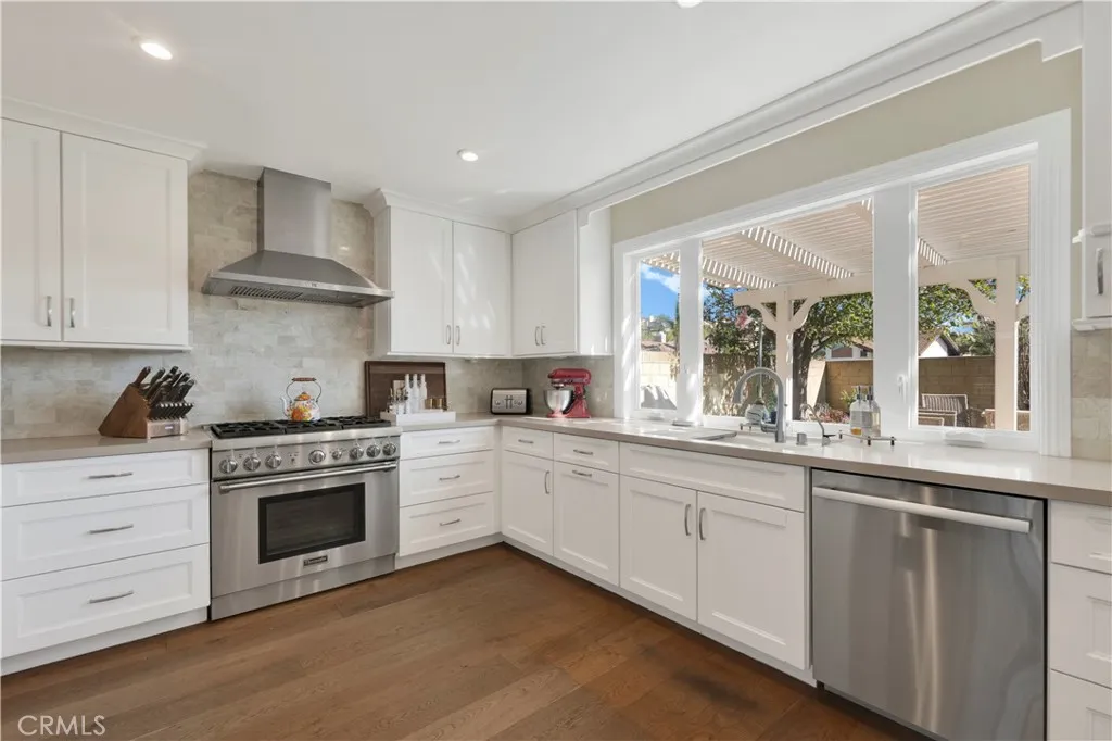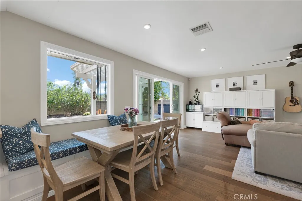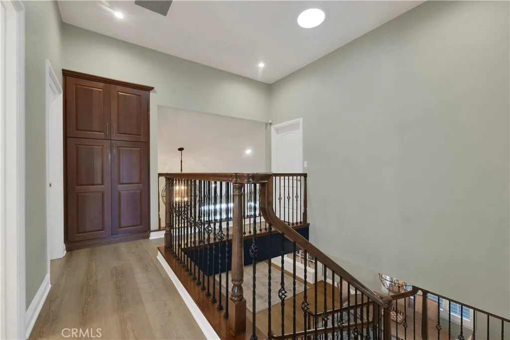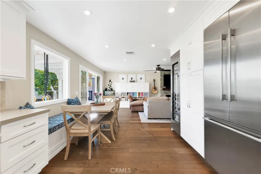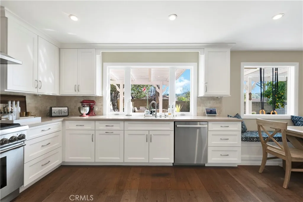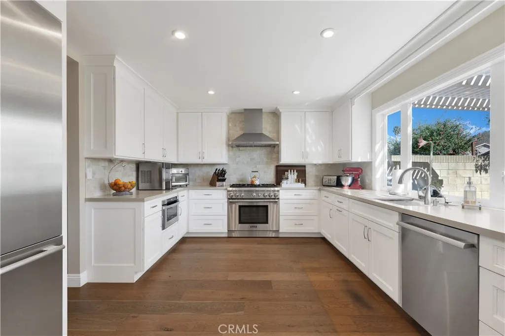 Welcome to ONE OF A KIND home located in a quiet and desirable Moorpark neighborhood! Privately positioned at the end of a quiet cul-de-sac, this beautifully upgraded residence offers a rare blend of modern design, quality finishes, and a peaceful setting. Set on a level lot with total privacy, the home is filled with natural light and thoughtfully designed for both comfort and style. Incredible curb appeal enhanced by the expansive, oversized driveway finished in interlocking stone pavers in a soft, neutral palette. Inside, you’ll find a bright, open layout enhanced by luxury vinyl flooring throughout most of the home, creating a cohesive and contemporary feel. Newer dual-pane windows with custom casings bring in abundant natural light while improving energy efficiency and adding a refined architectural touch. An upgraded wrought iron staircase serves as a striking focal point, complemented by upgraded light fixtures and recessed lighting throughout, elevating the home’s overall aesthetic. At the center of the home, the gorgeously remodeled kitchen showcases sleek quartz countertops with a full subway tile backsplash, custom cabinetry with a built-in bench, high end stainless steel appliances including two built-in refrigerators and a professional range. The kitchen flows seamlessly into the main living and dining areas, creating an ideal setting for both everyday living and entertaining. The spacious floor plan offers four well-appointed bedrooms and three bathrooms, providing flexibility for a variety of lifestyles. All bathrooms have been fully remodeled, featuring updated vanities, modern lighting, and tasteful, high-quality finishes that create a cohesive, spa-inspired feel throughout. Additional highlights include a whole-house fan, a spacious laundry room complete with sink, brand new washer & dryer, and an attached two-car garage for added convenience. Step outside to a private and professionally landscaped backyard featuring a large covered patio, designed for relaxation and entertaining, where you can enjoy the tranquil surroundings. The backyard also offers an oversized storage shed that can be used as an office or playhouse. The cul-de-sac location enhances the sense of privacy, making this home especially desirable. Located within the established Marlborough community, this home is just minutes from parks, shopping, dining, and top-rated schools, with convenient access to nearby freeways.