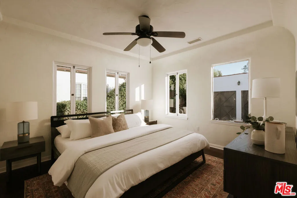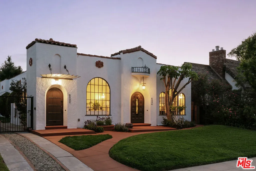 A Spanish Revival side-by-side duplex coming fully vacant in historic Carthay Circle. A balance of period elegance and modern luxury, each residence features expansive living rooms with cathedral-like cove ceilings, faux fireplaces, and step-up formal dining rooms that open through French doors to private patios. The two-bedroom floor plans have en-suite baths, chef-inspired kitchens, central air, and stacked laundry. The exterior features separate fenced-in backyards, mature fruit trees, and two garages. Centrally located near LACMA, The Grove, and the soon-to-open Purple Metro Rail Line through Beverly Hills. Offering various uses, this property presents a rare opportunity to owner-occupy, lease both units at market rate, or convert the structure into a single-family residence.