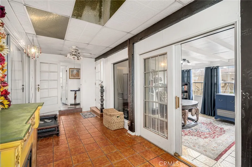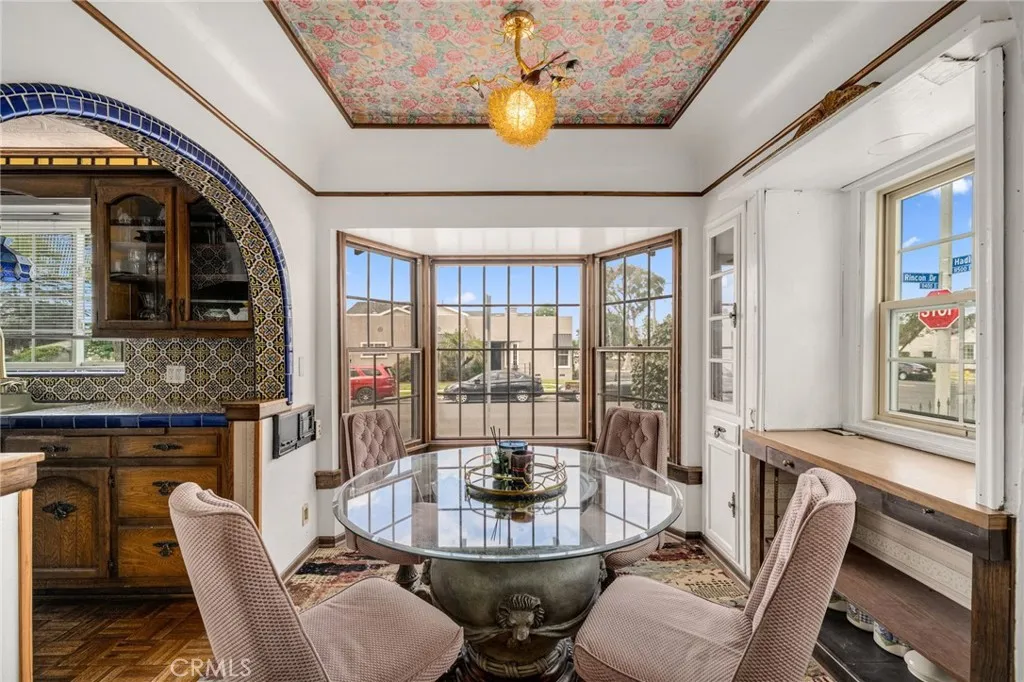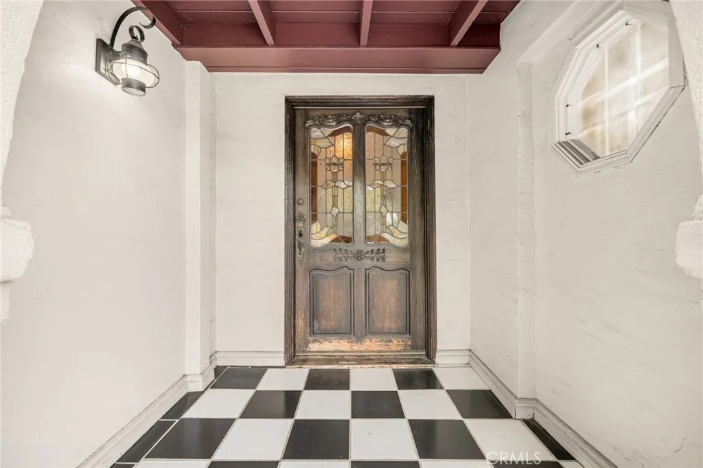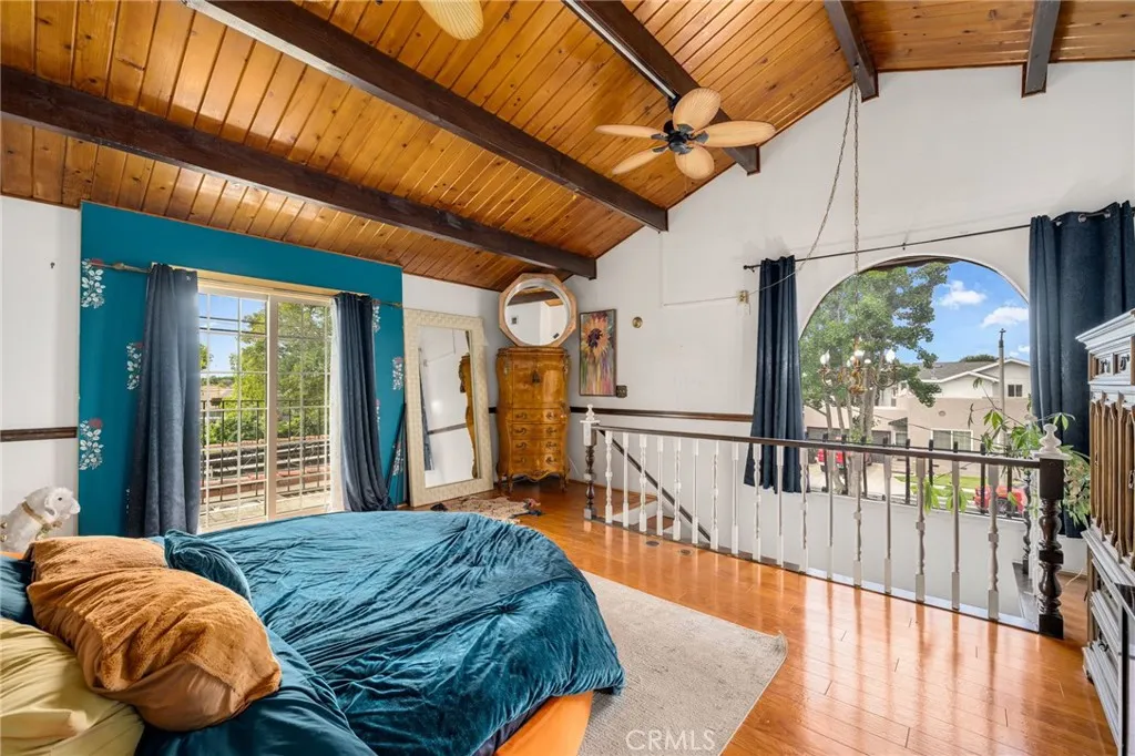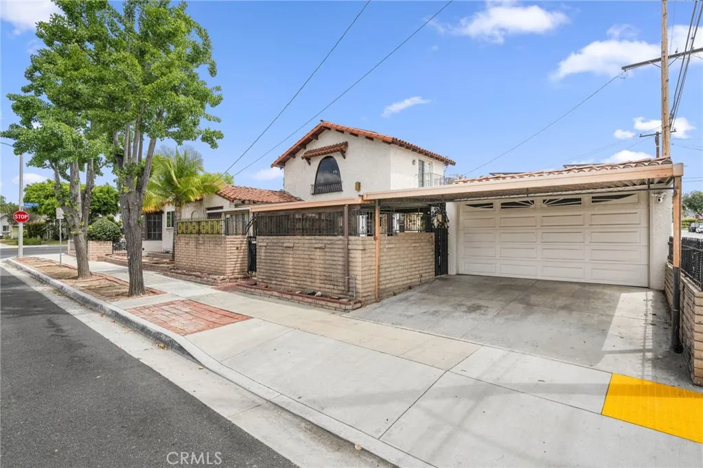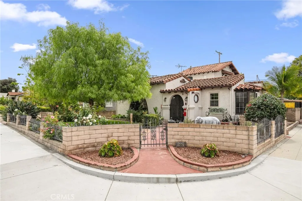 Striking 1936 Spanish-style home on a corner lot in the heart of West Whittier. Three bedrooms, two bathrooms, 2,040 square feet of character and space that modern builds simply cannot replicate. The upstairs primary suite is the showpiece: a large retreat with sweeping vaulted wood-planked ceilings, a generous walk-in closet, a private bathroom with a separate vanity area, and a balcony. The main level delivers the classic Spanish details buyers search this neighborhood for: arched doorways, a beautiful arched picture window that floods the formal living room with natural light, and a wood-burning fireplace. The galley kitchen features hand-laid Spanish tile and ample cabinetry. A formal dining room and separate breakfast room give real flexibility for daily living and entertaining. Two additional bedrooms, a full bath, a family room, and a dedicated home office round out the first floor. Updates within the last five years include a new roof, dual-pane windows, and central heating and air conditioning. The home features fully owned solar panels with no lease or transfer obligations, a meaningful reduction in monthly energy costs from day one. Wood flooring throughout. The 6,118 square foot corner lot provides four covered parking spaces between a detached two-car garage and a covered carport, plus a detached bonus room with its own bathroom and private entry from the rear alley, ideal for a home gym, studio, or guest quarters. Located minutes from the I-605, I-5, and CA-60 freeways with direct access to Downtown LA, Orange County, and the Inland Empire. Walking distance to Sorensen Park and Sorensen Library. Close to Pio Pico State Historic Park, Whittier Narrows Recreation Area, Uptown Whittier dining and shopping, and the Greenway Bike Trail along the San Gabriel River. Served by Whittier Union High School District. Nearby schools include Sorensen Elementary, Katherine Edwards Middle, and Whittier High School.
