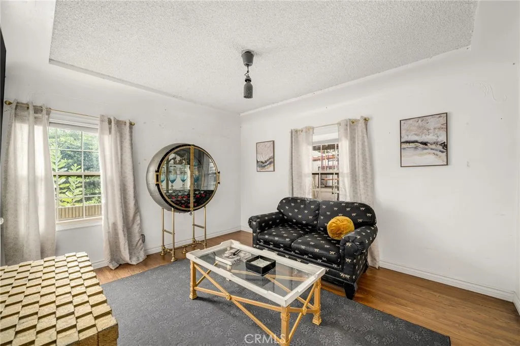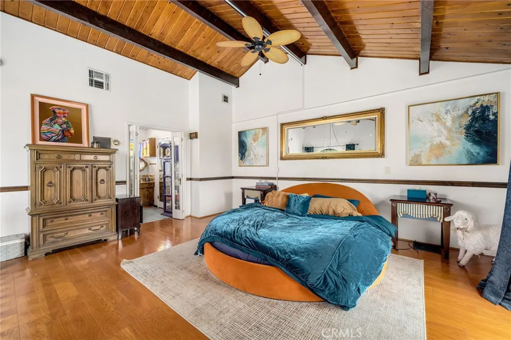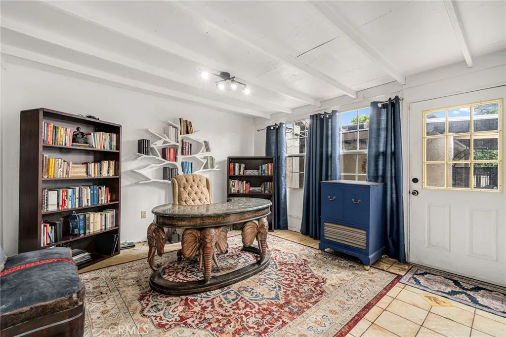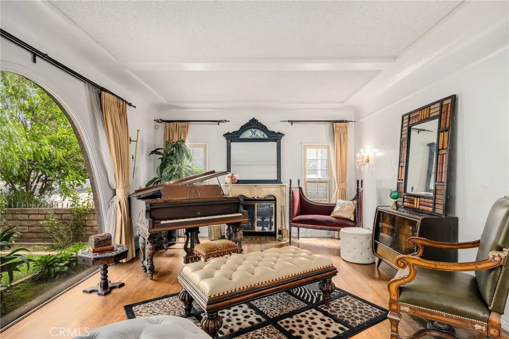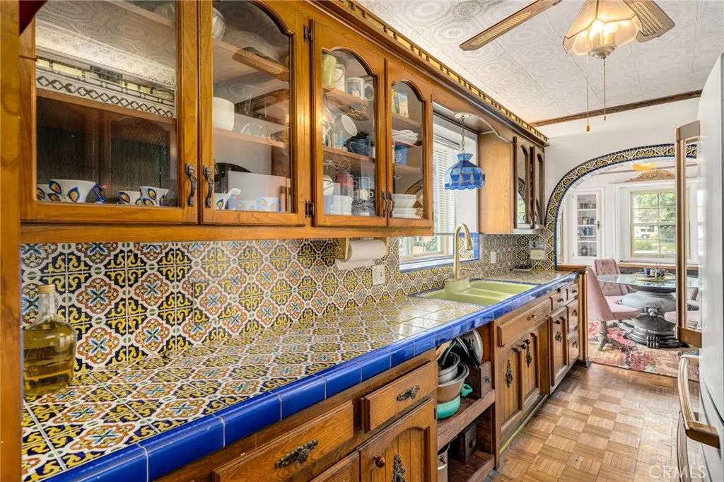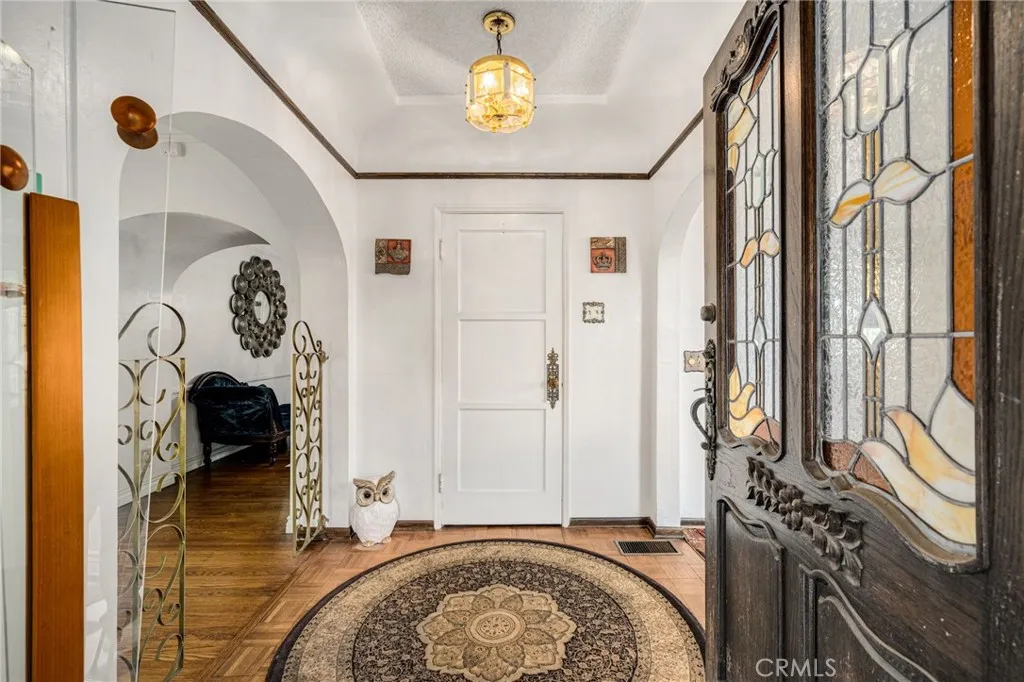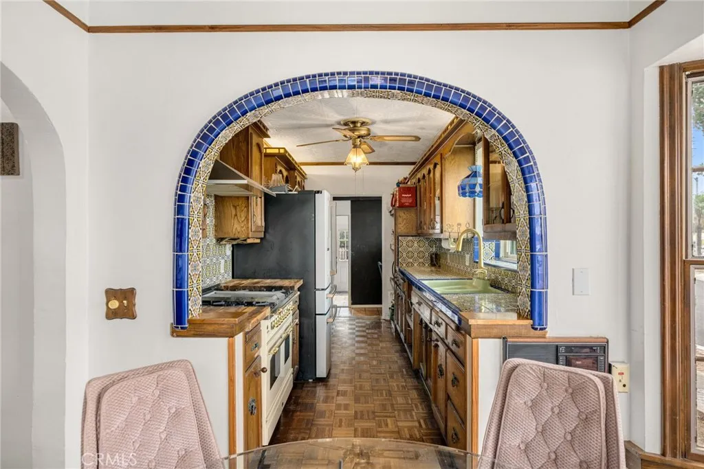 Striking 1936 Spanish-style home on a corner lot in the heart of West Whittier. Three bedrooms, two bathrooms, 2,040 square feet of character and space that modern builds simply cannot replicate. The upstairs primary suite is the showpiece: a large retreat with sweeping vaulted wood-planked ceilings, a generous walk-in closet, a private bathroom with a separate vanity area, and a balcony. The main level delivers the classic Spanish details buyers search this neighborhood for: arched doorways, a beautiful arched picture window that floods the formal living room with natural light, and a wood-burning fireplace. The galley kitchen features hand-laid Spanish tile and ample cabinetry. A formal dining room and separate breakfast room give real flexibility for daily living and entertaining. Two additional bedrooms, a full bath, a family room, and a dedicated home office round out the first floor. Updates within the last five years include a new roof, dual-pane windows, and central heating and air conditioning. The home features fully owned solar panels with no lease or transfer obligations, a meaningful reduction in monthly energy costs from day one. Wood flooring throughout. The 6,118 square foot corner lot provides four covered parking spaces between a detached two-car garage and a covered carport, plus a detached bonus room with its own bathroom and private entry from the rear alley, ideal for a home gym, studio, or guest quarters. Located minutes from the I-605, I-5, and CA-60 freeways with direct access to Downtown LA, Orange County, and the Inland Empire. Walking distance to Sorensen Park and Sorensen Library. Close to Pio Pico State Historic Park, Whittier Narrows Recreation Area, Uptown Whittier dining and shopping, and the Greenway Bike Trail along the San Gabriel River. Served by Whittier Union High School District. Nearby schools include Sorensen Elementary, Katherine Edwards Middle, and Whittier High School.