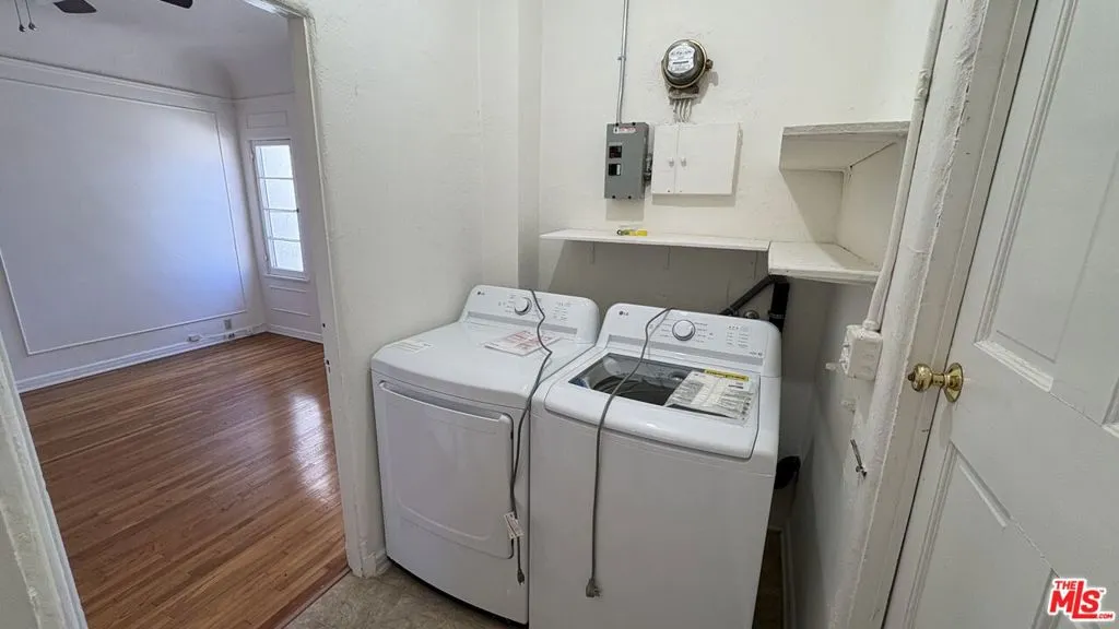 Step into this inviting and beautifully maintained top-floor 2 bed, 1 bath home at 1553 Durango Ave. Filled with natural light, this spacious residence features hardwood floors, a thoughtfully spaced kitchen with a cozy breakfast nook, and a formal dining room, perfect for entertaining. The kitchen is equipped with a new refrigerator, and the unit also includes a brand-new washer and dryer for added convenience. The bright living room, complete with a charming fireplace, creates a warm and welcoming atmosphere, while a wall-mounted AC and heating unit ensures year-round comfort. Custom built-ins throughout add both character and functionality, and the generous layout offers plenty of room to relax, work, and host guests with ease. Ideally situated near Canfield Elementary School, the location also offers convenient street parking. Water is included for added value, with tenants responsible for electricity and gas. This is a wonderful opportunity to enjoy comfort, space, and style in a well-located home.