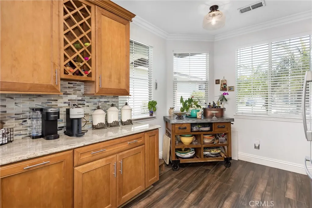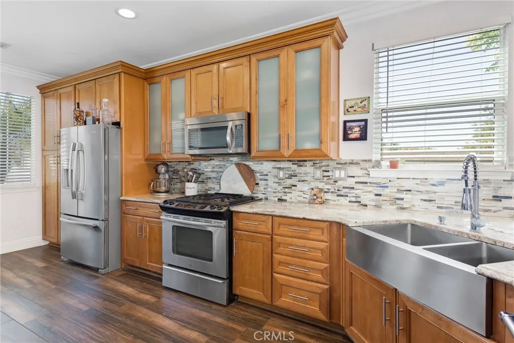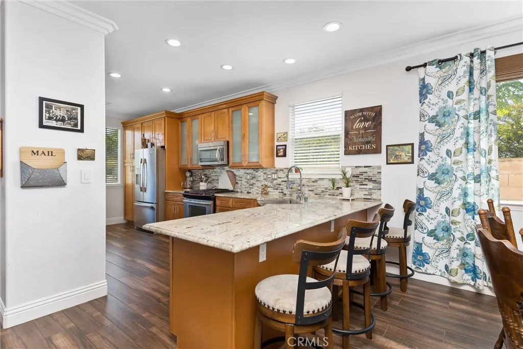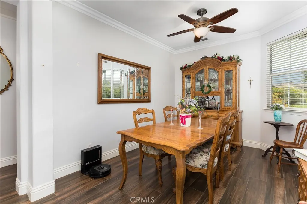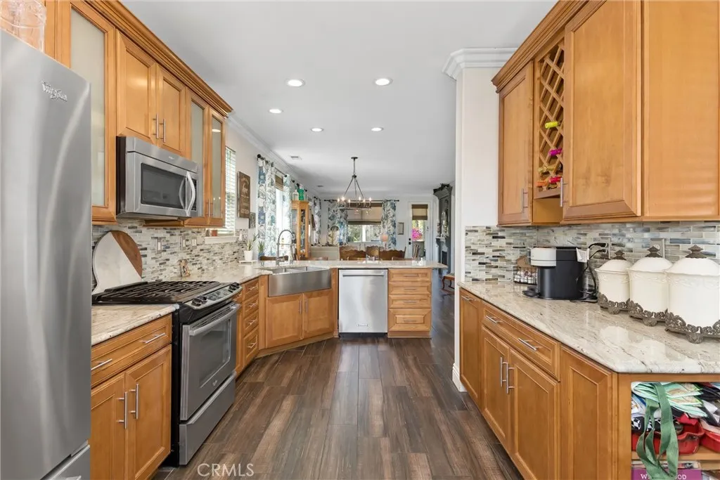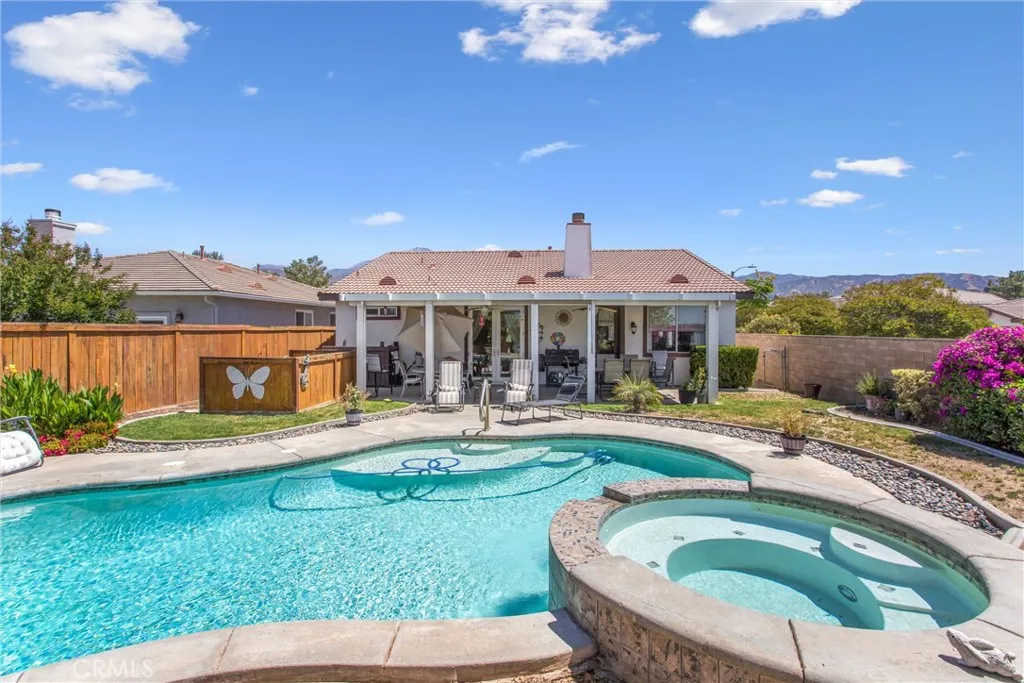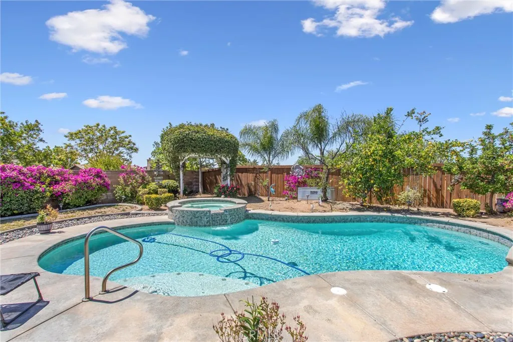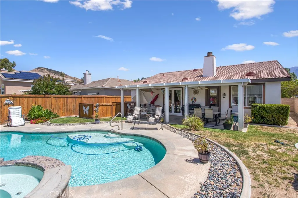 Step into this exceptional single story corner lot home in the highly desirable Chapman Heights community. The private backyard is an entertainer’s dream, featuring a sparkling pool and spa with easy access from multiple points, including french doors from the primary suite. Inside, you’ll find stunning wood look tile flooring throughout, creating a clean and modern feel. The inviting living room showcases custom built-in media cabinets and a beautifully upgraded fireplace, while the open-concept dining area flows seamlessly into the remodeled kitchen, perfect for everyday living and entertaining. The kitchen features soft-close cabinetry with pull-out shelving, a farmhouse stainless steel sink, stainless steel appliances, tile backsplash, granite countertops, and a built-in wine rack. A versatile den, currently used as a formal dining room, can easily serve as a home office or potential 4th bedroom. Both bathrooms have been upgraded, including a primary suite with a fully remodeled bathroom and a spacious walk in shower designed with accessibility in mind. Additional highlights include a large covered patio, newer HVAC, and an energy-efficient Wi-Fi-enabled pool pump. Located near shopping, golf, hiking trails, parks, and schools, this beautifully upgraded home offers the perfect blend of style, comfort, and convenience.