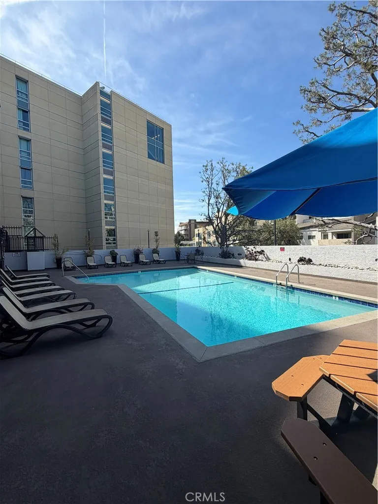 Great location with easy access to 405 and only 2 blocks from UCLA . Top floor corner unit with views of Westwood and the Santa Monica Mountains. This home features light bright and airy floor plan with spacious balcony. Master suite has its own private bath. Granite counter top kitchen with stainless appliances. Resort style living with amenities like billiard room with big screen TV, work out gym, pool and sun deck with barbecue area. Secured building with concierge. BRAND NEW CARPET INSTALLED! 2 parking spots in the gated parking structure.
