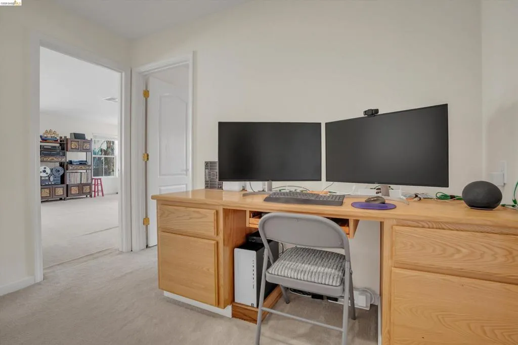 Welcome to 2068 Capalta. Offering over 3,200 square feet, this impeccably maintained residence reflects true pride of ownership throughout. From the moment you enter, soaring ceilings and an elegant staircase create a sense of volume and refinement. The interiors are pristine and exceptionally well cared for, featuring a warm, inviting kitchen with oak cabinetry and a living space anchored by a fireplace — blending comfort with timeless design. Designed for flexibility, the home offers a true three-bedroom layout plus an office, which could easily be converted if desired, along with a large loft that provides a generous second living area. Upstairs, the grand primary suite serves as a private retreat, complete with dual vanities and a soaking tub. Step outside to a beautifully landscaped, lush backyard designed for both relaxation and entertaining. Complete with a tandem garage and located in a quiet pocket near Contra Loma trails and the golf course, this turnkey home offers an exceptional combination of space, condition, and lifestyle.