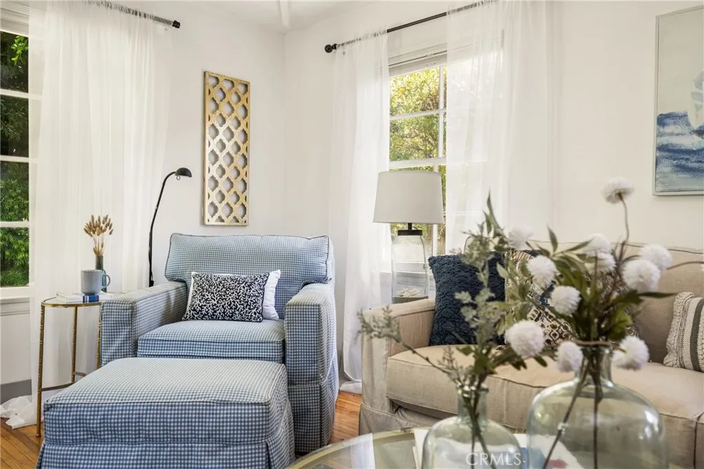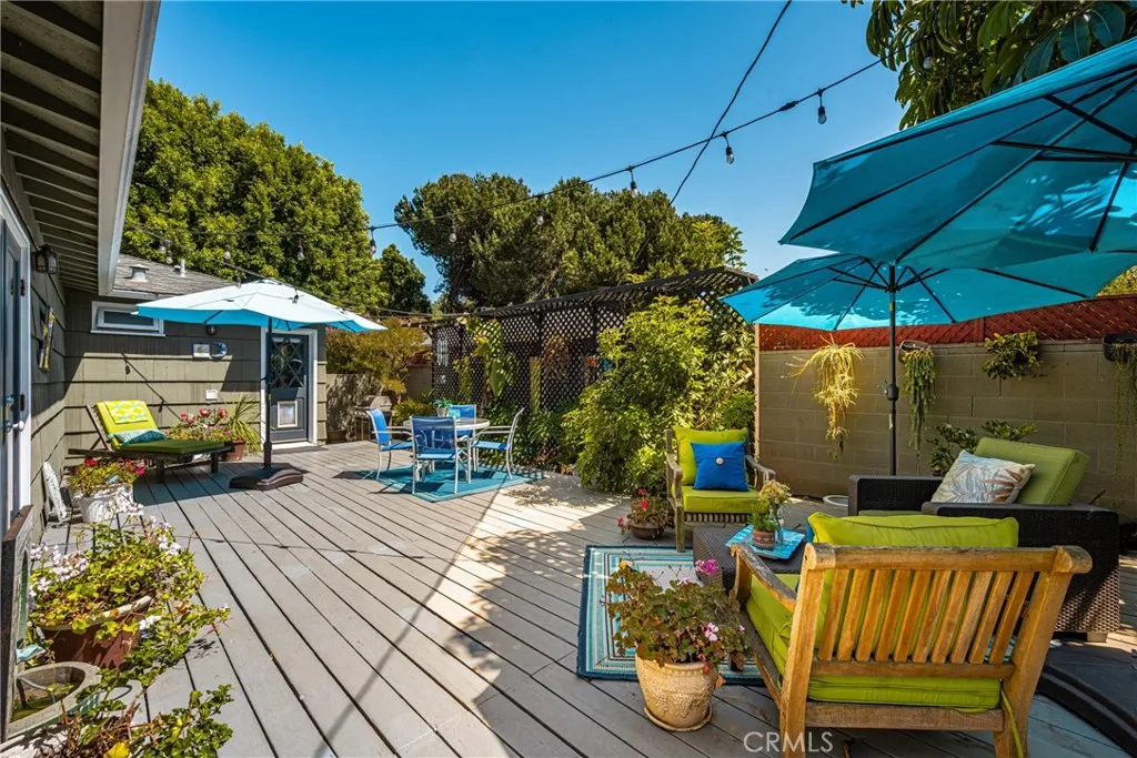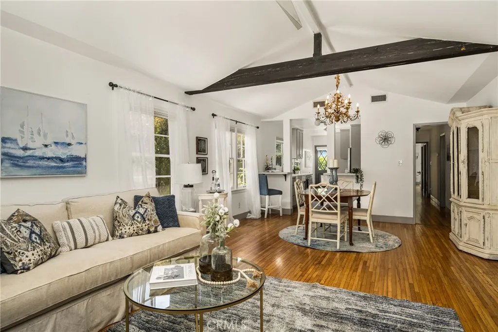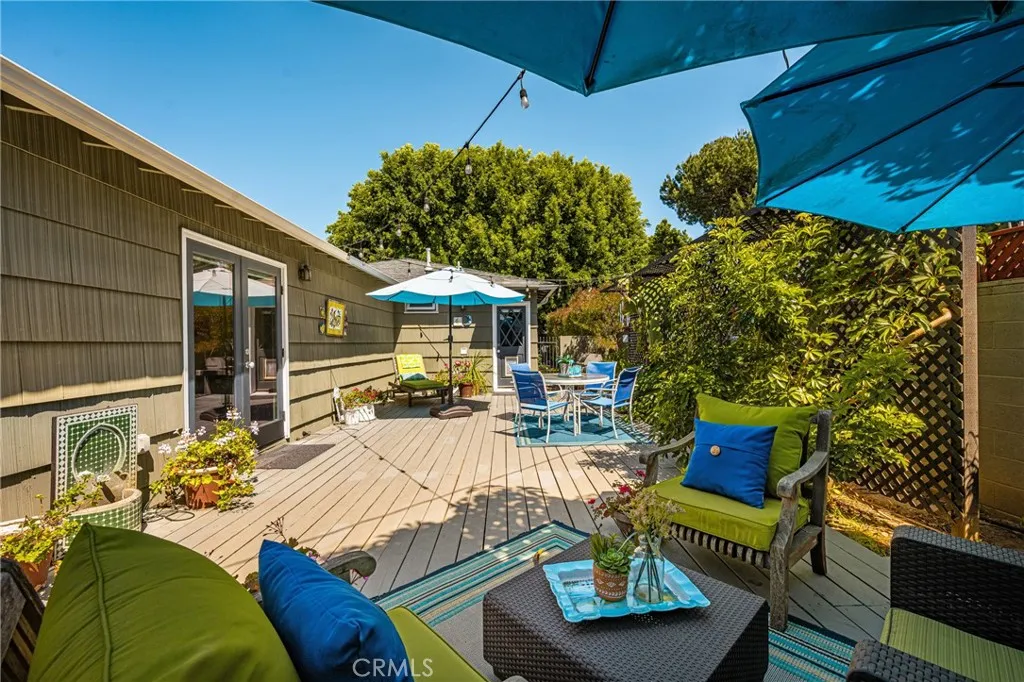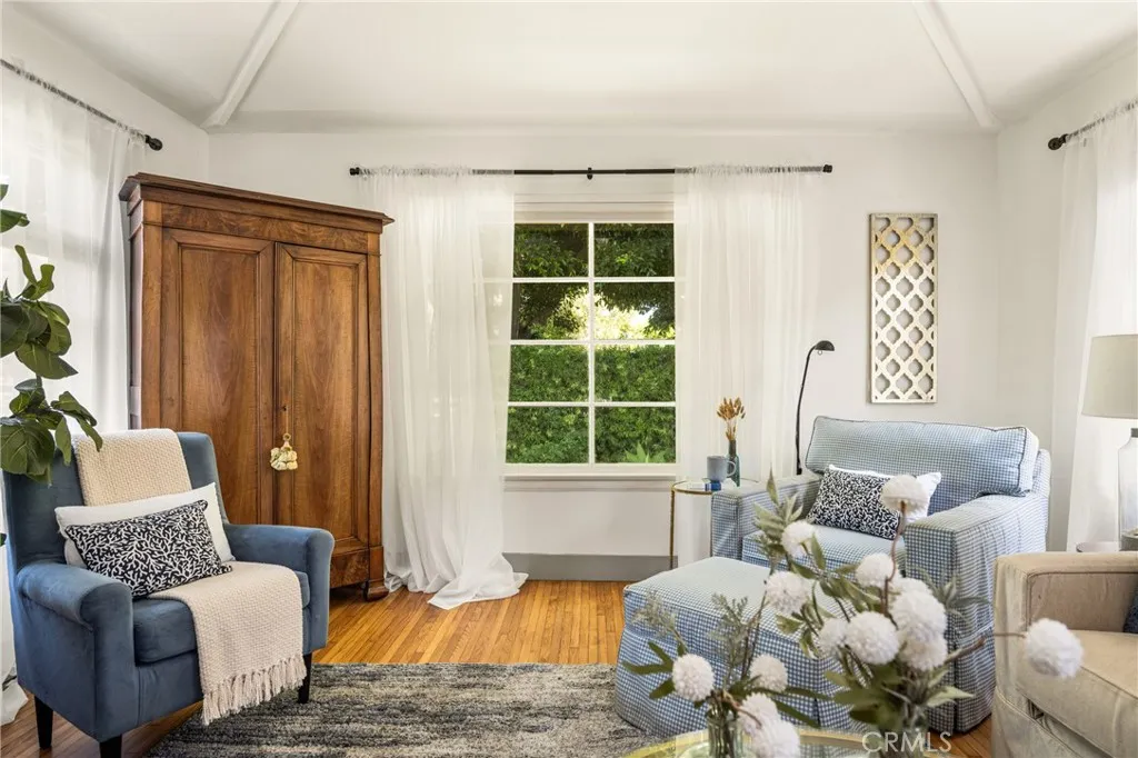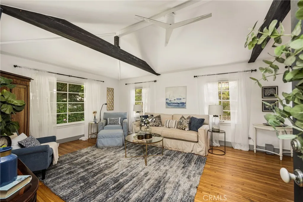 Tucked within Long Beach’s sought-after California Heights Historic District, this thoughtfully updated 1939 cottage blends timeless character with modern comfort. Framed by a lush privacy hedge, the home opens to a light-filled interior featuring vaulted ceilings, exposed beams, rich hardwood floors, and large windows that capture views of the surrounding greenery. The kitchen has been beautifully reimagined with custom cabinetry, Carrara marble countertops, a farmhouse sink, and seamless access to a spacious patio deck—perfect for effortless indoor-outdoor living and entertaining. The primary suite offers a peaceful escape with vaulted ceilings, a generous walk-in closet, and a private bath. French doors lead directly to the backyard, enhancing the connection to the outdoor space and bringing in natural light. Bathrooms are finished with classic marble surfaces and hex tile flooring, adding a refined, timeless touch. The backyard provides a versatile setting with room to unwind, host, or reimagine to suit your needs. The alley-access two-car garage includes an approximately 200 sq ft bonus space (not included in the home’s square footage), ideal for a home office, studio, gym, guest retreat, or potential ADU. Designed with a functional layout that lives larger than its footprint, the home offers a comfortable balance of open living and defined spaces. Set on a charming tree-lined street, just moments from local restaurants, coffee shops, breweries, parks, and major freeways, this home offers a rare combination of historic appeal, thoughtful updates, and future potential in one of Long Beach’s most beloved neighborhoods.