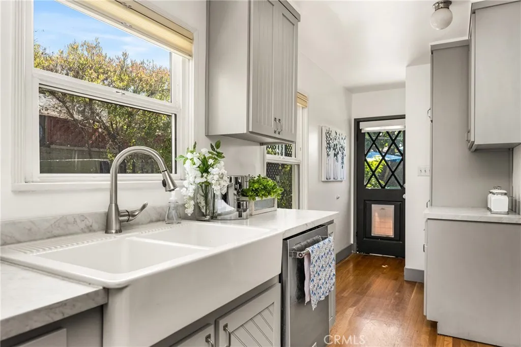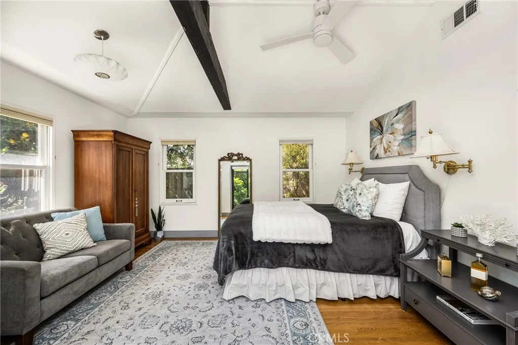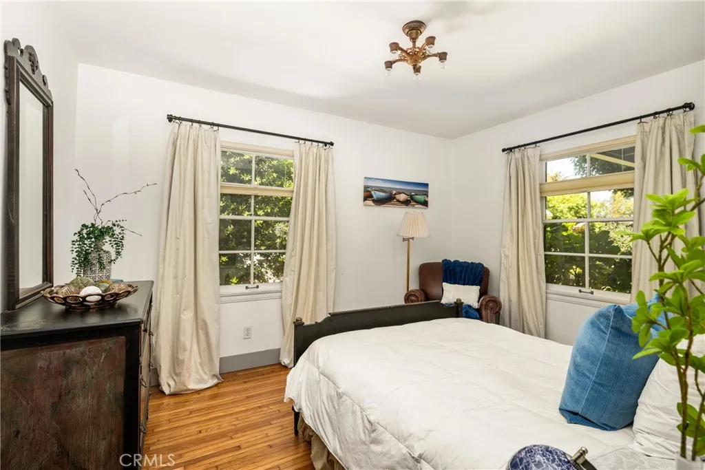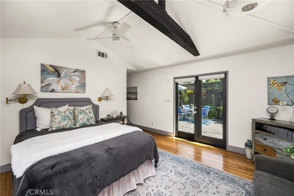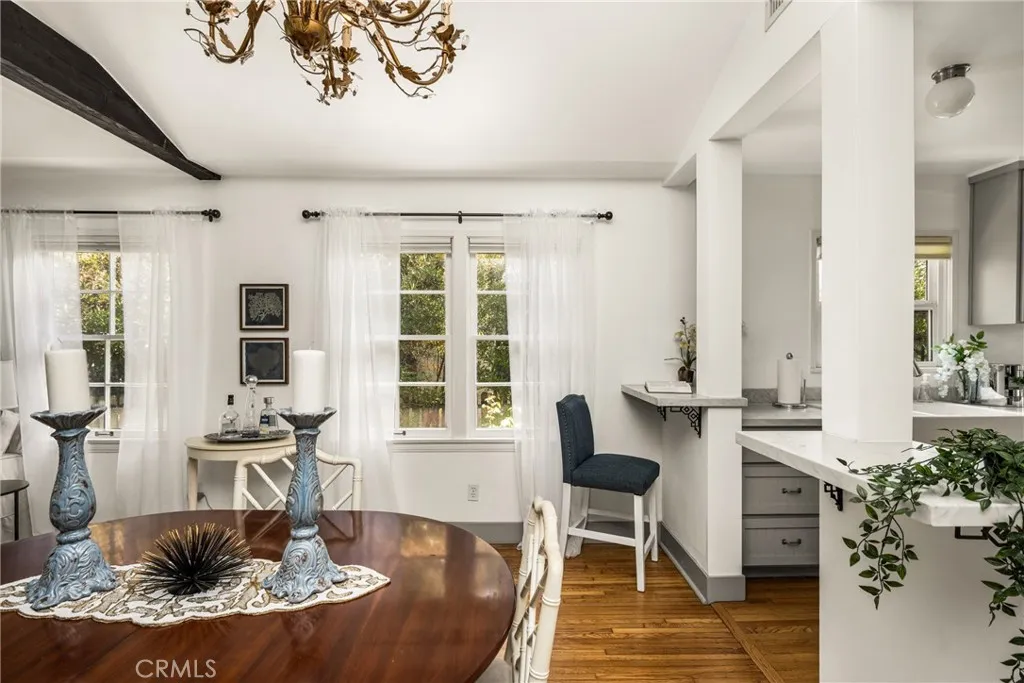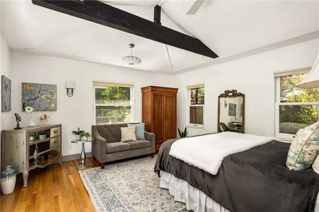 Tucked within Long Beach’s sought-after California Heights Historic District, this thoughtfully updated 1939 cottage blends timeless character with modern comfort. Framed by a lush privacy hedge, the home opens to a light-filled interior featuring vaulted ceilings, exposed beams, rich hardwood floors, and large windows that capture views of the surrounding greenery. The kitchen has been beautifully reimagined with custom cabinetry, Carrara marble countertops, a farmhouse sink, and seamless access to a spacious patio deck—perfect for effortless indoor-outdoor living and entertaining. The primary suite offers a peaceful escape with vaulted ceilings, a generous walk-in closet, and a private bath. French doors lead directly to the backyard, enhancing the connection to the outdoor space and bringing in natural light. Bathrooms are finished with classic marble surfaces and hex tile flooring, adding a refined, timeless touch. The backyard provides a versatile setting with room to unwind, host, or reimagine to suit your needs. The alley-access two-car garage includes an approximately 200 sq ft bonus space (not included in the home’s square footage), ideal for a home office, studio, gym, guest retreat, or potential ADU. Designed with a functional layout that lives larger than its footprint, the home offers a comfortable balance of open living and defined spaces. Set on a charming tree-lined street, just moments from local restaurants, coffee shops, breweries, parks, and major freeways, this home offers a rare combination of historic appeal, thoughtful updates, and future potential in one of Long Beach’s most beloved neighborhoods.