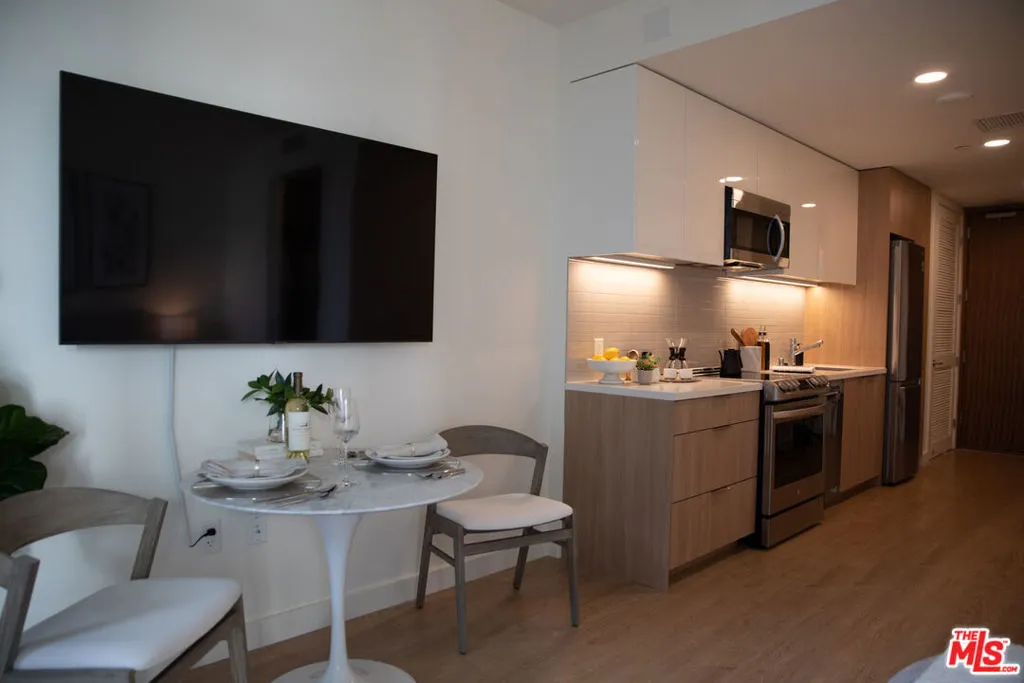 The Landmark Los Angeles is a dazzling 34 story residential tower offering sophisticated floor plans paired with unparalleled views and resort-inspired amenities. Residence #1703 is a Studio apartment floor plan with a spacious balcony. Centrally located on Wilshire Blvd. and tucked behind a beautifully landscaped one-acre park, LMLA offers a serene oasis of calm and an uncompromised living experience that is worlds apart from the hustle and bustle of the city. The LMLA lifestyle highlights the unique indoor/ outdoor lifestyle for which Los Angeles is known. Our signature floor-to-ceiling glass-walled apartment suites open onto expansive private balconies for spectacular ocean and mountain views accompanied by the cool ocean breeze. Get into the best shape of your life in the professional fitness center or swim laps in the 75'x25' heated pool. For the days when all you want to do is kick back and relax, you'll find yourself at home amidst plush resident lounges, our modern multimedia club room, outdoor fire pits and gourmet on-site cafe.Our stylish and modern apartment residences offer gourmet kitchens with custom Italian cabinetry, state-of-the-art energy efficient appliances, premium wood-style plank flooring, walk-in closets with custom shelving, in-unit washer and dryer, rolling window shades, and so much more.