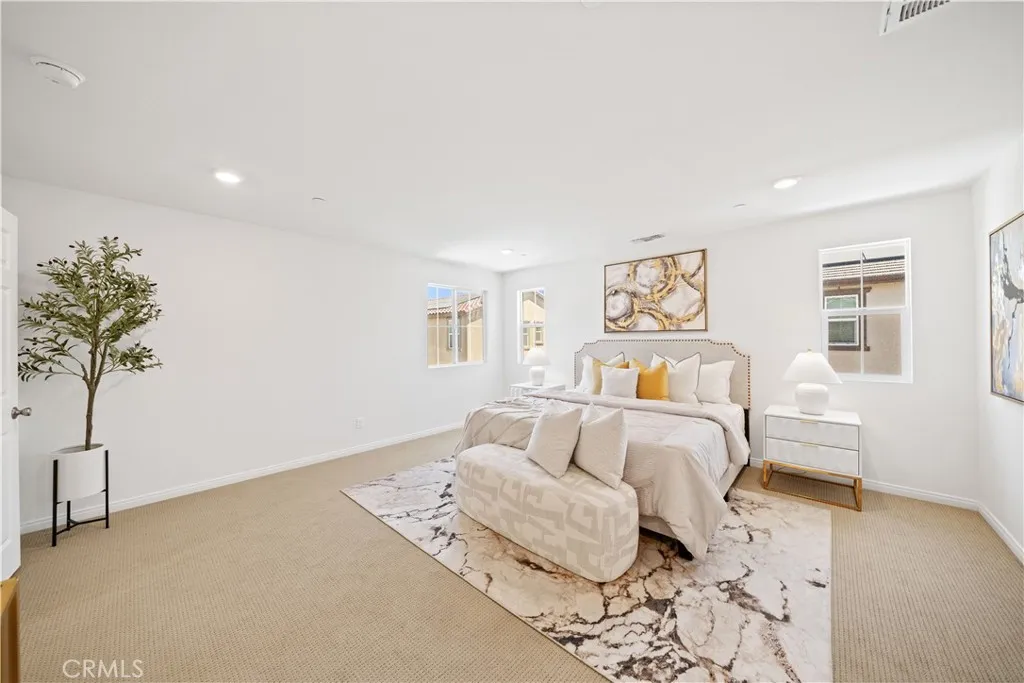 Experience modern living in this nearly new 2024-built KB Home located in the highly desirable Ontario Ranch community. Ideally situated near premier shopping and dining destinations such as Costco, 99 Ranch Market, and Cloverdale Marketplace, this home also offers easy access to major freeways (15, 60, and 10), Ontario International Airport, and Metrolink stations—making commuting and travel effortless. Thoughtfully designed with a spacious, open-concept layout, this well-planned home offers both functionality and style for today’s lifestyle. Featuring 4 bedrooms and 3 full bathrooms, including a convenient downstairs bedroom and bath, the home provides flexibility for guests or multi-generational living. Upstairs, a generous loft adds additional living space, perfect for a media room, office, or play area. The modern kitchen is the heart of the home, complete with quartz countertops, ample cabinetry, a walk-in pantry, and a seamless flow into the main living areas—ideal for both everyday living and entertaining. The primary suite offers a relaxing retreat with a double-sink vanity and well-appointed finishes. Additional highlights include upgraded waterproof laminate flooring on the main level, plush carpeting upstairs, and recessed, dimmable lighting throughout. Step outside to enjoy a larger-than-average private backyard featuring low-maintenance artificial turf, designed for water conservation and easy upkeep—perfect for outdoor enjoyment without the hassle of traditional landscaping. Energy-efficient features include a solar system with a fixed monthly cost and a tankless water heater for added convenience. Residents of the Sunset Ranch community enjoy exceptional amenities, including a resort-style pool and spa, large park with tot lot, dog park, pickleball courts, BBQ and picnic areas, and multiple pocket parks. With its bright, airy ambiance, smart layout, and prime location, this home presents an incredible opportunity to enjoy comfort, convenience, and community living in one of the area’s fastest-growing neighborhoods.