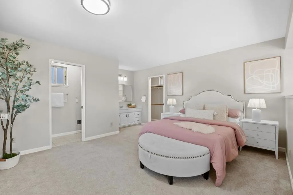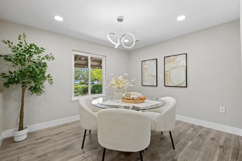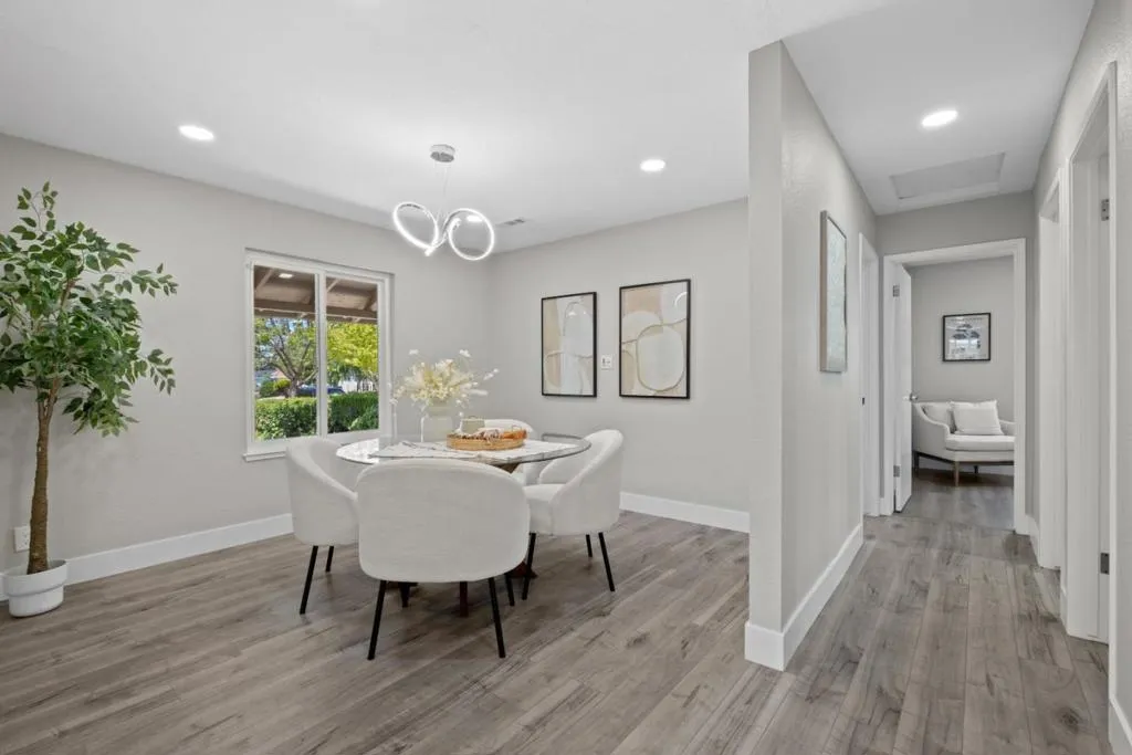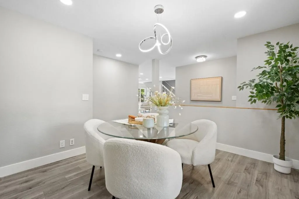 *Showcasing extensive upgrades, a versatile floor plan, and scenic outdoor spaces in a prime North San Jose location. *Step inside to a bright, contemporary interior with recessed lighting & a welcoming living room centered around a sleek electric fireplace. The beautifully remodeled kitchen showcases premium Bosch appliances, elegant quartz countertops, ample cabinetry, & generous prep space. Spacious dining room provides an ideal setting for hosting holiday meals or intimate dinners. *The home offers a highly desirable layout with a primary ensuite conveniently located on the main level. Upstairs, a spacious ensuite retreat offers an oversized closet, flexible office space, & direct access to a private patio with stunning sunset & mountain views. *Set on a generous lot, the serene front & backyard feature mature fruit trees, including lemon, guava, & pomegranate. *Prime location in the highly rated Vinci Park Elem (8/10 GreatSchools). Minutes to Costco, 99 Ranch Market, H Mart, Sprouts, Great Mall, Townsend Park, & San Jose Municipal Golf Course. Close to Berryessa BART with easy highway access & a short commute to NVIDIA, Google, Apple, & Supermicro. Disclaimer: County records show a 6,550 sq ft lot size, while Realist shows 6,000 sq ft. Buyer to verify lot size and all info.