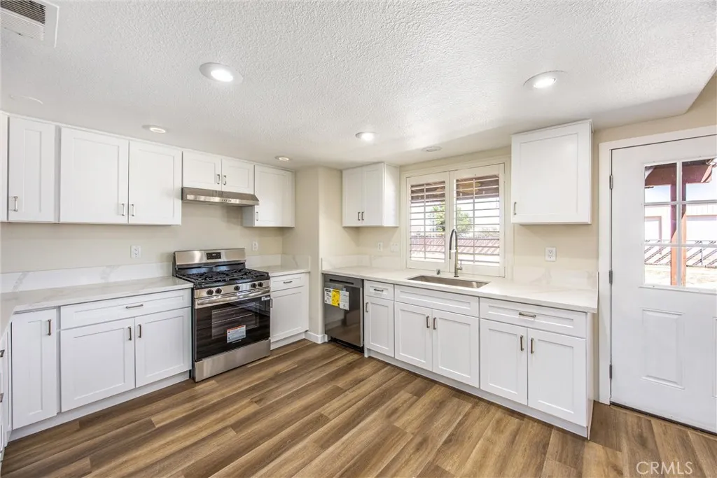 Set in the desirable community of Oak Hills, this beautifully remodeled home offers generous space and modern comfort throughout. Featuring five spacious bedrooms and two updated bathrooms, the layout is designed to accommodate both everyday living and effortless entertaining. The open-concept kitchen flows seamlessly into a formal dining area, creating an inviting space for gatherings. Recent upgrades include new interior paint, stylish vinyl plank flooring, and updated cabinetry with new countertops. The living room is enhanced by a charming potbelly stove, adding warmth and character. The primary suite offers a large bedroom, a well-appointed bathroom, and a walk-in closet for added convenience. Ideally located near schools, parks, shopping, dining, and freeway access, this home combines comfort with accessibility. A standout feature of the property is a 2,000 sq ft steel building in the backyard.