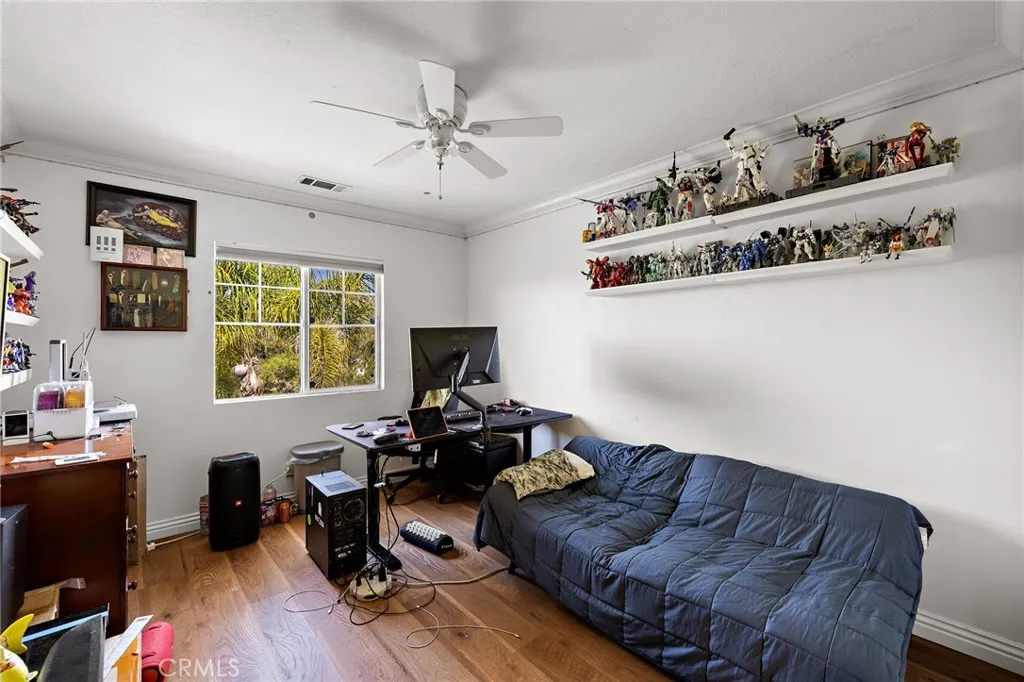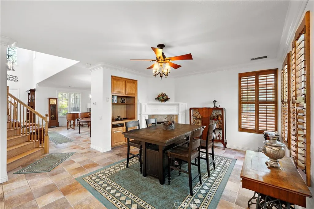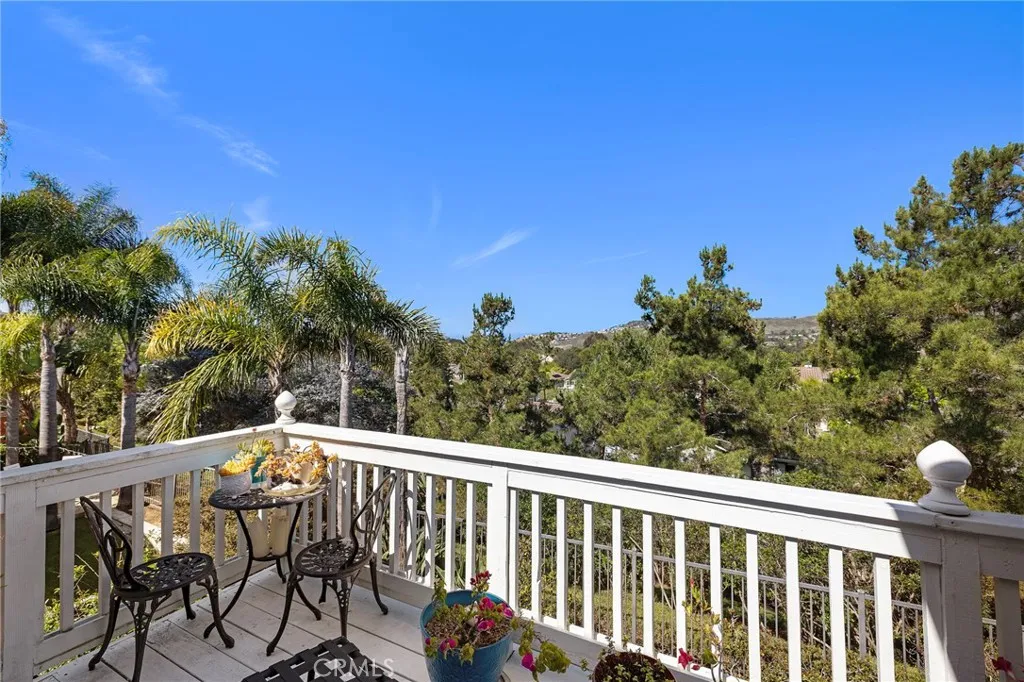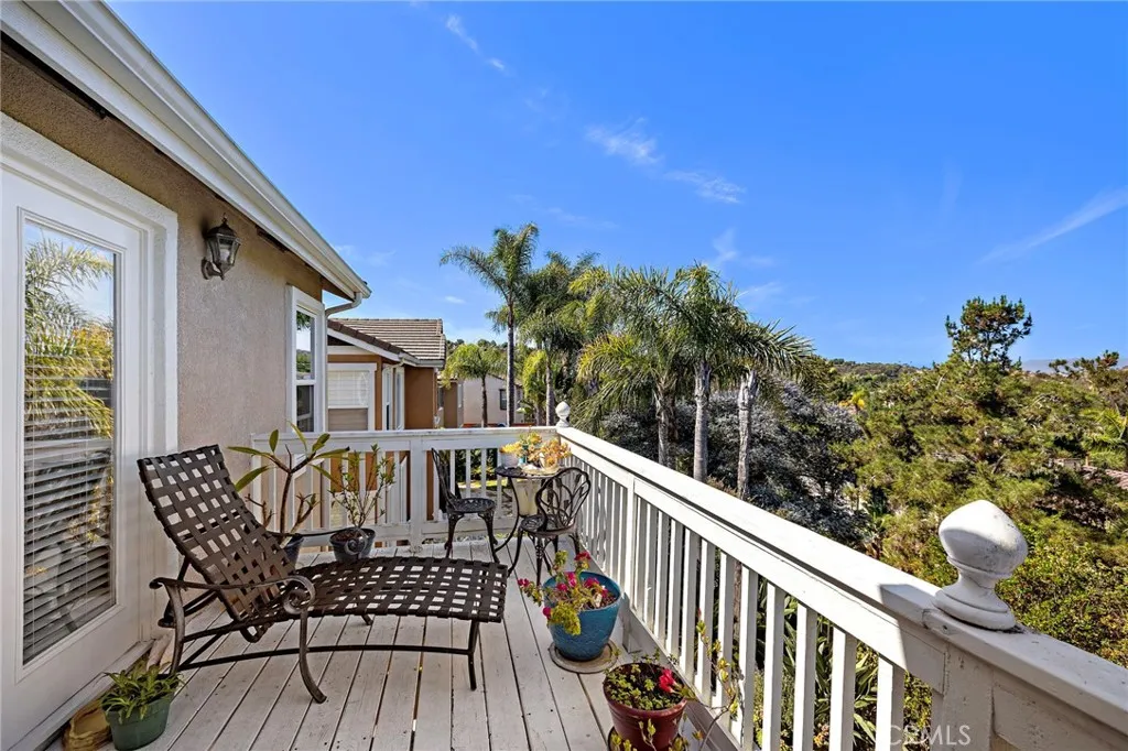 Discover breathtaking hillside views in the highly sought-after Ridgemore community! This beautifully maintained home offers 4 bedrooms and 2.5 bathrooms, with the 4th bedroom currently configured as a loft that can easily be converted into a bedroom if desired. Enjoy the convenience of a 3-car garage with a tandem space for extra parking and storage, plus close proximity to walk to the community amenities including a pool, two spas, playground, and clubhouse. The home features an open layout with the kitchen flowing into the family room, along with a separate living and dining area. The kitchen includes a center island with bar seating, stainless-steel appliances, and opens to the back patio. A unique double staircase leads to all bedrooms, the loft, and a built-in desk area with seating for two. Two private balconies enhance the upper level, including one off the primary suite with sweeping hillside views. The primary bedroom also features vaulted ceilings and a generous walk-in closet. Recent interior and exterior paint give the home a fresh, updated feel, complemented by high ceilings, crown molding, plantation shutters, an indoor laundry room, and a cozy fireplace in the family room. Step outside to a private backyard retreat. The spacious flagstone patio is surrounded by mature trees and lush landscaping, offering exceptional privacy and a peaceful, secluded setting. Ideally located near the community amenities, award-winning schools, hiking/biking trails, the Forester Ranch Community Park plus easy access to the beach and vibrant downtown San Clemente!