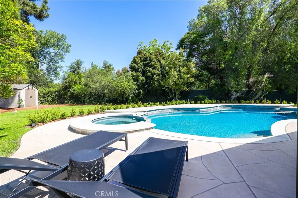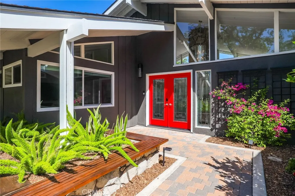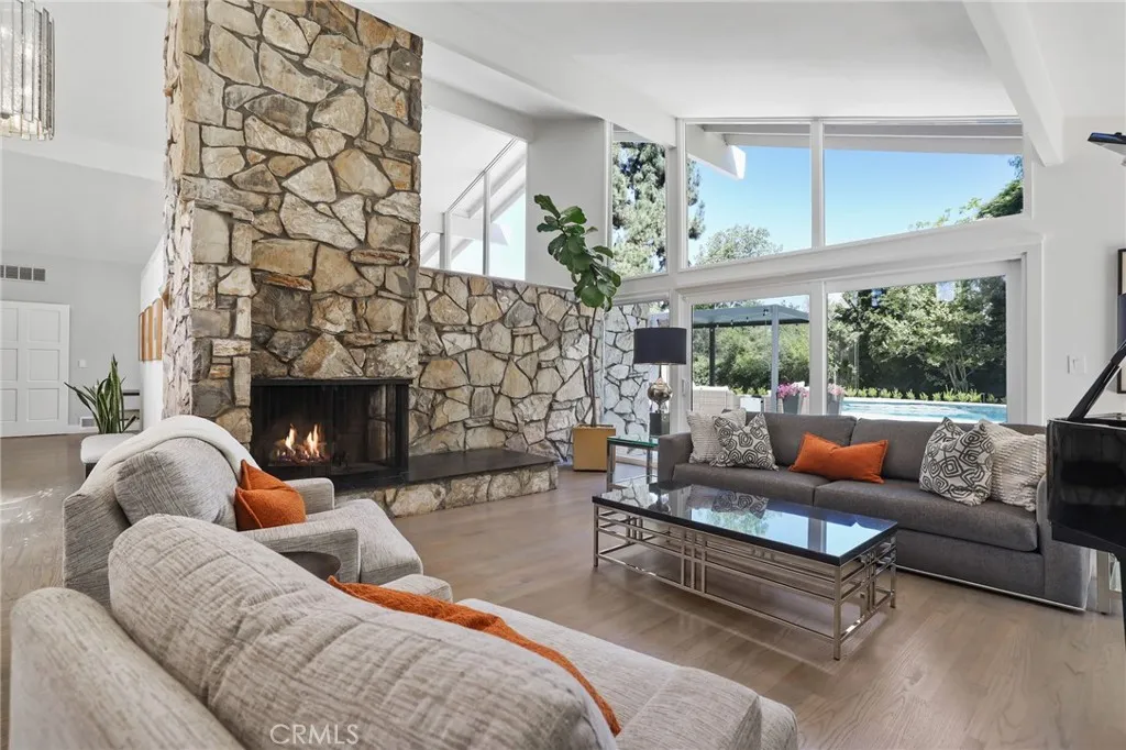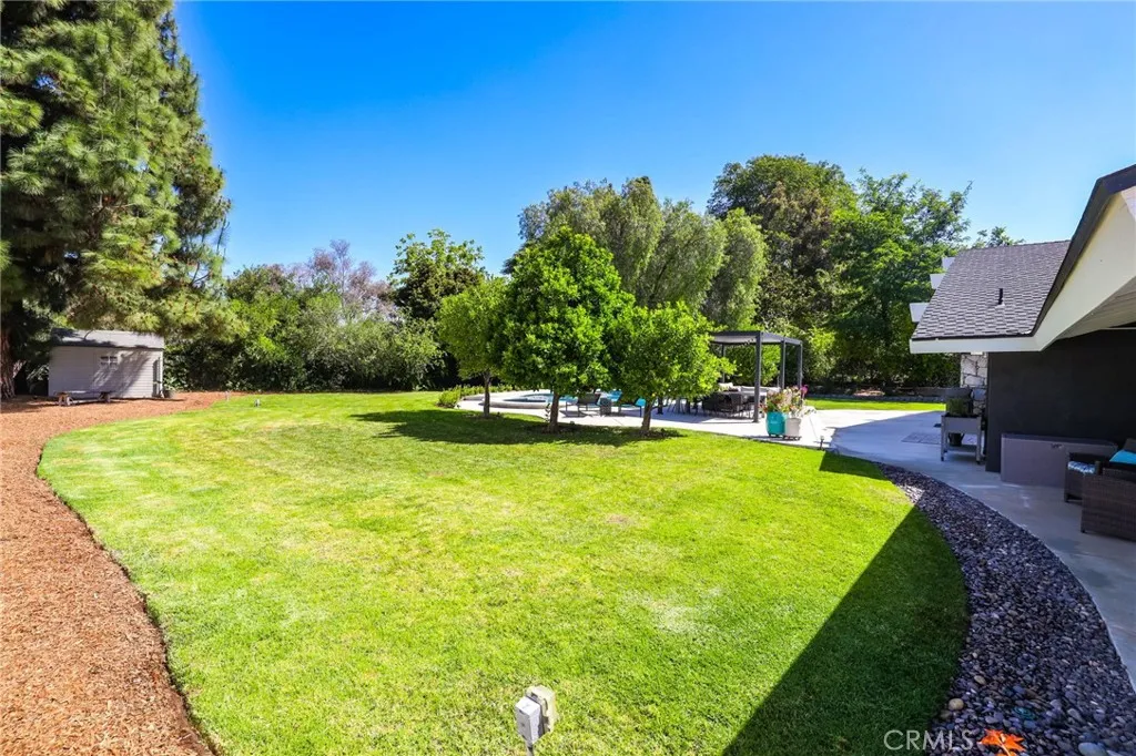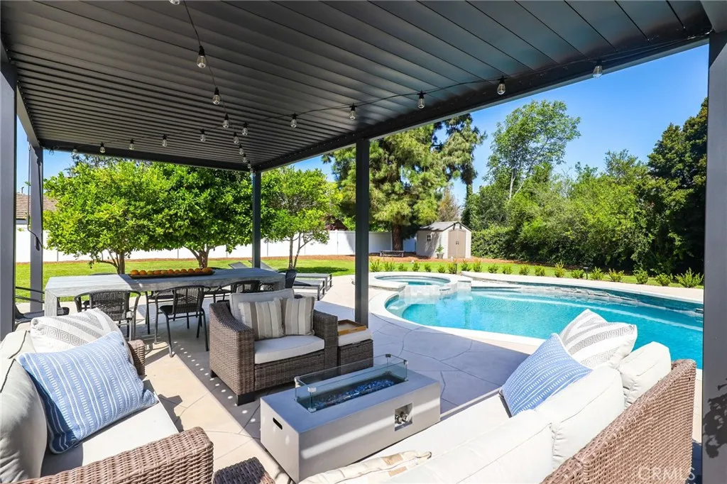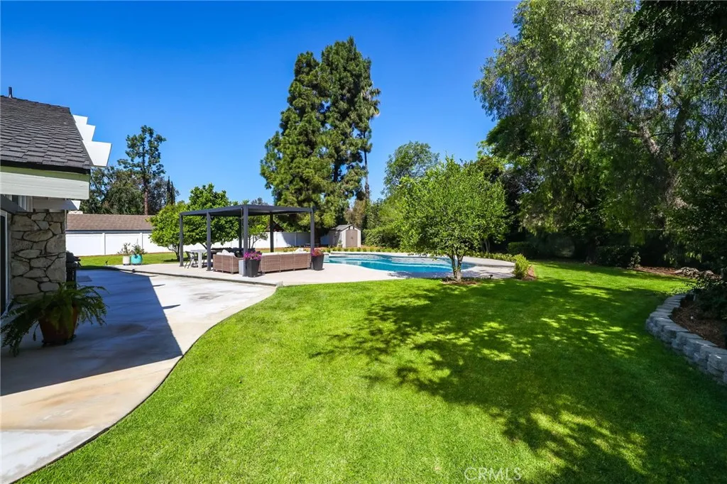 Rare opportunity to own updated custom home on Green Acre —one of Fullerton’s most iconic and storied streets—Thoughtfully renovated to blend architectural integrity with an effortless flow, the residence is a definitive expression of the California indoor-outdoor lifestyle. From the moment you step through the front door, the open-concept layout reveals expansive sightlines and soaring ceilings. Hardwood floors and a striking stone fireplace anchor the living space, while floor-to-ceiling glass naturally draws the eye toward the lush grounds, making the transition to the outdoors feel nearly invisible. The heart of the home is the redesigned chef’s kitchen, featuring sleek quartz countertops and a large walnut-topped island that serves as a natural hub for hosting. The kitchen flows seamlessly into the family room and dining areas, while bathrooms have been transformed into spa-like retreats with large walk-in showers, dual sinks, and clean, modern details. The nearly 3/4-acre lot offers a level of privacy and scale rarely found in the area. Designed for year-round living, the resort-style grounds feature a Pebble Tec pool and spa, multiple lounging areas, and a 20' x 10' pergola with a louvered roof for alfresco dining. The park-like yard includes mature Meyer lemon, lime, peach, and blood orange trees, among others. While the renovation is turnkey, the lot's sheer size offers a rare canvas for the future, with ample room to expand the footprint, add a detached ADU, and maybe even a sports court. Located within the prestigious Laguna Road Elementary, Parks Junior High, and Sunny Hills High School districts.