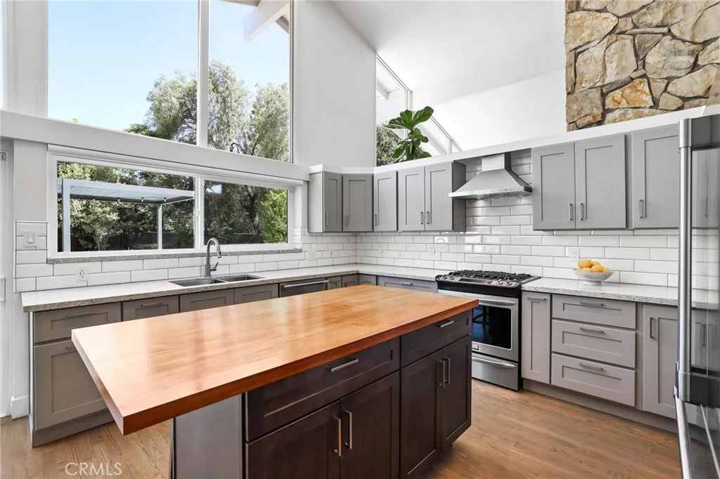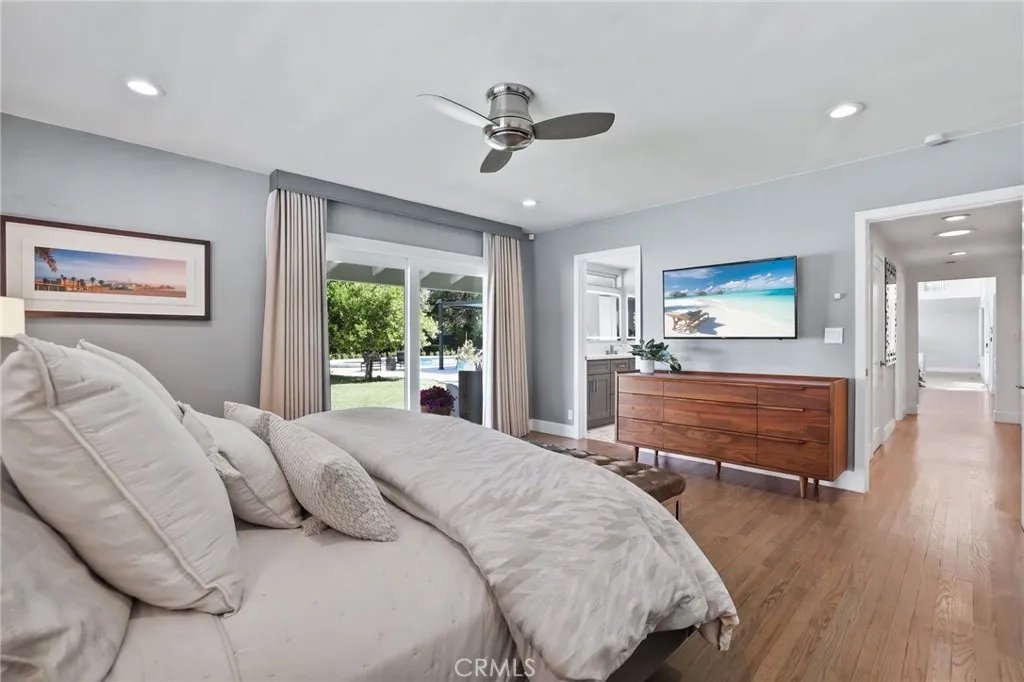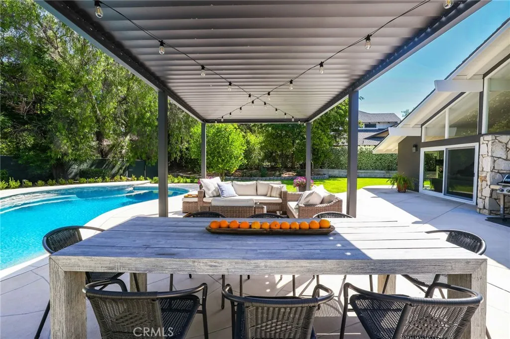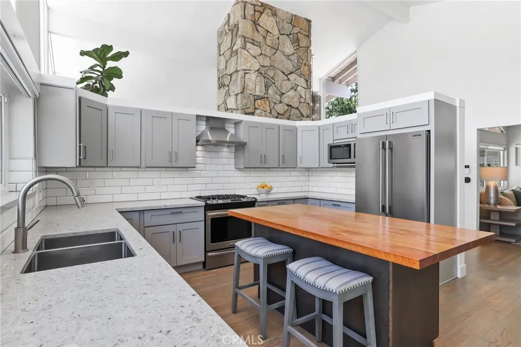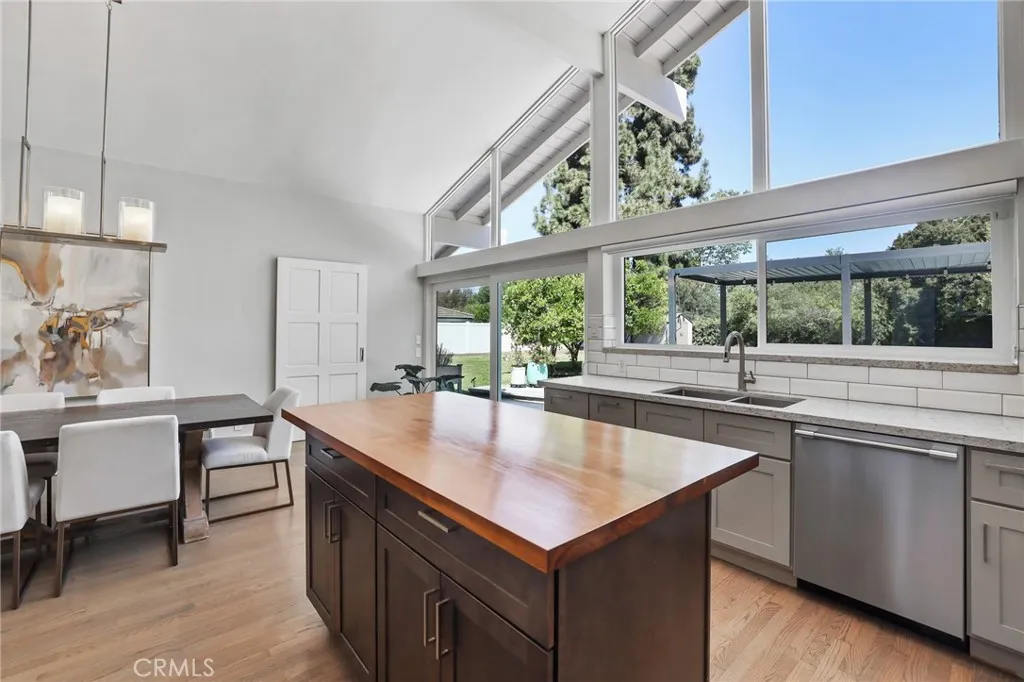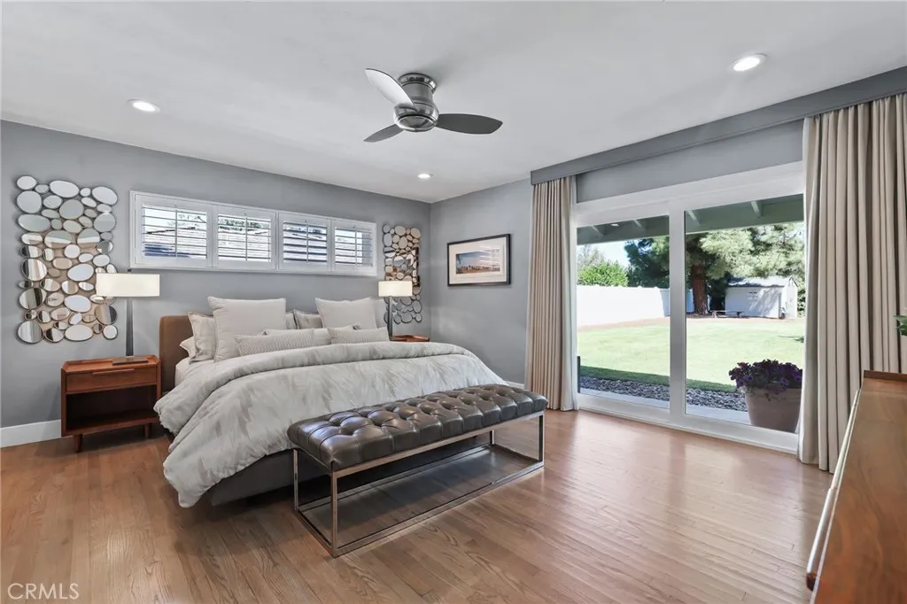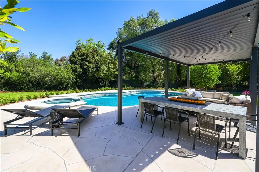 Rare opportunity to own updated custom home on Green Acre —one of Fullerton’s most iconic and storied streets—Thoughtfully renovated to blend architectural integrity with an effortless flow, the residence is a definitive expression of the California indoor-outdoor lifestyle. From the moment you step through the front door, the open-concept layout reveals expansive sightlines and soaring ceilings. Hardwood floors and a striking stone fireplace anchor the living space, while floor-to-ceiling glass naturally draws the eye toward the lush grounds, making the transition to the outdoors feel nearly invisible. The heart of the home is the redesigned chef’s kitchen, featuring sleek quartz countertops and a large walnut-topped island that serves as a natural hub for hosting. The kitchen flows seamlessly into the family room and dining areas, while bathrooms have been transformed into spa-like retreats with large walk-in showers, dual sinks, and clean, modern details. The nearly 3/4-acre lot offers a level of privacy and scale rarely found in the area. Designed for year-round living, the resort-style grounds feature a Pebble Tec pool and spa, multiple lounging areas, and a 20' x 10' pergola with a louvered roof for alfresco dining. The park-like yard includes mature Meyer lemon, lime, peach, and blood orange trees, among others. While the renovation is turnkey, the lot's sheer size offers a rare canvas for the future, with ample room to expand the footprint, add a detached ADU, and maybe even a sports court. Located within the prestigious Laguna Road Elementary, Parks Junior High, and Sunny Hills High School districts.