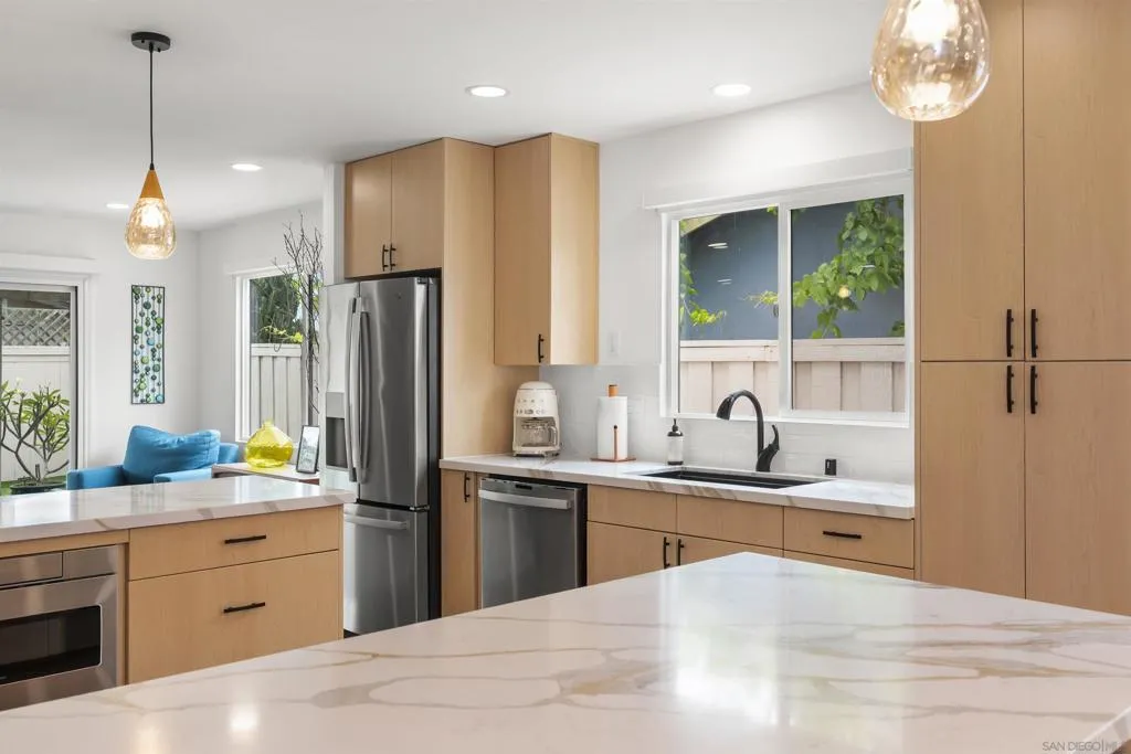 Experience the perfect blend of timeless mid-century design and modern sophistication at 2765 Nansen Avenue. Ideally positioned on a premier corner lot in University City’s coveted west end, this single-story residence has been thoughtfully reimagined for today’s lifestyle. Step inside to discover a stunning open-concept layout anchored by a beautifully remodeled kitchen featuring quartz countertops, custom cabinetry, and stainless steel appliances. The home offers 4 spacious bedrooms and 2 remodeled bathrooms, providing comfort and versatility. Additional features: Electronic blinds, new sewer lines, windows, plumbing & more. Outdoors, a private backyard retreat awaits—complete with a covered patio, mature landscaping & citrus trees. Located around the corner from the newly transformed neighborhood park and close to world-class beaches, La Jolla, top-rated schools, major tech and biotech hubs, freeways, hospitals & more! This is an exceptional opportunity to own a turnkey home in one of San Diego’s most sought-after neighborhoods.