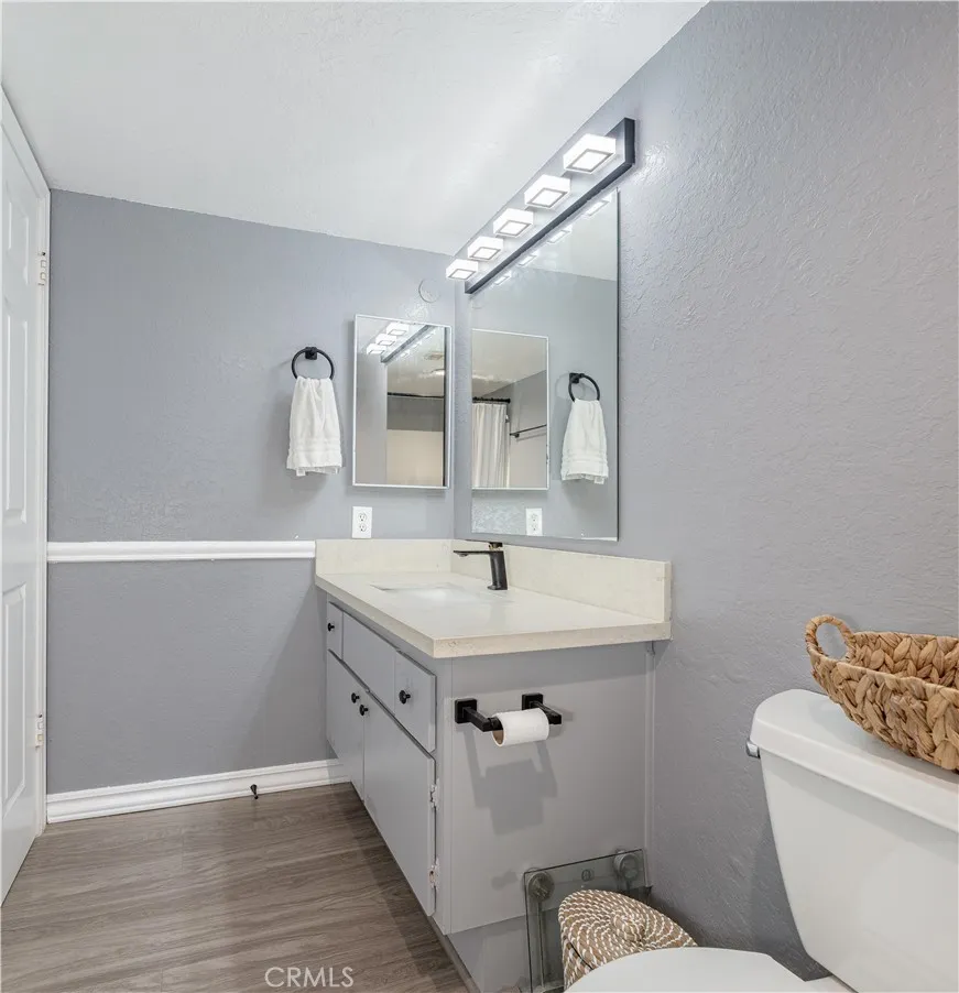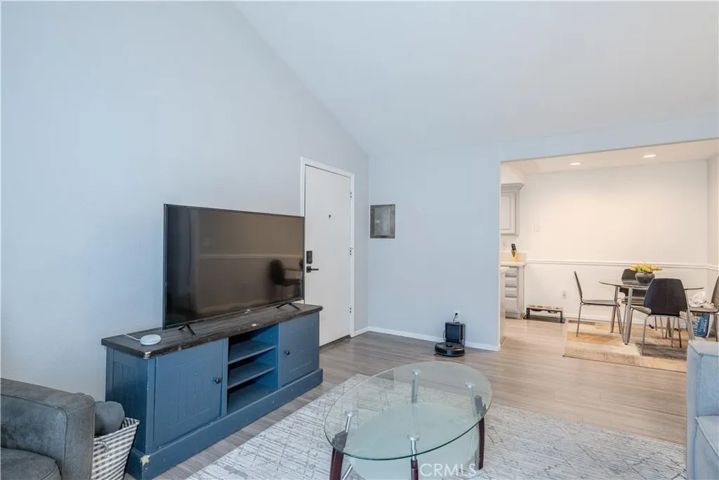 Step into this delightful 1-bedroom, 1-bath upper unit condo that embodies the perfect starter home for those seeking comfort and style. As you enter, you are greeted by the impressive, vaulted ceilings that elevate the atmosphere and create a sense of spaciousness, complemented by an inviting open floor plan. The kitchen is a chef's delight, featuring elegant maple cabinetry that offers both beauty and storage, solid surface Quartz countertops that blend function with modern aesthetics, and recessed lighting that enhances the ambiance. It's a lovely space to prepare meals and entertain friends. Vinyl flooring flows from the kitchen to the living area, where this cozy space beckons you to relax. Large windows provide plenty of natural light and open to your generous balcony, an inviting outdoor space where you can savor the serenity of your morning coffee while enjoying the view. Retreat to the master bedroom, a generous space that promises comfort and tranquility. It boasts a walk-in closet that provides ample storage for your wardrobe, as well as a master bath that features abundant cabinet space—perfect for keeping your essentials organized and within reach. Convenience is key in this home, with an in-unit laundry closet located on the patio and a dedicated 1-car garage that adds to the ease of day-to-day living. Located within the picturesque Pheasant Creek complex, this condo offers an array of resort-like amenities, including beautifully maintained walking paths, peaceful streams, serene ponds, three sparkling swimming pools, three tennis courts, and a full-size basketball court—complete with lighting for evening play. The homeowner association takes care of essential services, including water, trash, and exterior maintenance, making life easier for you. This prime location places you just moments away from reputable schools, diverse shopping options, lush parks, the vibrant Irvine Spectrum, and a network of walking and biking trails. Plus, the nearby Sports Park offers even more recreational opportunities. Embrace the lifestyle you’ve always wanted in this charming condo!