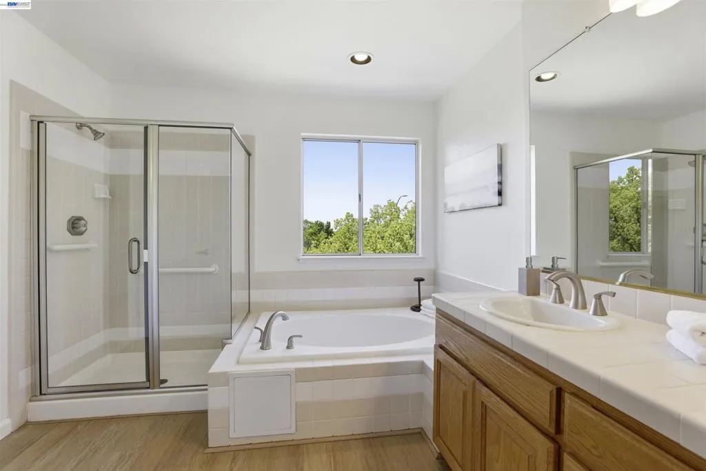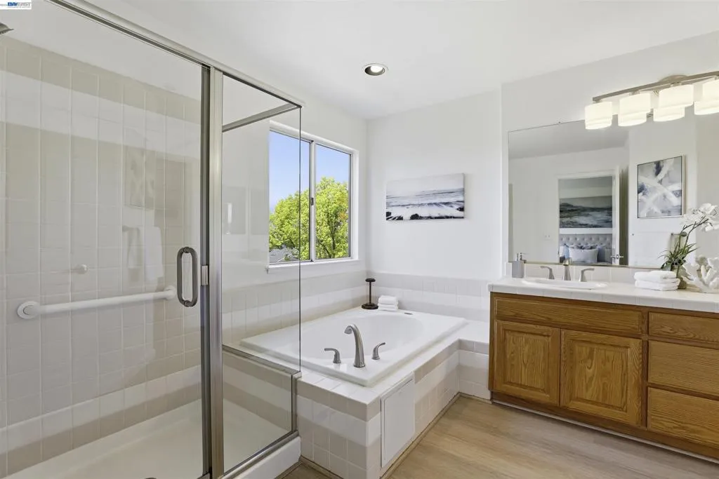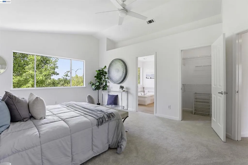 Tucked into the highly desirable Kottinger Ranch community, this beautifully maintained 3-bedroom, 2.5-bath home offers the perfect blend of comfort, convenience, and low-maintenance living. Fresh interior paint, new laminate flooring downstairs and new carpet. The 3 Bedrooms, 2.5 baths 1,666 square feet floorplan is thoughtfully designed and features spacious living and dining areas filled with natural light, creating an inviting space for both everyday living and entertaining. The kitchen opens seamlessly to the main living area, while the private outdoor space provides just the right amount of yard for relaxing, gardening, or enjoying the sunshine—without the upkeep of a larger lot. Upstairs, the primary suite offers a peaceful retreat with an en-suite bath with separate Tub, Shower and Dual sinks. All this is complemented by two additional spacious bedrooms ideal for family, guests, or a home office. A convenient half bath on the main level adds to the home’s practical layout. Located in one of Pleasanton’s most sought-after communities, Kottinger Ranch has a range of community amenities, including a clubhouse, community pool, BBQ area, playground, tennis courts, and scenic hiking trails. Residents enjoy close proximity to top-rated schools, parks, and charming downtown Pleasanton. Easy access to major commute routes, BART, and shopping makes this an exceptional opportunity for both lifestyle and location. A rare chance to own in Kottinger Ranch at an attractive price point—this home is not to be missed!