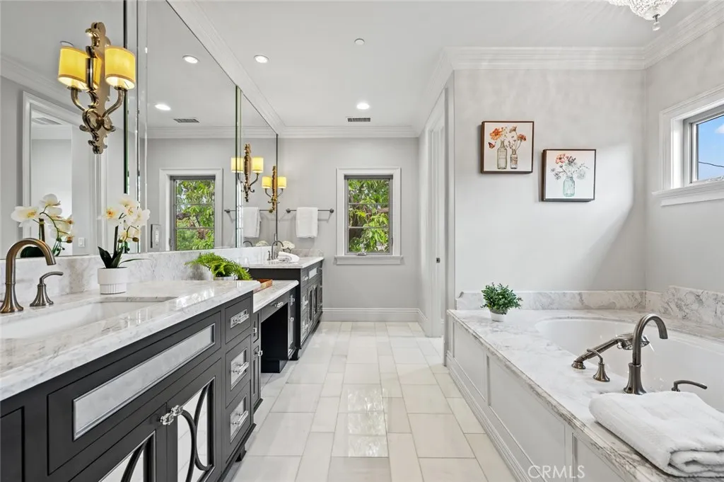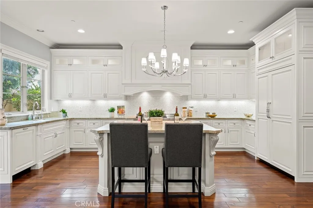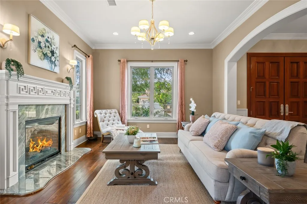 Located on a quiet street in the highly desirable Arcadia neighborhood, this custom-built Mediterranean estate, designed by renowned architect Robert Tong and built by Mur-Sol Construction Inc., showcases timeless elegance and quality craftsmanship. Featuring 4 en-suite bedrooms and 4.5 bathrooms, the home offers a functional and well-balanced layout. A dramatic two-story foyer with soaring ceilings, chandelier, and marble flooring creates a striking first impression. The bright living room with fireplace flows seamlessly for both entertaining and daily living. The main level includes a guest suite, formal dining room, spacious family room, and a gourmet kitchen with JennAir appliances, marble countertops, large island, plus a separate wok kitchen. A home theater adds to the entertainment experience. Upstairs offers a loft and three additional en-suite bedrooms, including a luxurious primary suite with walk-in closet, spa-style bath, Jacuzzi tub, and steam shower. Additional features include a laundry room, central vacuum, tankless water heater, whole-house water filtration system. Set on a 7,812 sq ft lot, the backyard provides a peaceful retreat with a mature avocado tree. Conveniently located near Keck Medicine of USC, Santa Anita Park, and Westfield Santa Anita, within the award-winning Arcadia Unified School District.