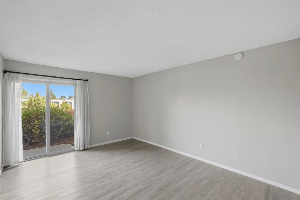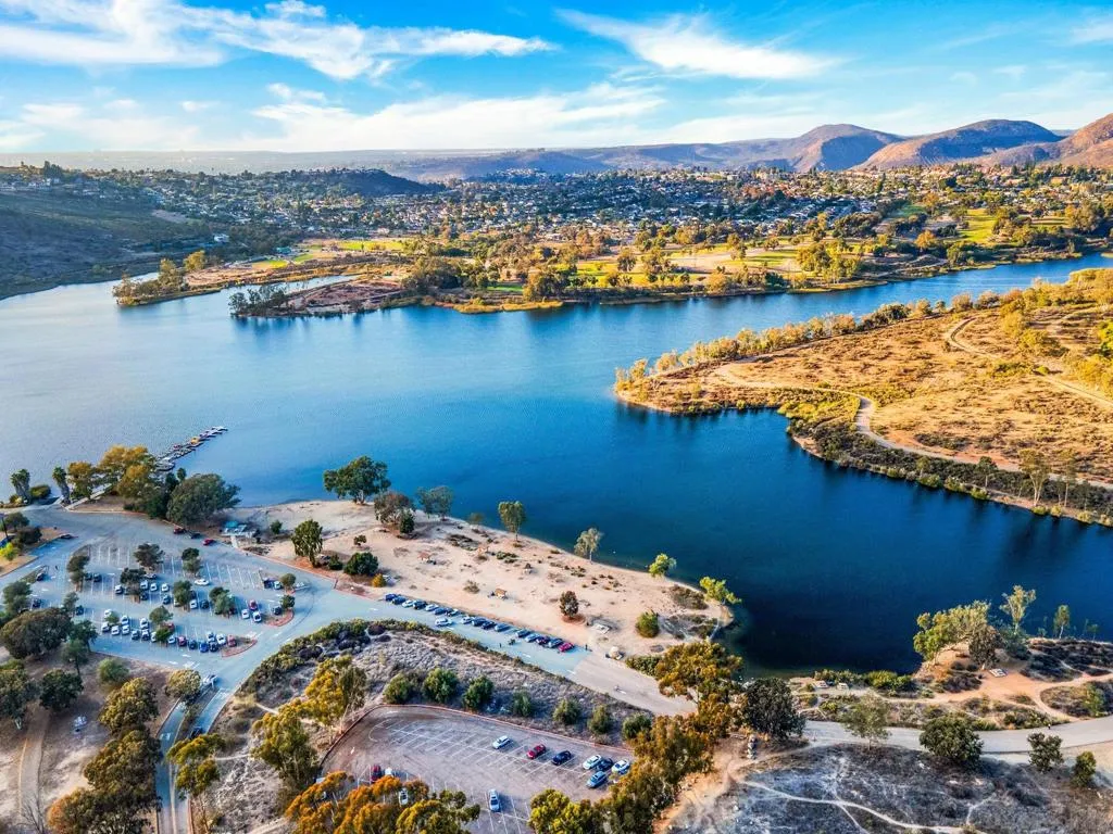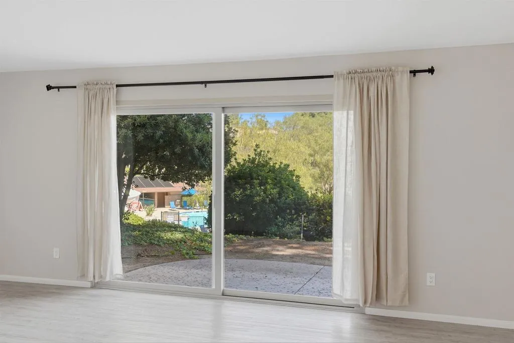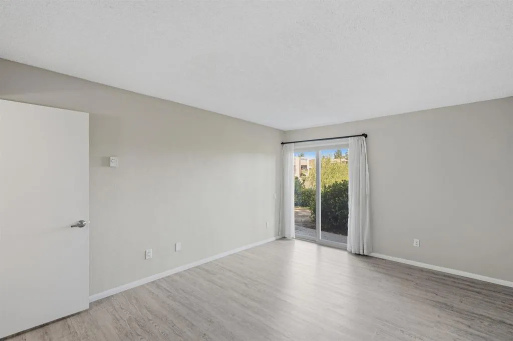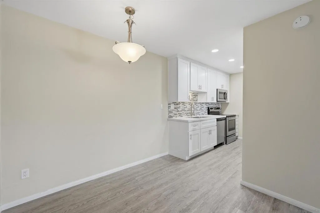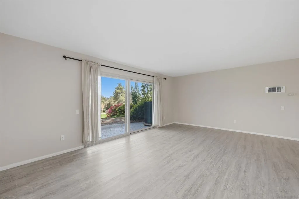 Tucked end-unit is one of the few in the complex where no one walks past your door. It's quiet. Step onto your oversized patio and look out over the garden pond — mornings here feel different than mornings anywhere else. Inside, the kitchen was rebuilt from scratch. White shaker cabinets with soft-close drawers, clean white countertops, tile backsplash, and newer appliances throughout. The complex does what most neighborhoods can't — pools, spa, gym, tennis courts, and 24-hour security, all without leaving home. And when you do leave, Lake Murray and Mission Trails are just a walk away.