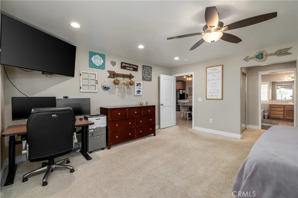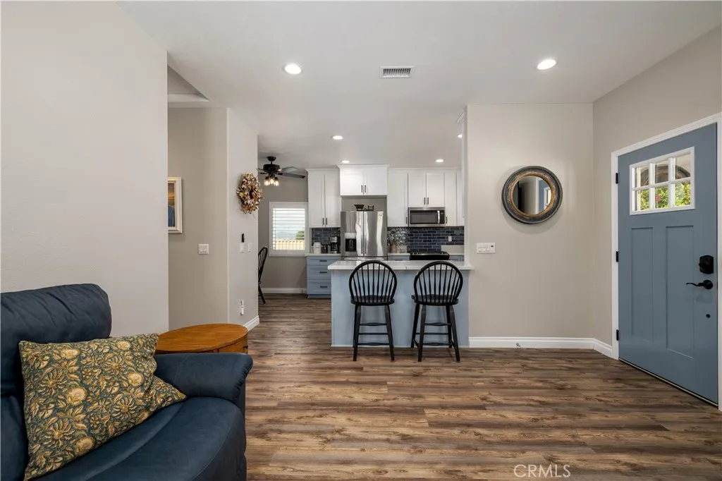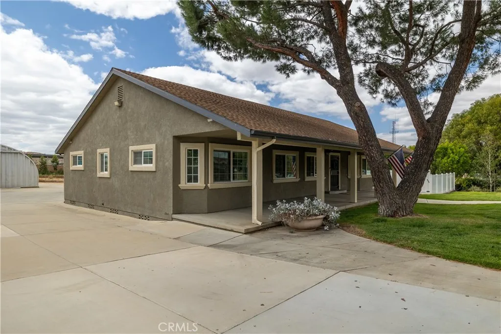 Welcome to your own private retreat where everyday living feels like a getaway. Tucked behind a gated entrance, this beautifully maintained ranch-style estate offers peace, privacy, and a true sense of escape. Enjoy slow mornings under the gazebo with coffee in hand, relax in the spa, or lounge poolside on warm days with built-in umbrella stands for the perfect balance of sun and shade. Evenings are unforgettable with stunning sunset views from the back porch and quiet moments in the garden surrounded by mature landscaping and fruit trees. This versatile property features a main residence plus a fully upgraded ADU completed in 2023, ideal for multigenerational living, guests, or rental income. The ADU includes its own AC, tankless water heater, quartz countertops, vinyl plank flooring, and an ADA-accessible tiled shower. The main home showcases granite countertops, wood plank flooring, custom screen doors, wood shutters, and a Nest thermostat. Additional upgrades include tinted windows, updated flooring, and interior and exterior paint in 2019. Step outside to a true entertainer’s yard featuring an 18x25 saltwater pool with WiFi-controlled Pentair system, full pool cover, pool shower, and an above-ground spa with Bluetooth speakers. The property also includes a workshop with office, bathroom, mezzanine, and utility hookups, plus RV storage with dump station and potential for horse property. Energy efficiency and major systems are dialed in with paid solar (2023), newer AC units (2022 main home, 2023 ADU), updated water heaters including tankless in the ADU, and serviced septic systems. The solar-powered gate offers remote access, keypad entry, and a secure package box. The grounds are a standout feature with a variety of fruit trees including citrus, avocado, stone fruit, and fig, along with a large oak tree and rose garden. All landscaping is maintained with automated timers. Located in a peaceful country setting with local charm nearby, this move-in ready property offers a rare blend of comfort, functionality, and lifestyle.
