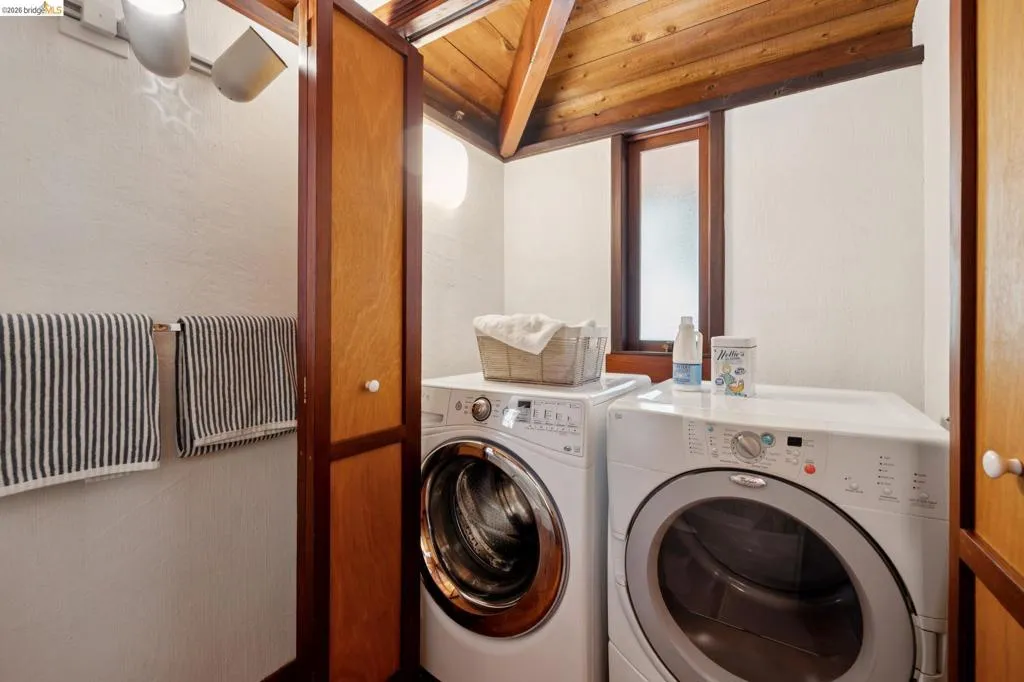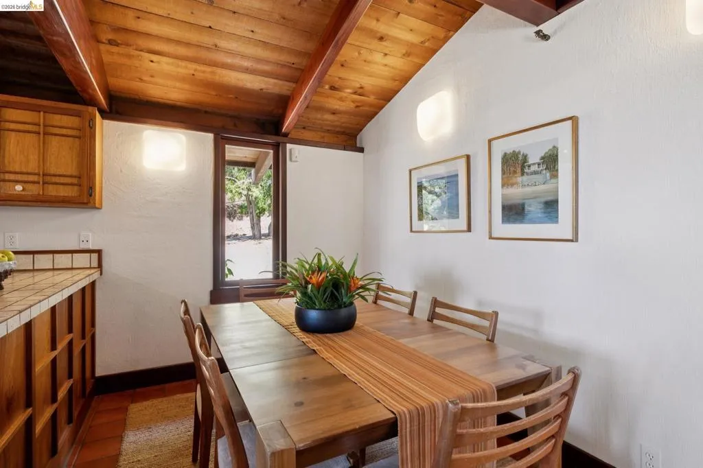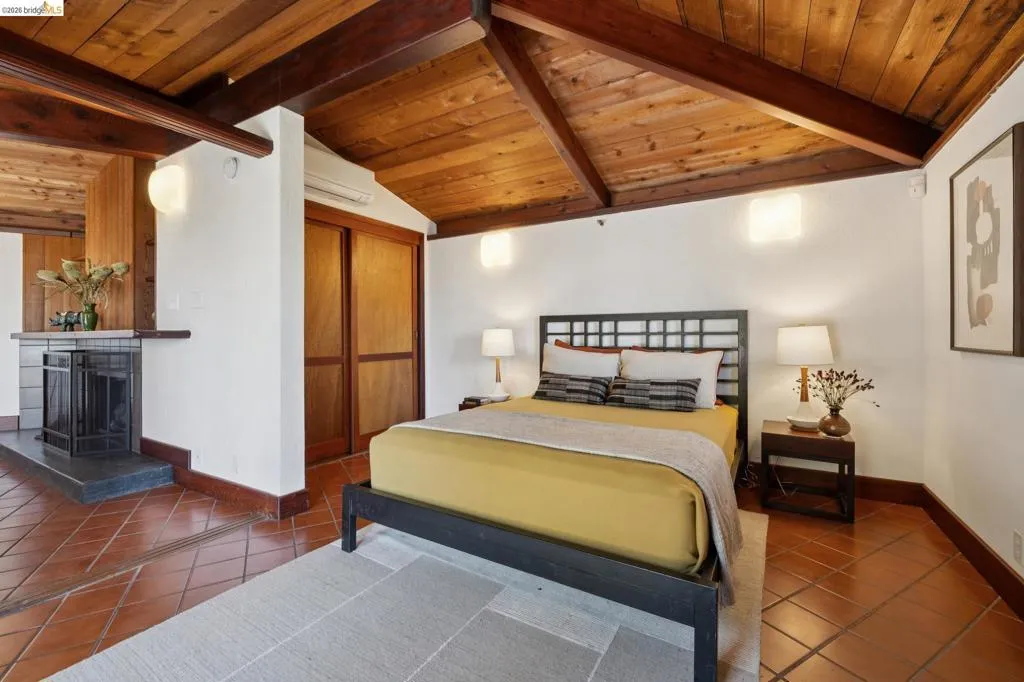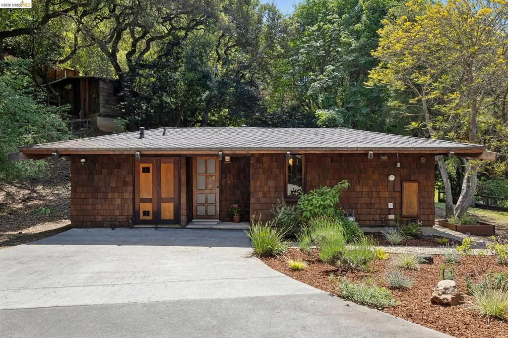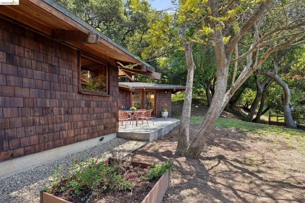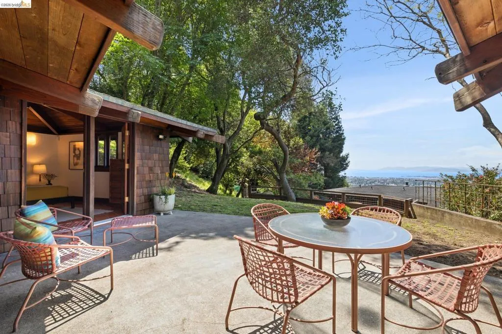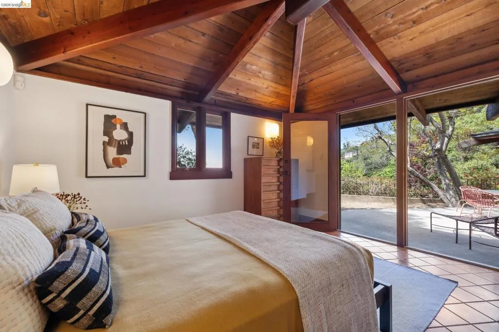 In a world of "fast" architecture, this custom 1985 residence by the local builder Berton D. Garey stands as a testament to intentional, master-crafted design. Offered for the first time, this East Bay treasure seamlessly blends Mid-Century and Berkeley Craftsman traditions on a rare, level lot. Inside, the home is a sanctuary of "forest gold" redwood and light. Garey’s meticulous hand is visible in every detail, from the massive hand-hewn beams to the whimsical custom ironwork. The open-concept layout flows effortlessly toward a wall of glass framing San Francisco Bay views, while a wood-burning fireplace anchors the living space. The bedroom, partitioned by elegant redwood screens, opens directly to a central patio perfectly sited in its surroundings. Lovingly maintained by its original owners, this one-bedroom retreat is an invitation to become the next steward of a truly irreplaceable handcrafted legacy. BESO Exempt, Berkeley Address, Oakland taxes.
