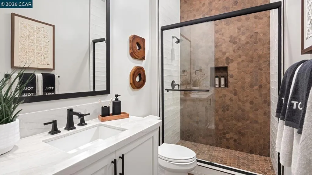 Welcome to Regency at Tracy Lakes 55+ active adult gated community , where luxury living takes center stage. With three picturesque lakes, this vibrant community offers a fishing dock, 1-acre community garden and dog park. With a wealth of amenities, including a clubhouse, pools, cabanas, yoga studio, fitness center, bocce ball, and pickleball courts, every day is an opportunity for relaxation and recreation. The onsite lifestyle director ensures there’s always something to look forward to; from fitness classes to comedy shows and wine nights. An alluring foyer hallway flows past a spacious flex room to the great room, open to the luxury outdoor living space. The gourmet kitchen offers stainless steel appliances, 36" gas cooktop, large center island with breakfast bar, modern cabinets, and roomy walk-in pantry. Primary bedroom suite offers a generous walk-in closet and a spa-like bath with a dual-sink vanity, a large luxe shower with seat. Elegant craftsmanship, with 10-foot ceilings, 8-foot doors, 5 1/4" baseboards, dual-pane Anderson windows, Western stacking sliding doors. 2- car garage, and enery saving Solar Panel System (photos not of actual home and yard, for marketing only)