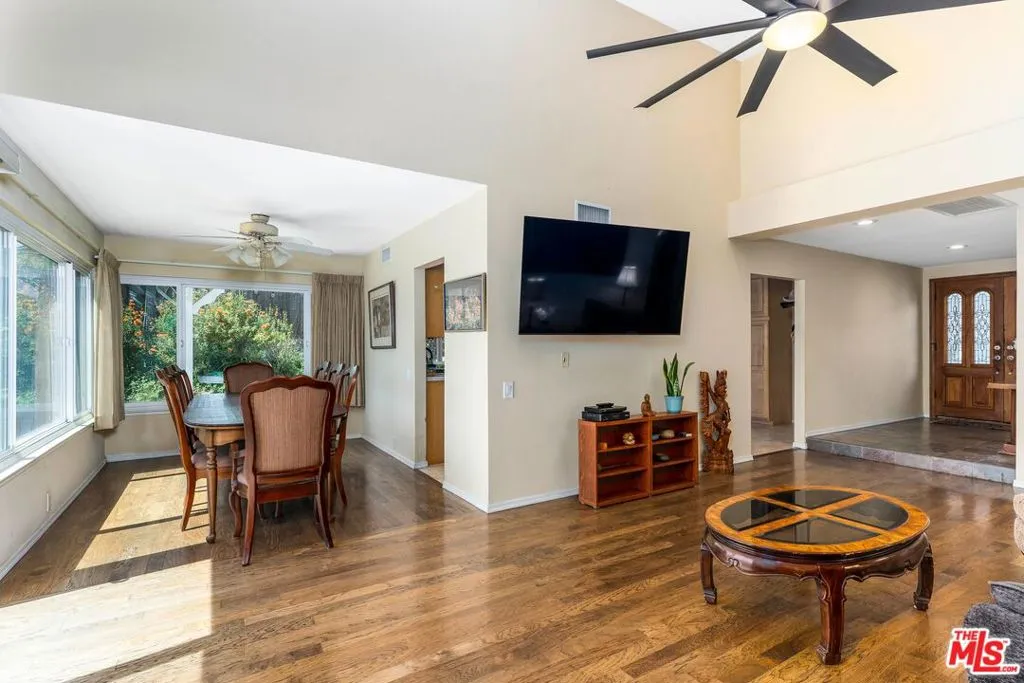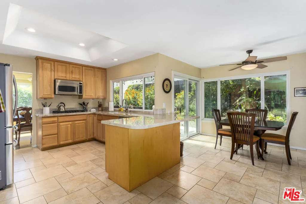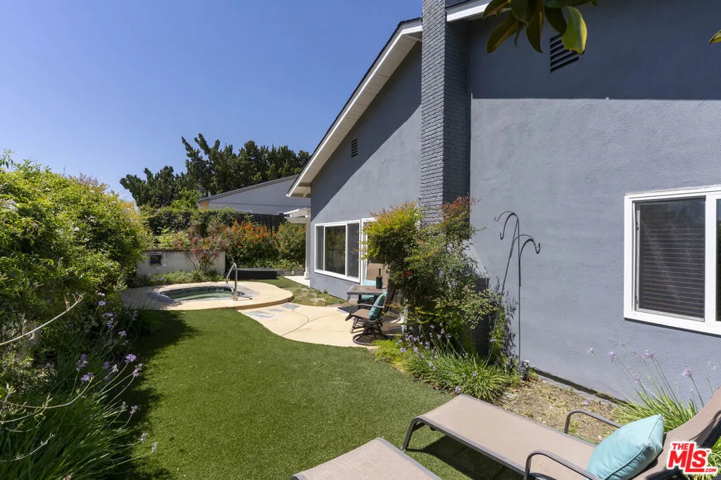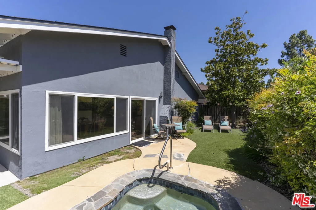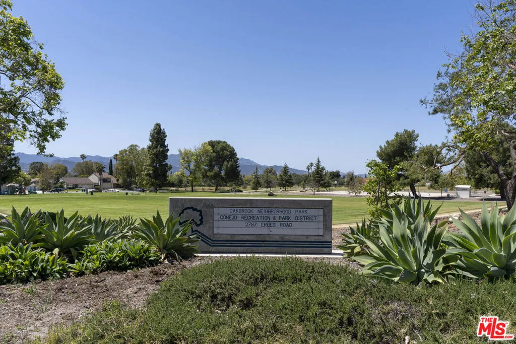 Experience effortless single-story living in this beautifully maintained classic California ranch, ideally positioned on a quiet cul-de-sac in one of Thousand Oaks' most established neighborhoods. A slate entry sets the tone, leading into the living room with soaring ceilings and a fireplace, creating a warm and inviting space. The living room has sliders to the back yard, and flows right into the formal dining room. Throughout the home, real hardwood Oak floors, ceramic tile, and plush carpeting add both character and comfort. The thoughtfully designed floor plan offers 1,575 square feet with three bedrooms and two bathrooms, blending comfort, function, and livability. The well-appointed kitchen is both stylish and highly functional, showcasing high end quartzite countertops, neutral-toned wood cabinetry, stainless steel appliances, and a premium Samsung French door refrigerator with bottom freezer. A breakfast bar and inviting eat-in area overlook the patio, creating a seamless indoor-outdoor connection, while double ovens and a full wall of pantry and storage space elevate everyday convenience.Step outside to a private backyard retreat designed for relaxed California living, complete with a built-in spa and outdoor dining area under ambient party lighting. The yard offers a true sense of privacy, perfect for entertaining or unwinding. Additional highlights include an oversized attached two-car garage with direct access to the kitchen, along with environmentally conscious upgrades such as a brand new roof, solar panels, and newer HVAC system for enhanced efficiency and comfort.This lovingly cared for home is located just two streets from Oakbrook Park, featuring open green space, playgrounds, sports courts, picnic areas, and a scenic walking and jogging trail. Conveniently close to the 23 Freeway and Oakbrook Plaza, with local favorites like Gelson's, Cisco's, Ace Hardware, 24 Hour Fitness, and The Coffee Bean & Tea Leaf, this home delivers the ideal blend of comfort, convenience, and lifestyle.
