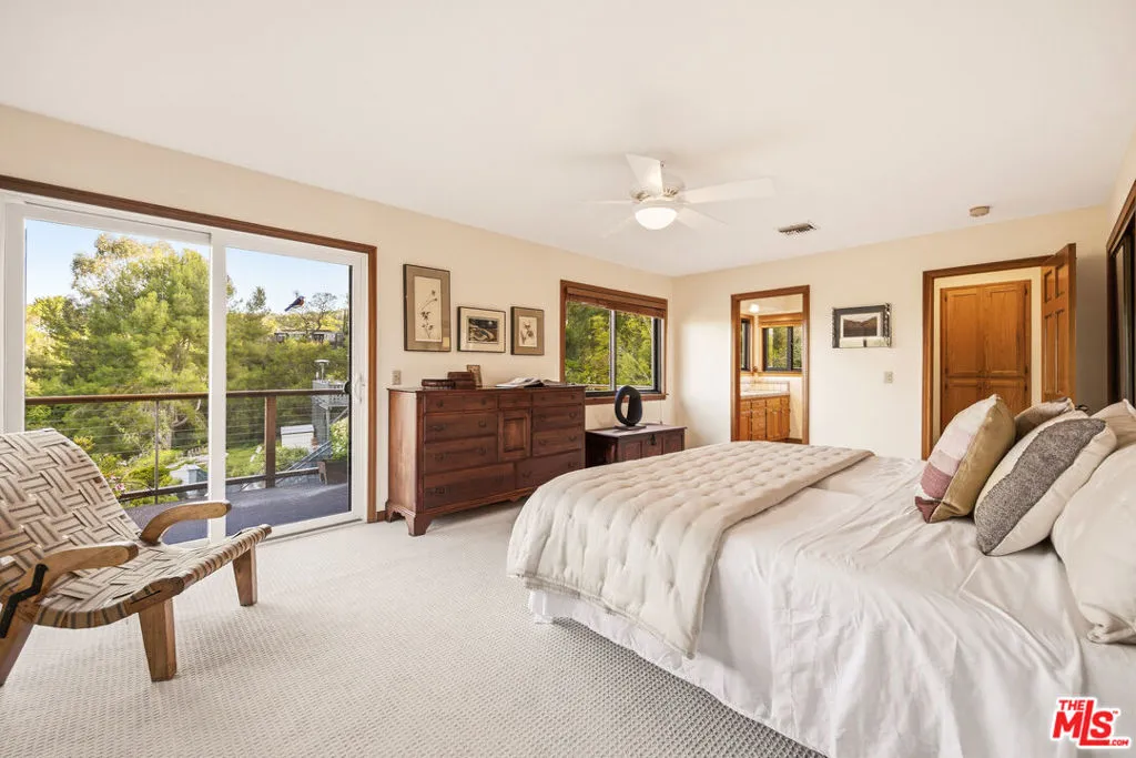 Perched high in the coveted Fernwood enclave of Topanga Canyon, and possessing some of the best panoramic views of the state park, this exceptional 3-bedroom, 2.5-bath home offers a rare blend of natural beauty, thoughtful design, and long-term pride of ownership. Framed by two seasonal creeksone on each sidecreating a tranquil, storybook setting filled with flowering gardens that attract hummingbirds and butterflies and positioned to take full advantage of its surroundings, the home was architected for the generous 1/3 of an acre site, capturing sweeping views of Topanga State Park from the living room, dining room, guest bedroom, and primary suite. There is an ease to life here that comes from both intention and care. The home has been cherished by its original owner since it was first built, evolving gracefully over time with major infrastructure upgrades that support both beauty and peace of mind. Ocean breezes drift through in the afternoons, keeping summers gentle, while winters remain soft and mild. Even on mornings when the coast below is wrapped in fog, this hillside perch often greets the day in golden light.Inside, the spaces feel expansive, with room to gather, create, and simply be. An additional above ground basement space offers flexibilityfour versatile rooms plus extra storage, this area is ideal for a workshop, gym, office, or creative studio. Throughout, there is a quiet harmony between sustainability and comfort, with systems designed not just for efficiency, but for a sense of ease and self-sufficiency. Outdoors, the home continues its conversation with the land. Flowering lush landscaping and mature trees invite you to slow down and stay awhile. Whether it's morning coffee with the canyon waking around you or evenings under a sky full of stars, every moment here feels peaceful. This is more than a home it's a place to breathe deeper, to reconnect, and to live in rhythm with the landscape. Major infrastructure upgrades include a second septic pit (2023), aerator system (2020), and newly paved dual driveways (2024). Solar panels (2019) and a Tesla whole house backup battery (2020) were installed resulting in an Edison designation of net energy use lower than efficient homes. Enhancing comfort is a powerful A/C system (2018) and a new heater (2024).Fire safety and durability have been carefully prioritized, featuring cement-style siding, an exterior fire suppression sprinkler system (expanded to the garage in 2019), newer decks and roof built to modern fire code standards and steel exterior doors. The beautiful mangaris wood decking is naturally resistant to termites and fire, offering both longevity and style. Additional highlights include an 8-zone irrigation system for lush landscaping and new double-paned, double-tempered windows throughout the home, including the basement and garage, enhancing energy efficiency and comfort. Property shows 4 bedrooms on Tax record, but is currently configured as a 3 bedroom plus family room. Additionally, the property features a detached 2 car garage with extra storage above and two separate driveways with ample parking.